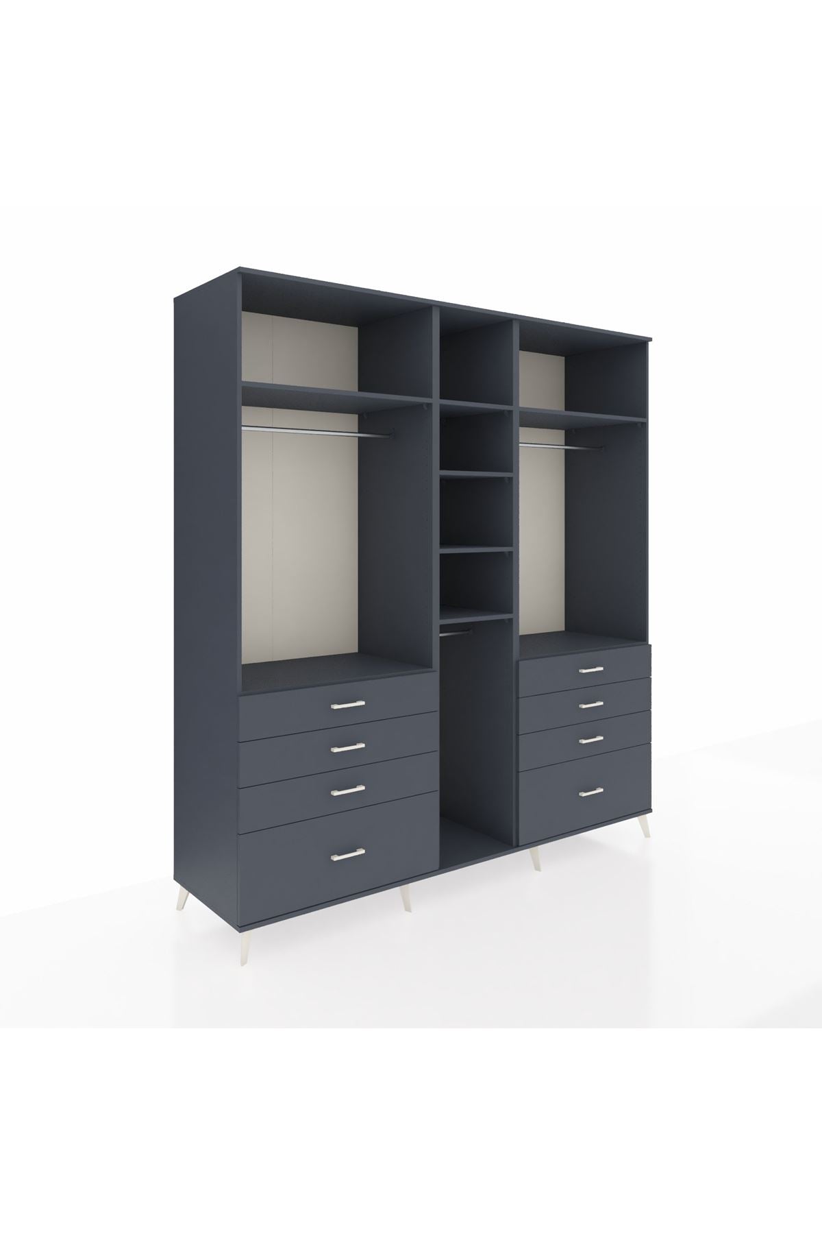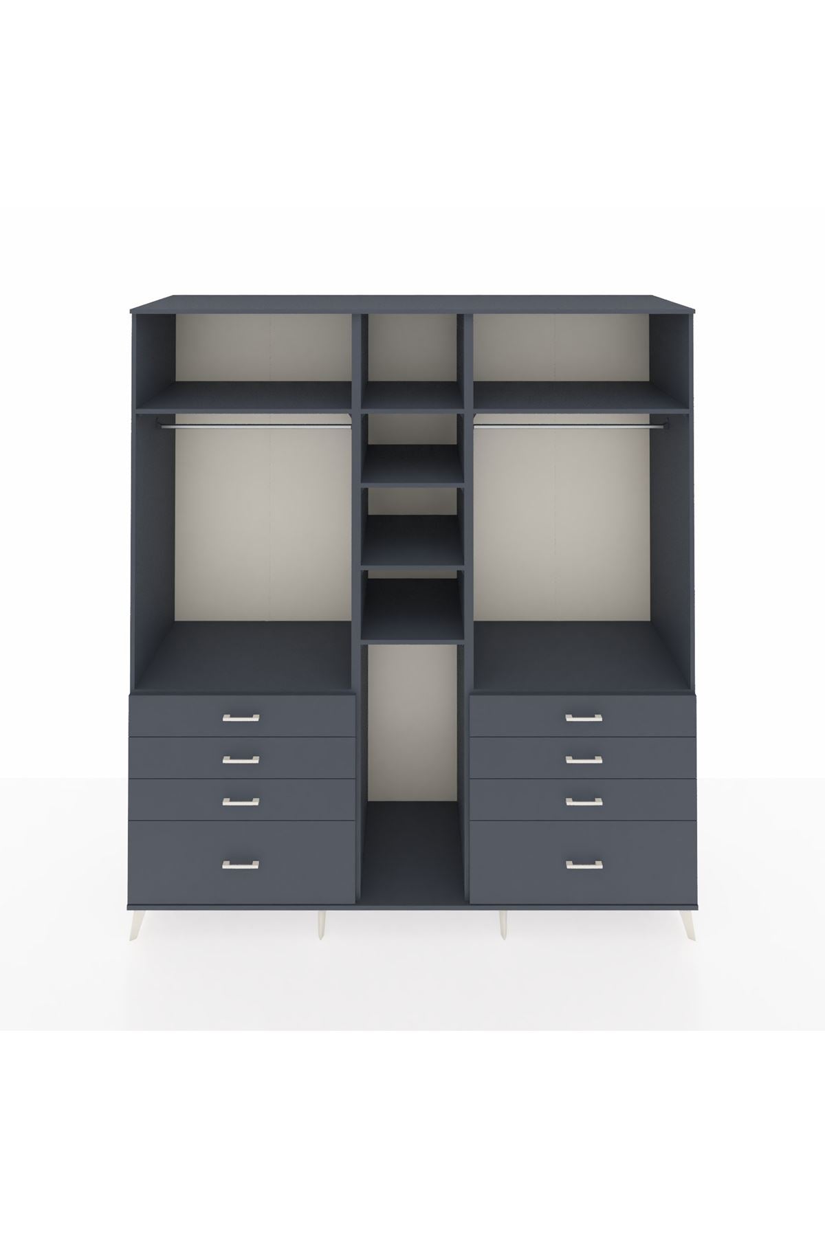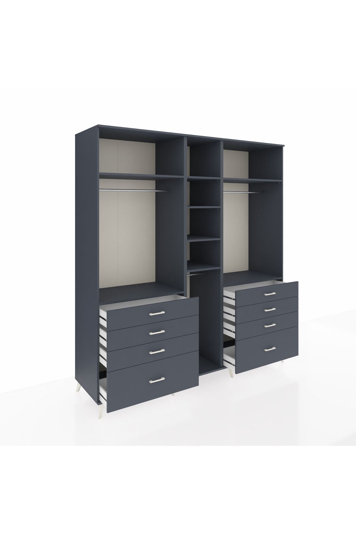 Kronos Dolap 8 Raflı 8 Çekmeceli 3 Askılı 220x59x243 Antrasit-Antrasit/Antrasit