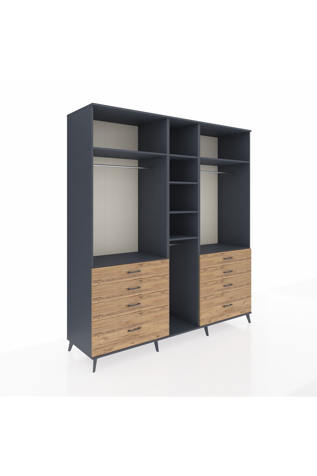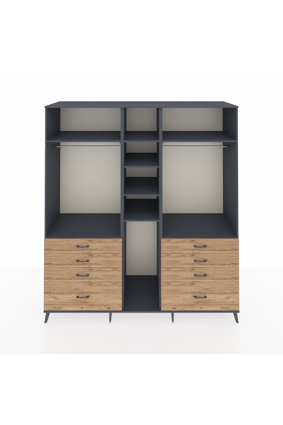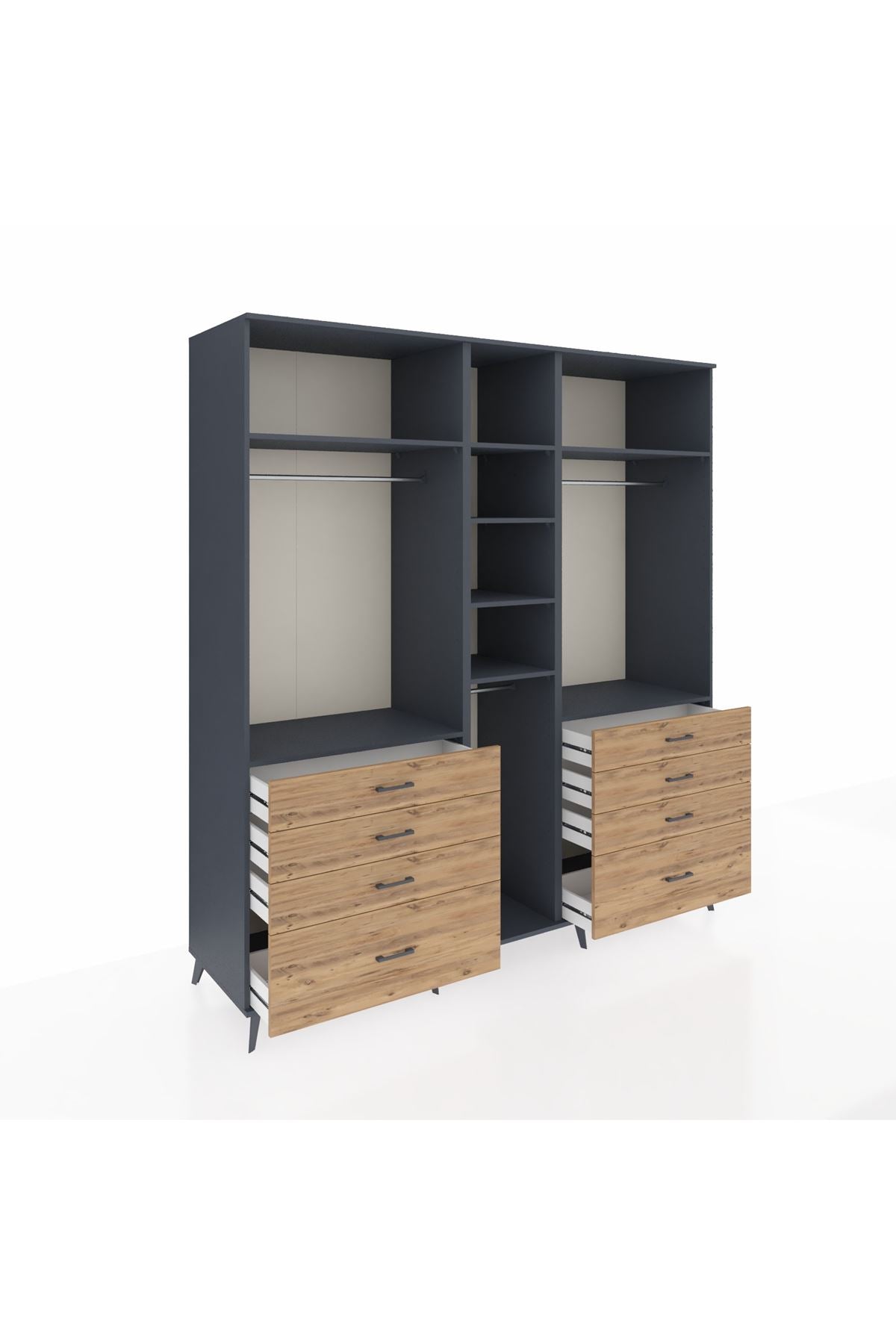 Kronos Dolap 8 Raflı 8 Çekmeceli 3 Askılı 220x59x243 Antrasit-Antrasit/Çam