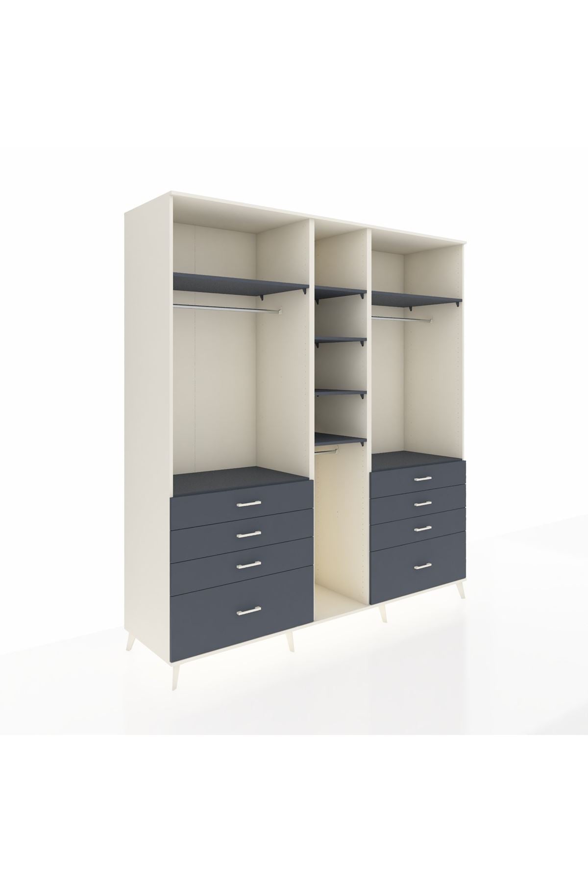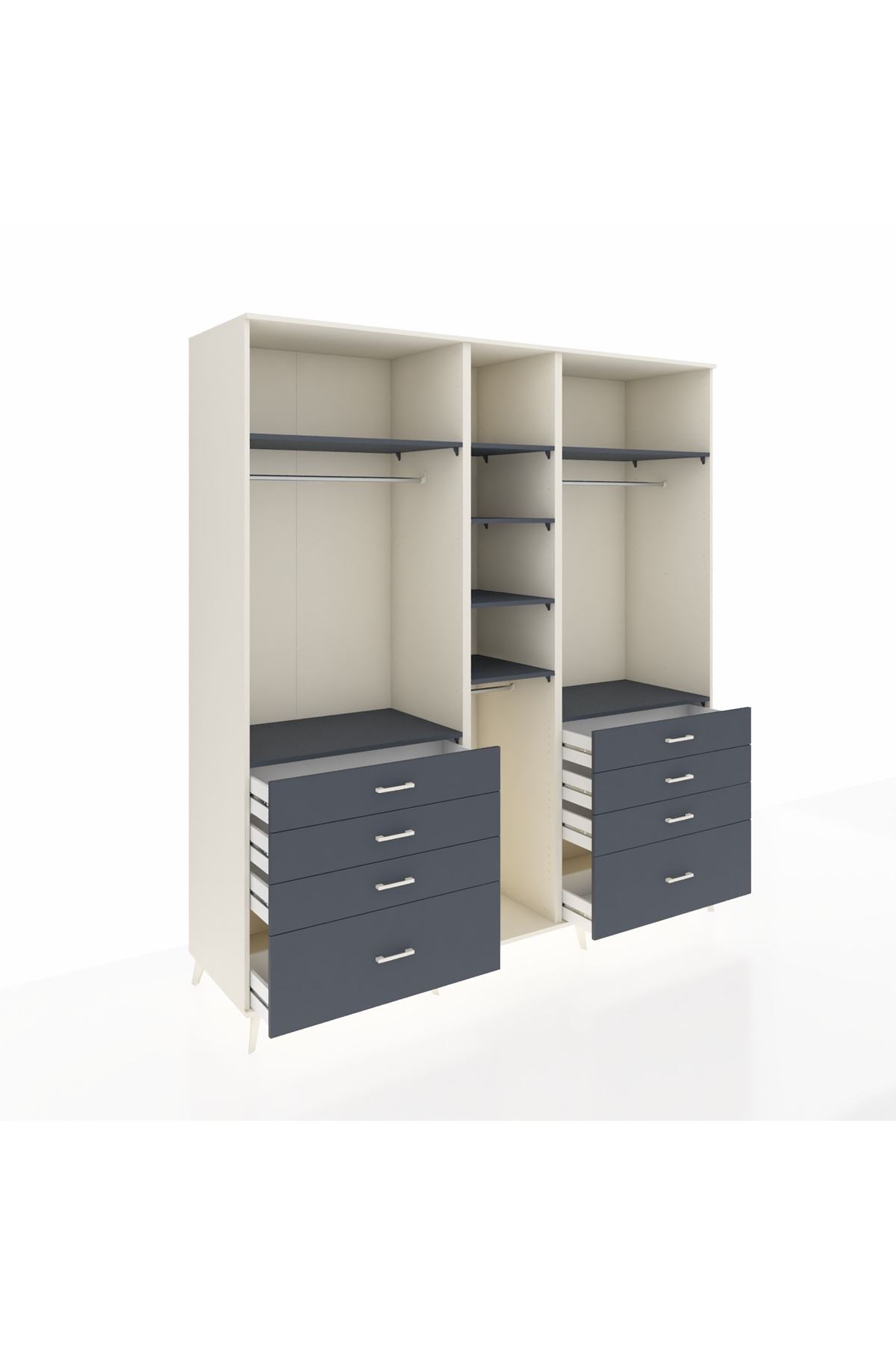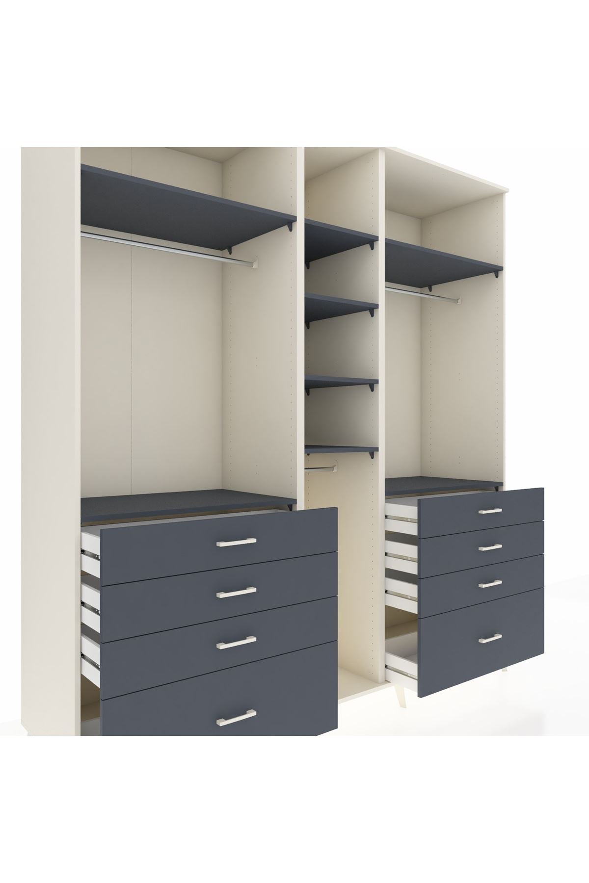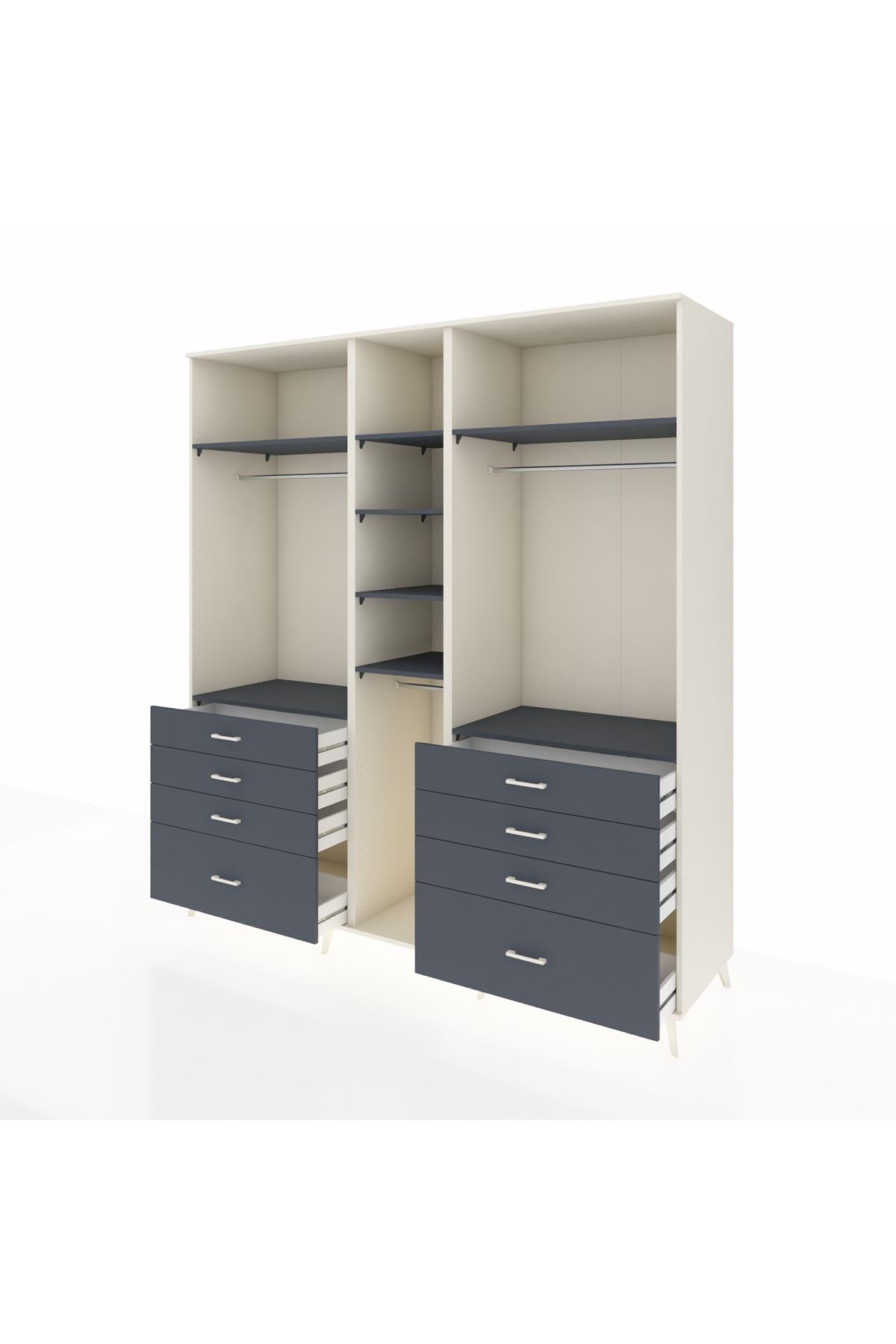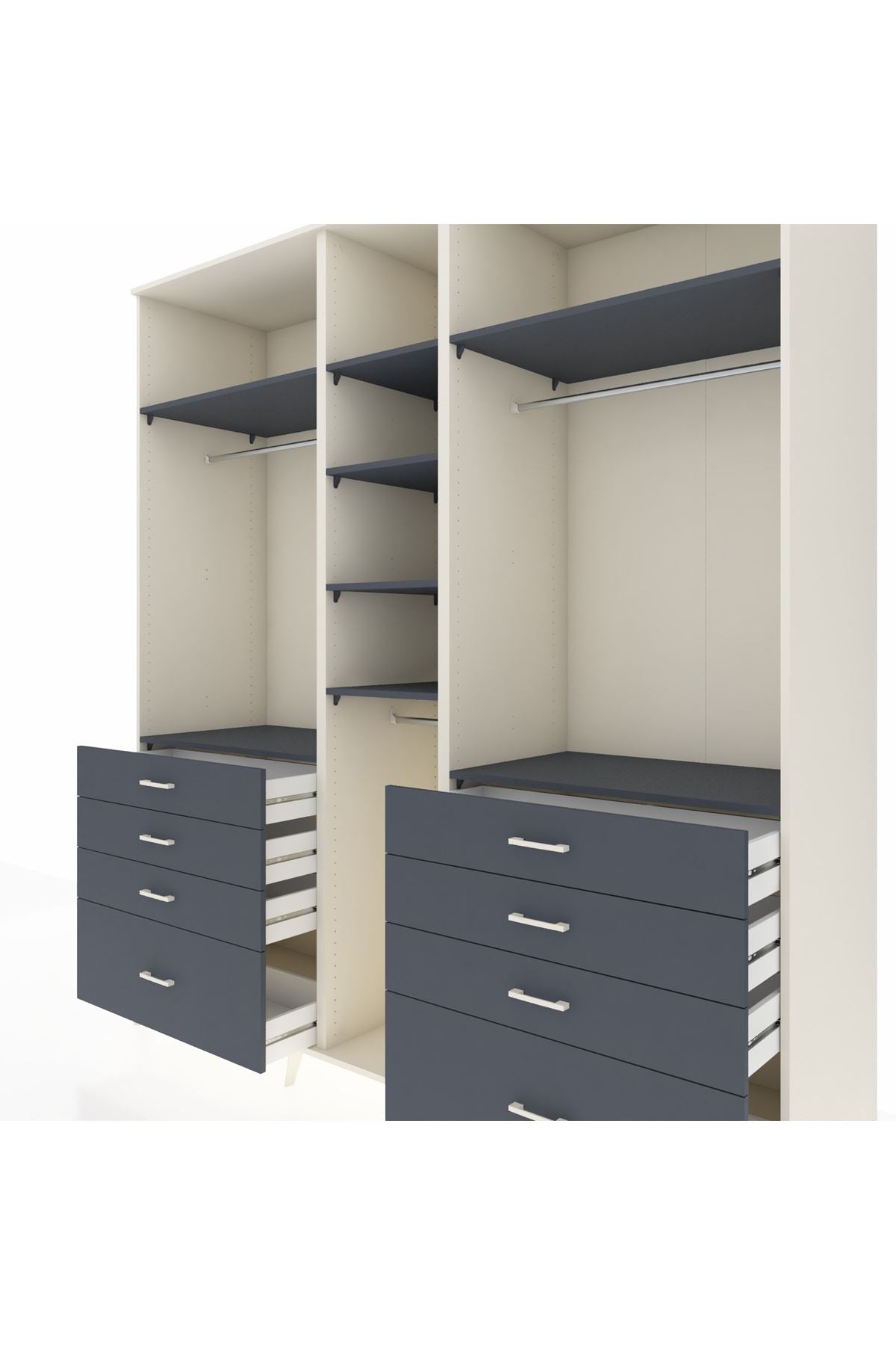 Kronos Dolap 8 Raflı 8 Çekmeceli 3 Askılı 220x59x243 Aytaşı-Antrasit/Antrasit