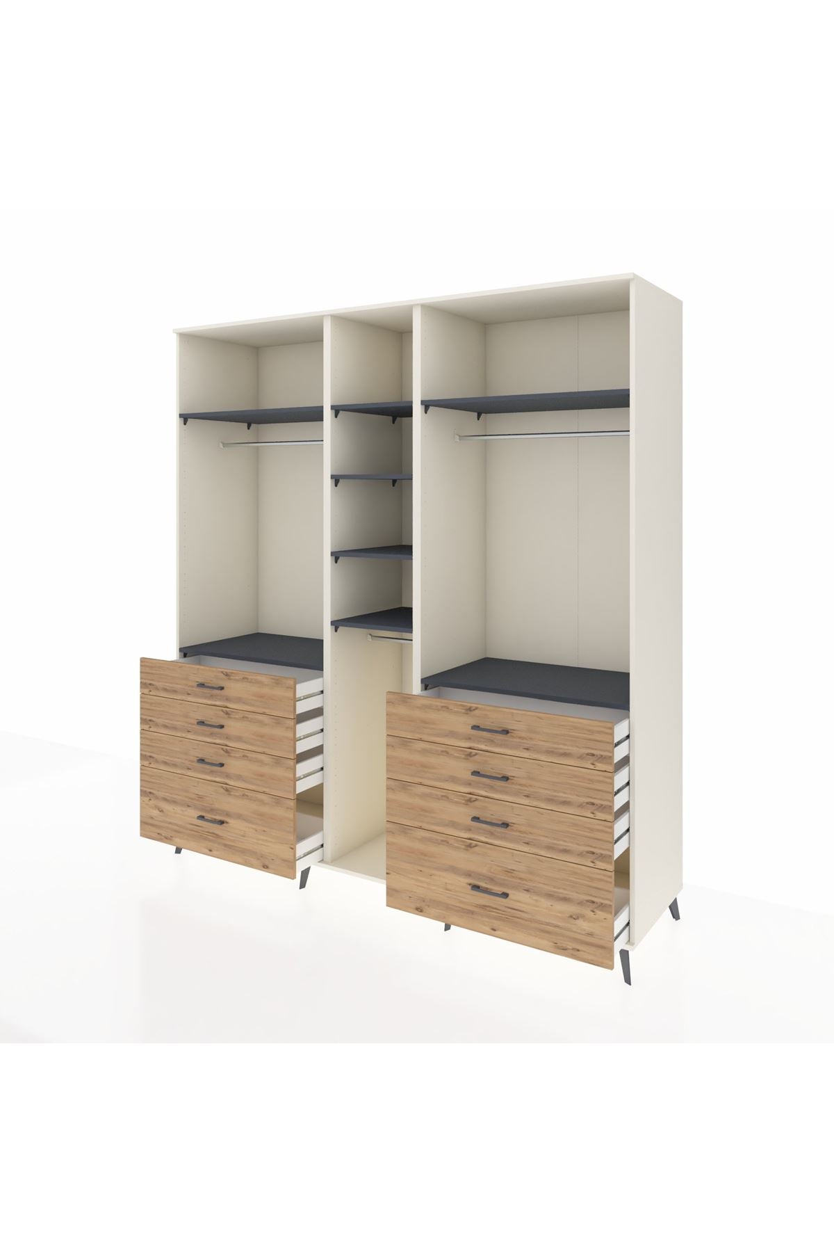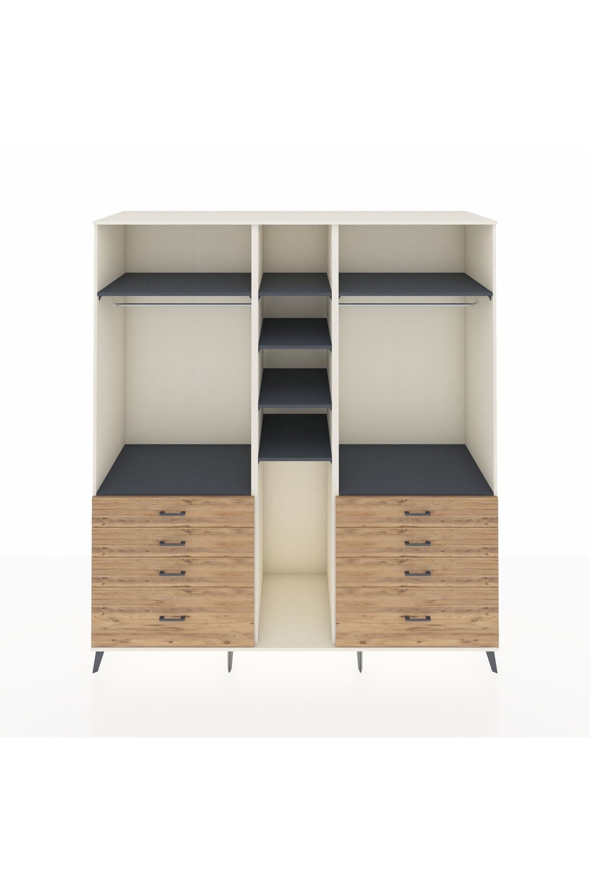 Kronos Dolap 8 Raflı 8 Çekmeceli 3 Askılı 220x59x243 Aytaşı-Antrasit/Çam