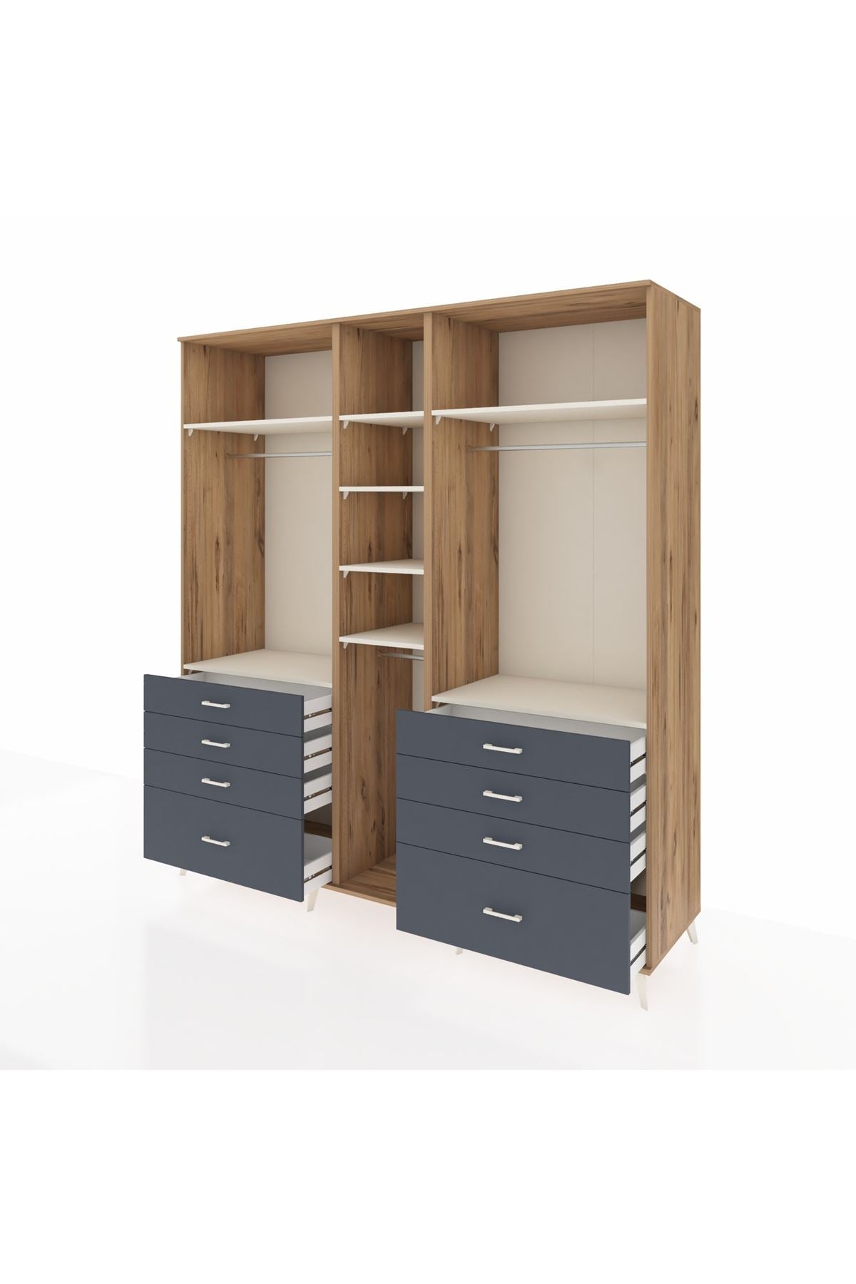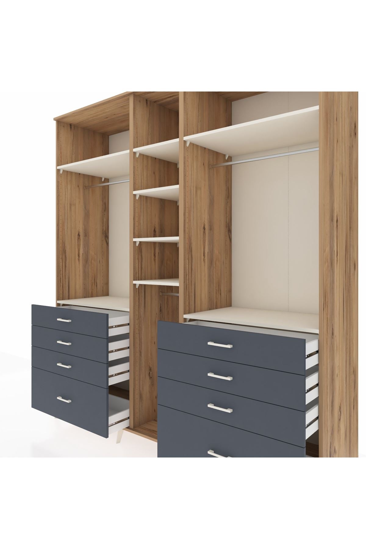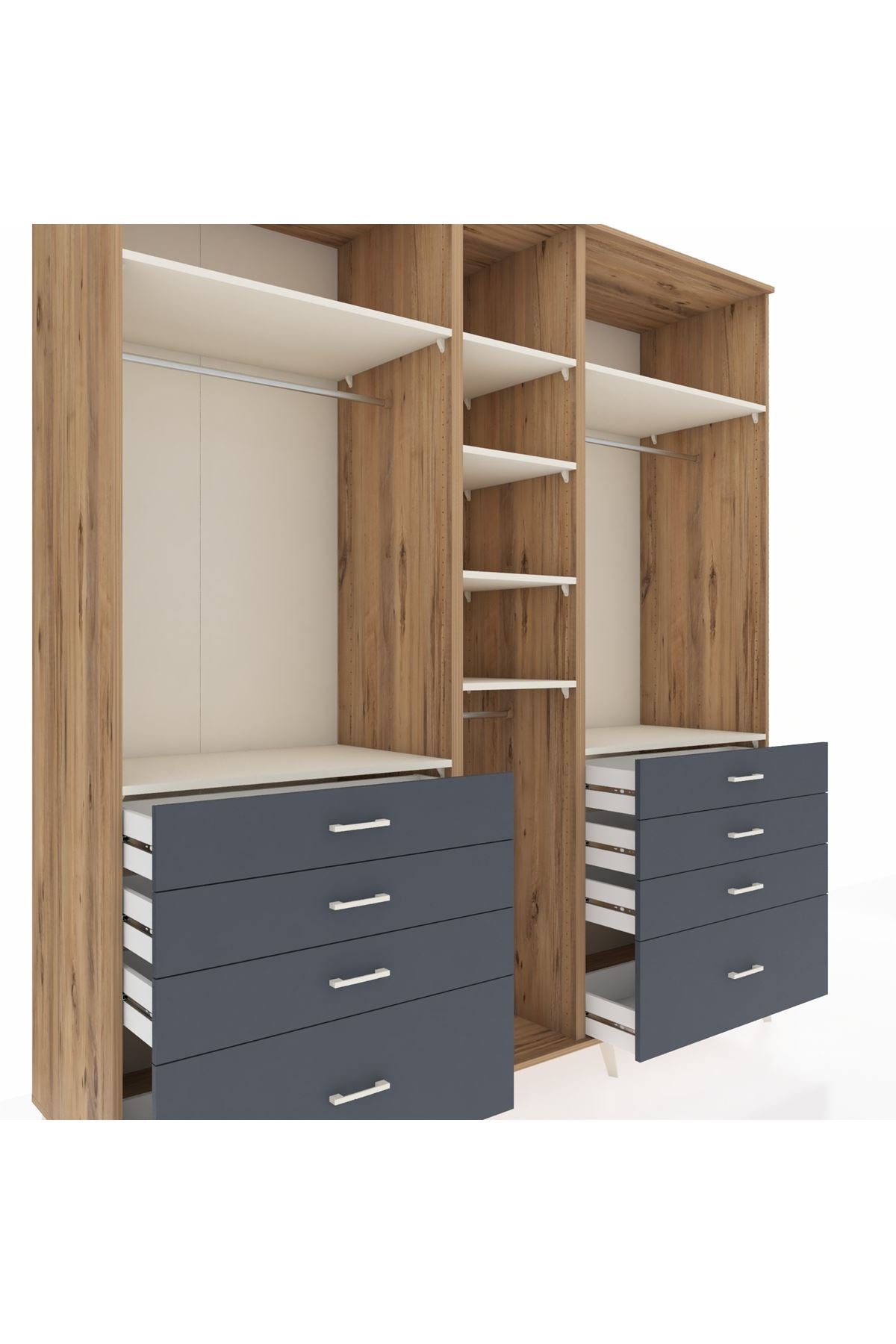 Kronos Dolap 8 Raflı 8 Çekmeceli 3 Askılı 220x59x243 Çam-Aytaşı/Antrasit
