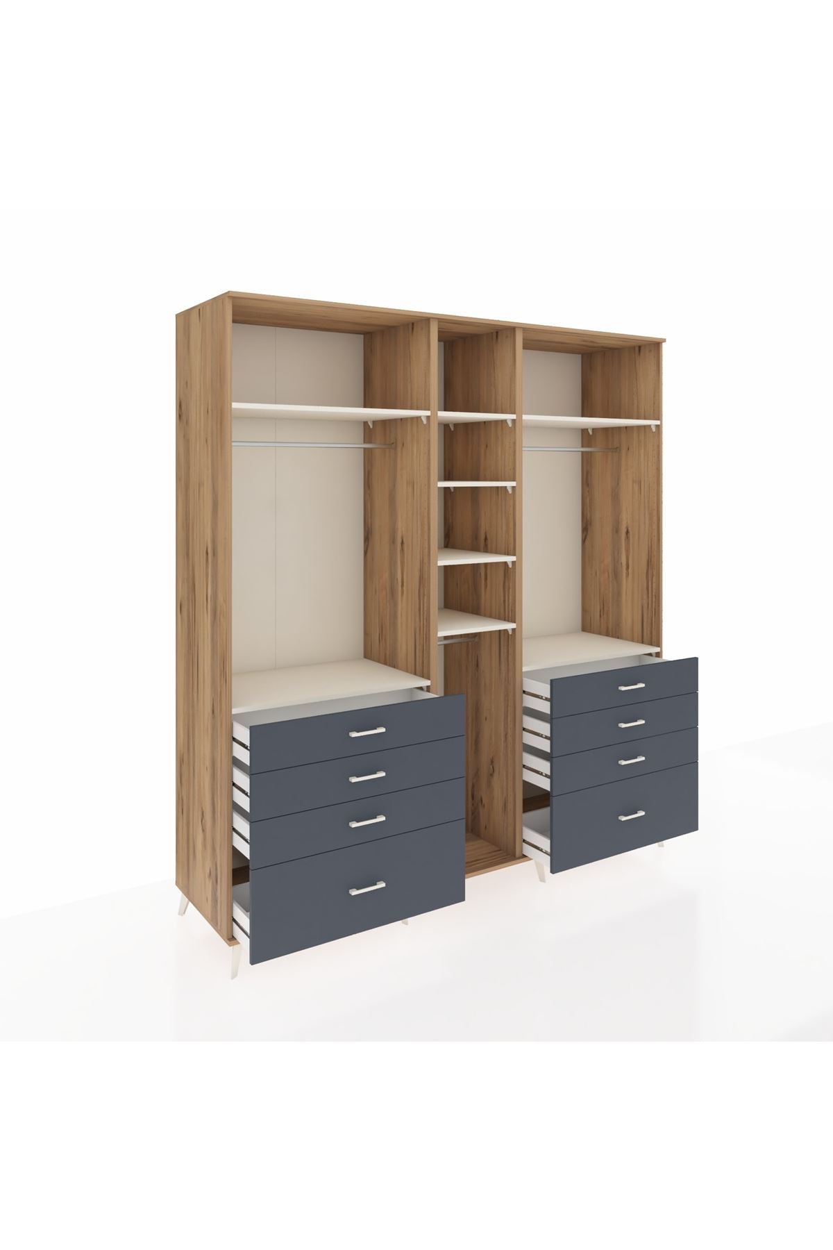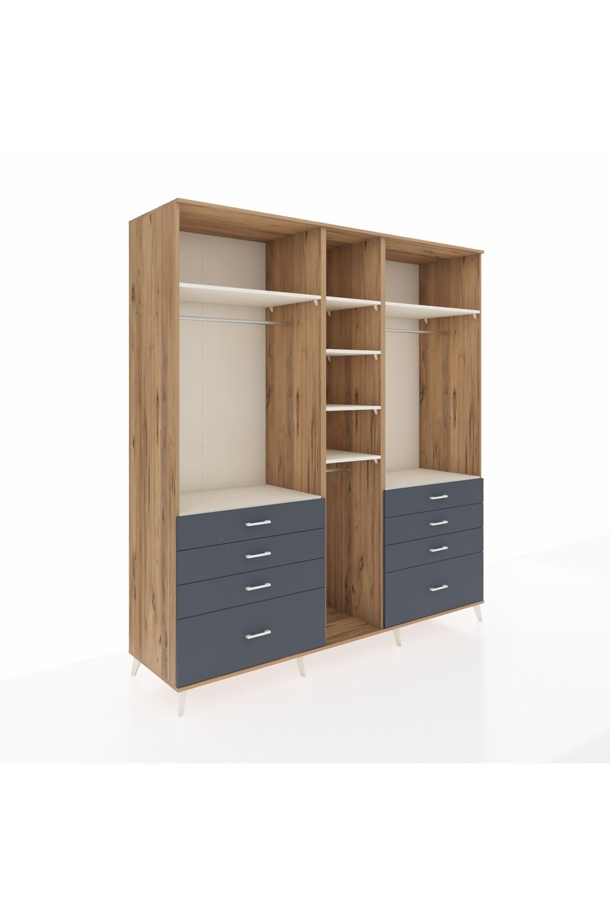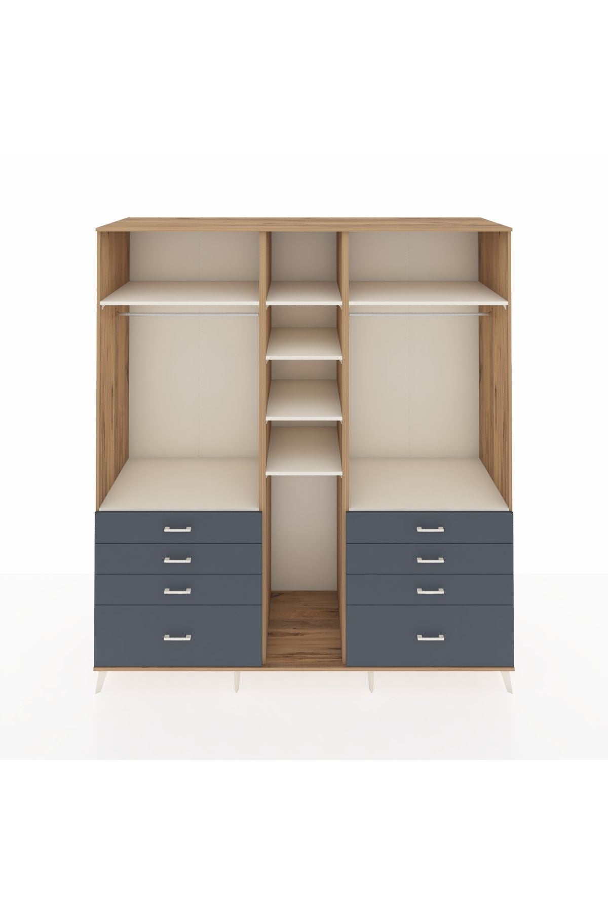 Kronos Dolap 8 Raflı 8 Çekmeceli 3 Askılı 220x59x243 Çam-Aytaşı/Antrasit