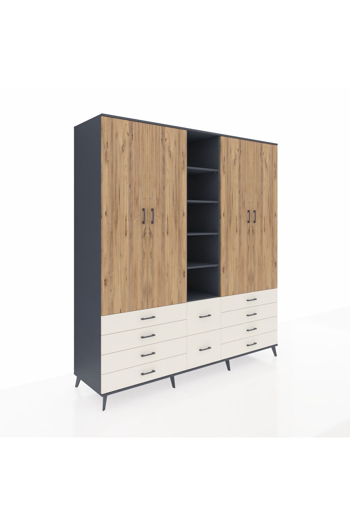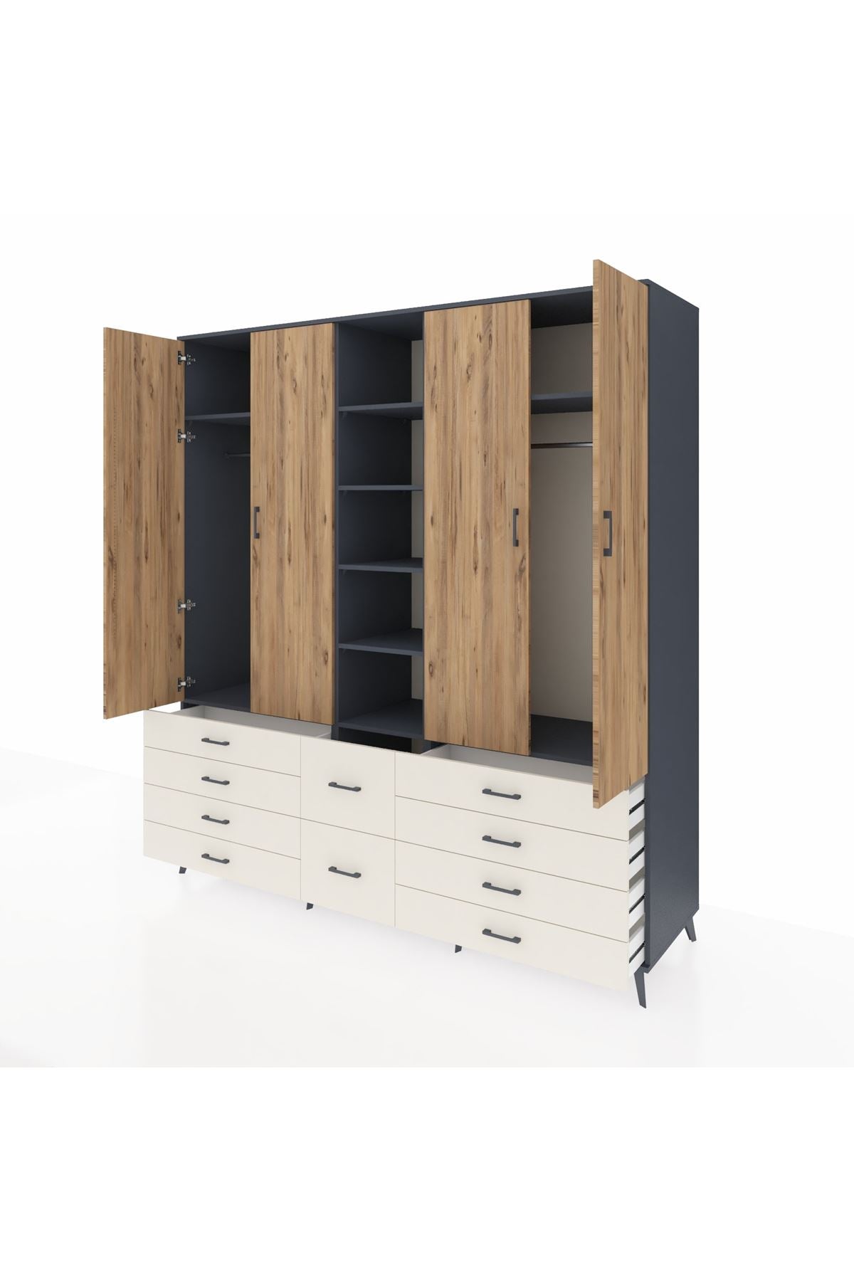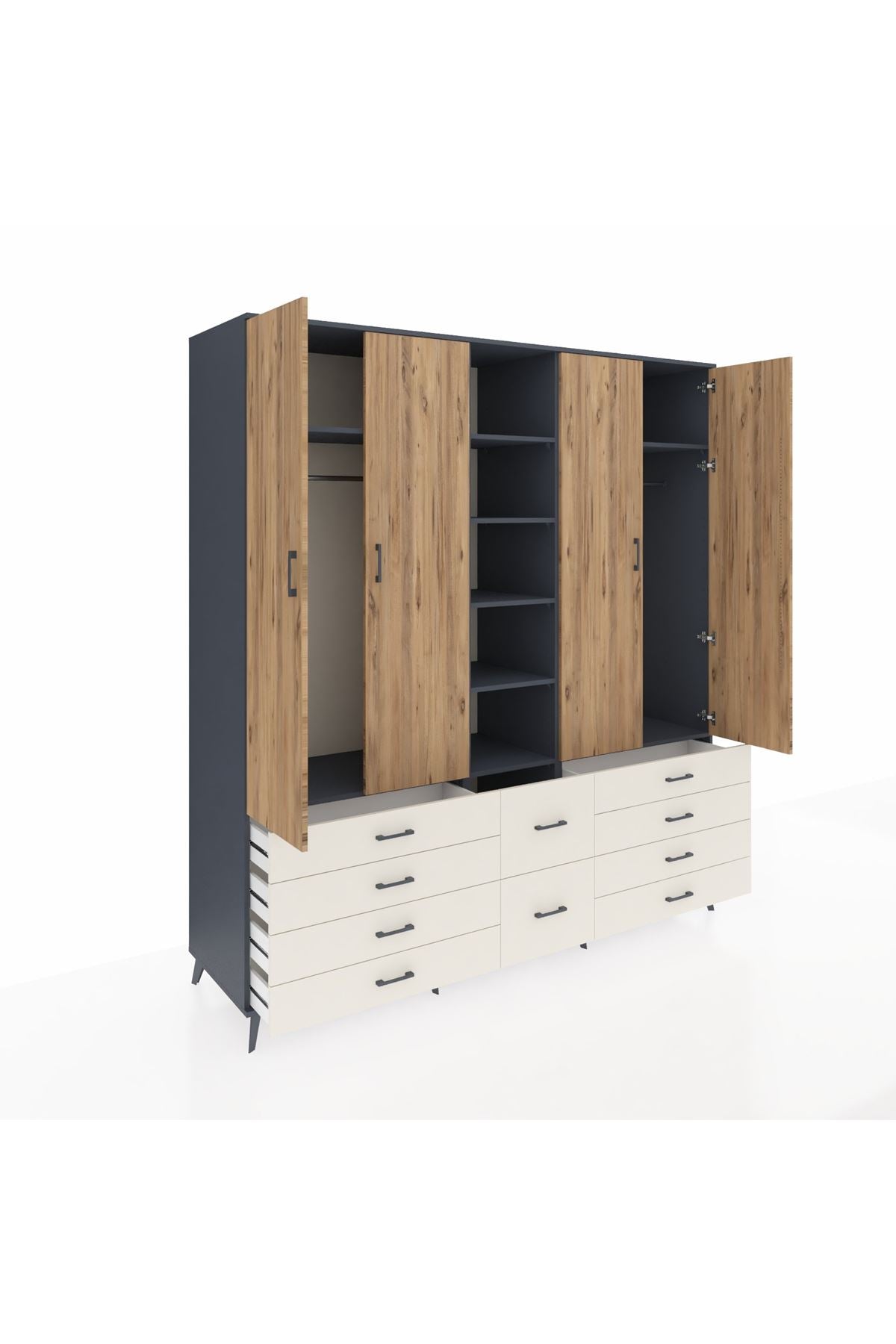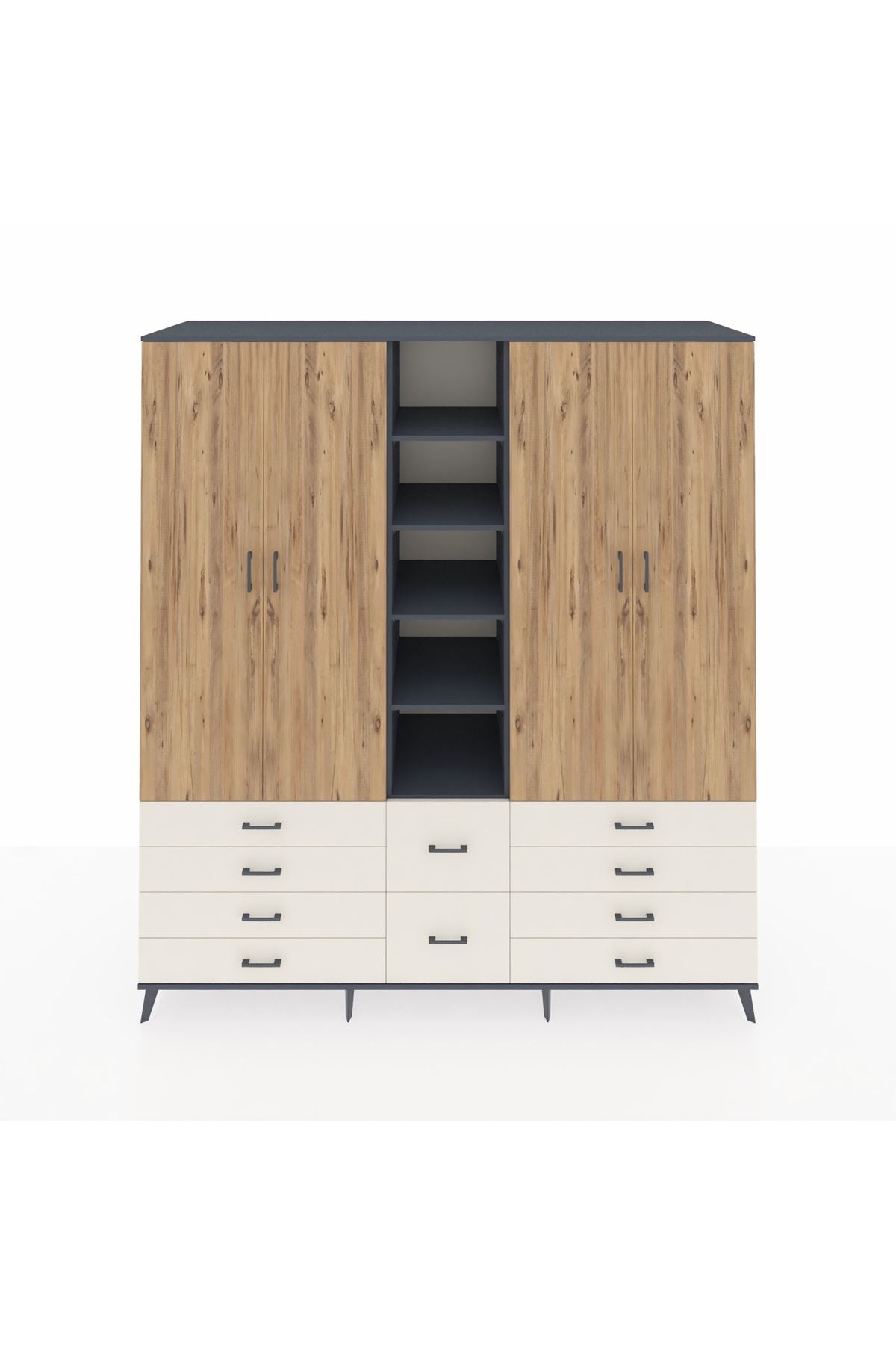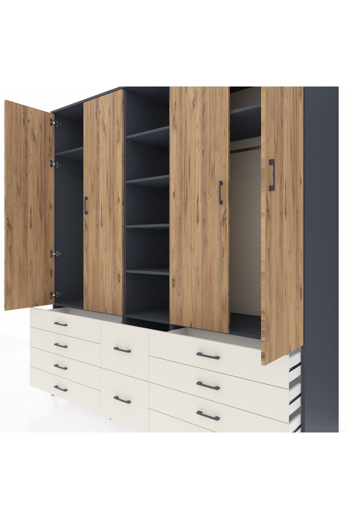 Kronos Dolap 9 Raflı 10 Çekmeceli 2 Askılı 220x59x243 Antrasit-Çam/Aytaşı