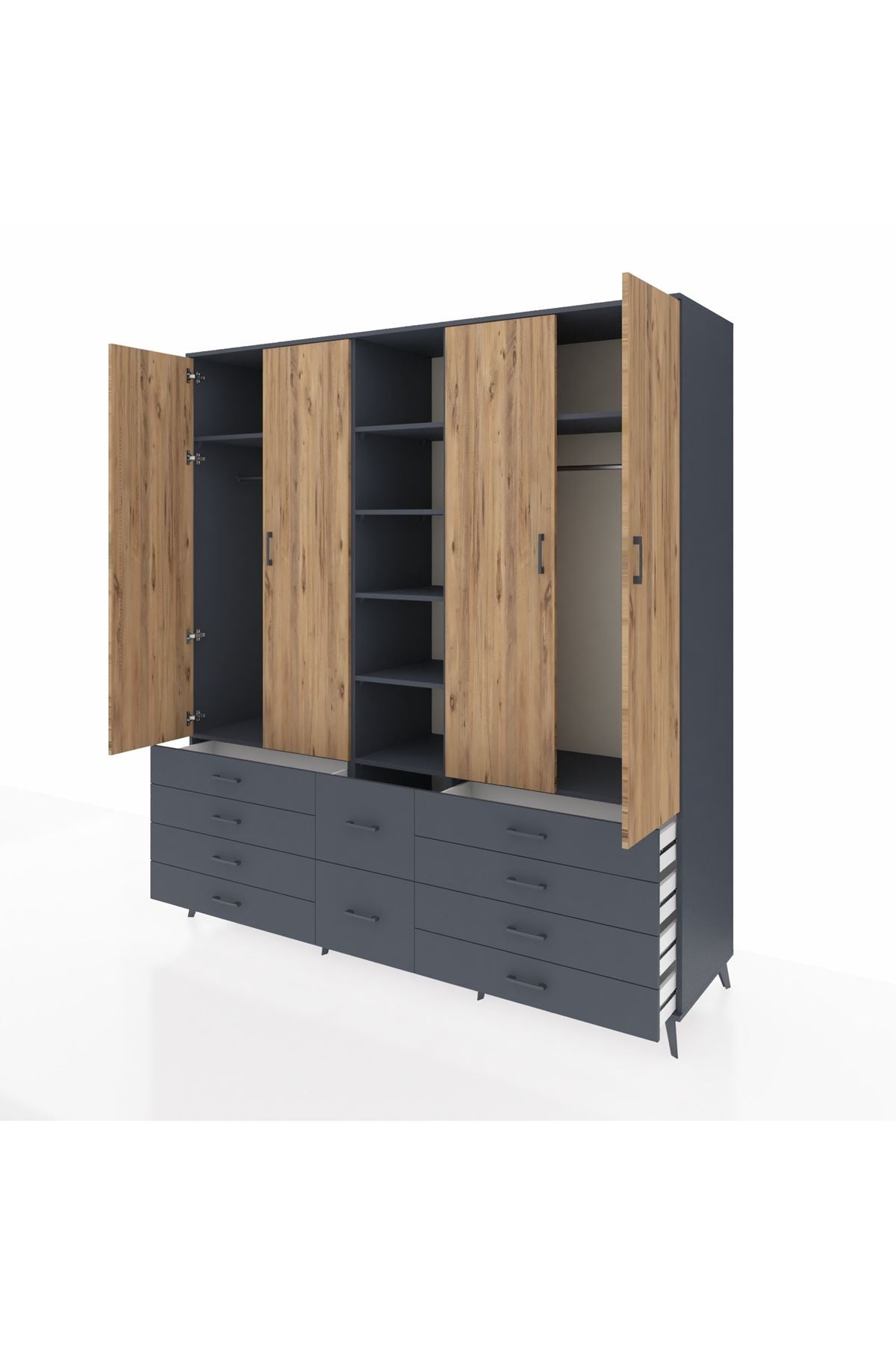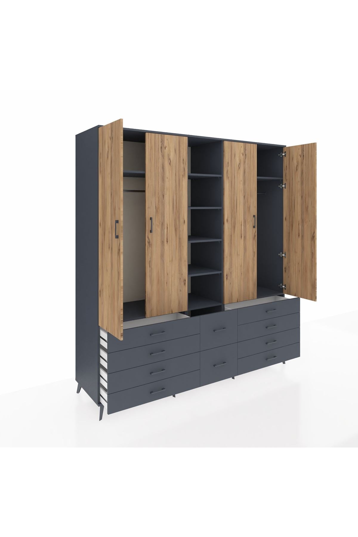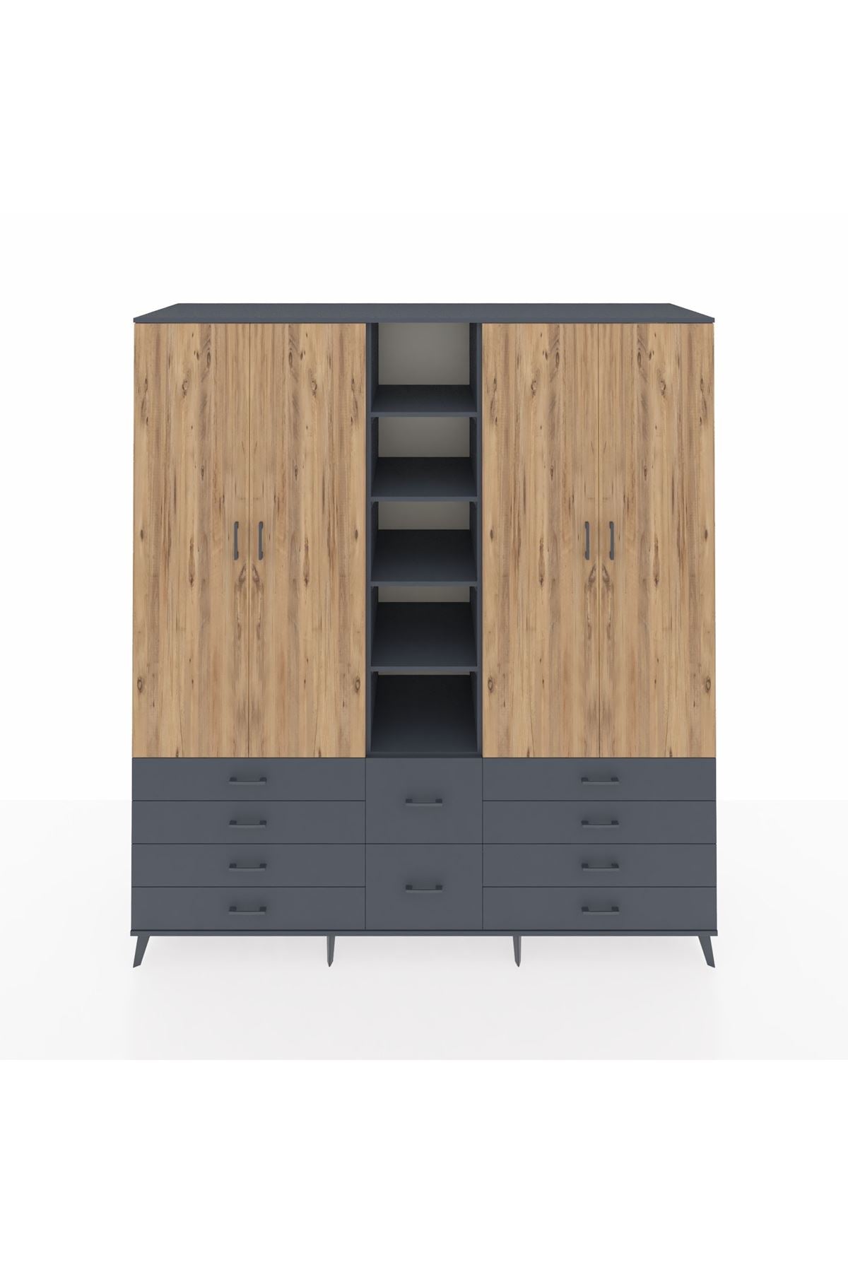 Kronos Dolap 9 Raflı 10 Çekmeceli 2 Askılı 220x59x243 Antrasit-Çam/Antrasit