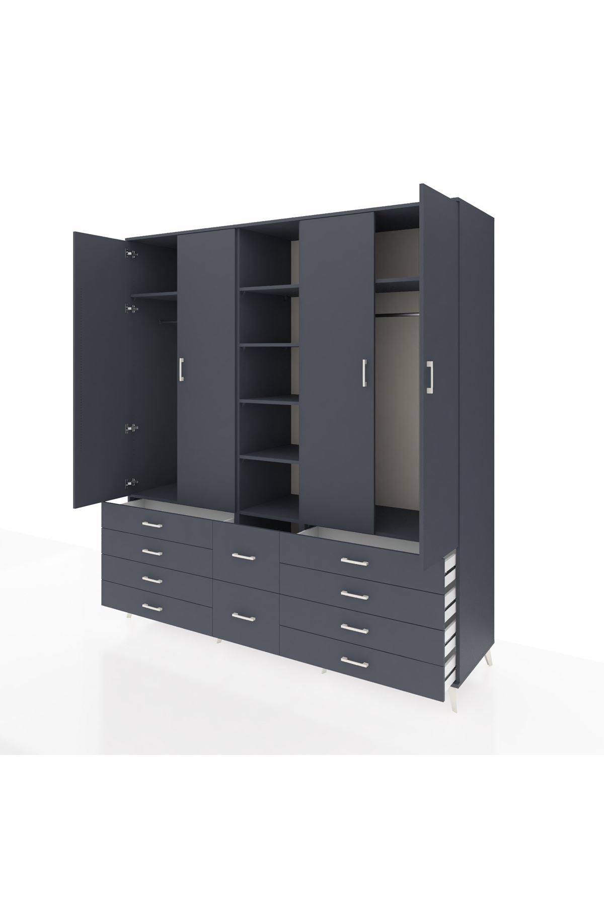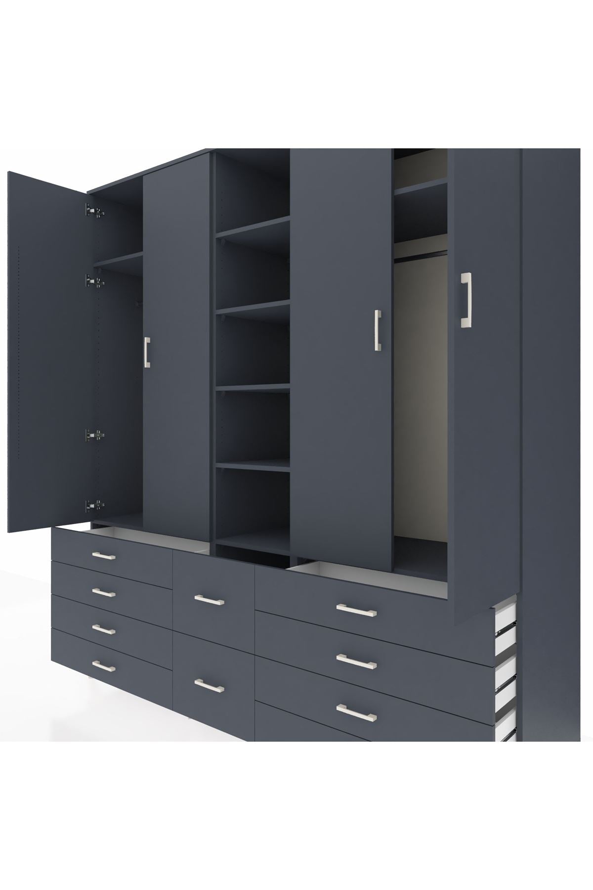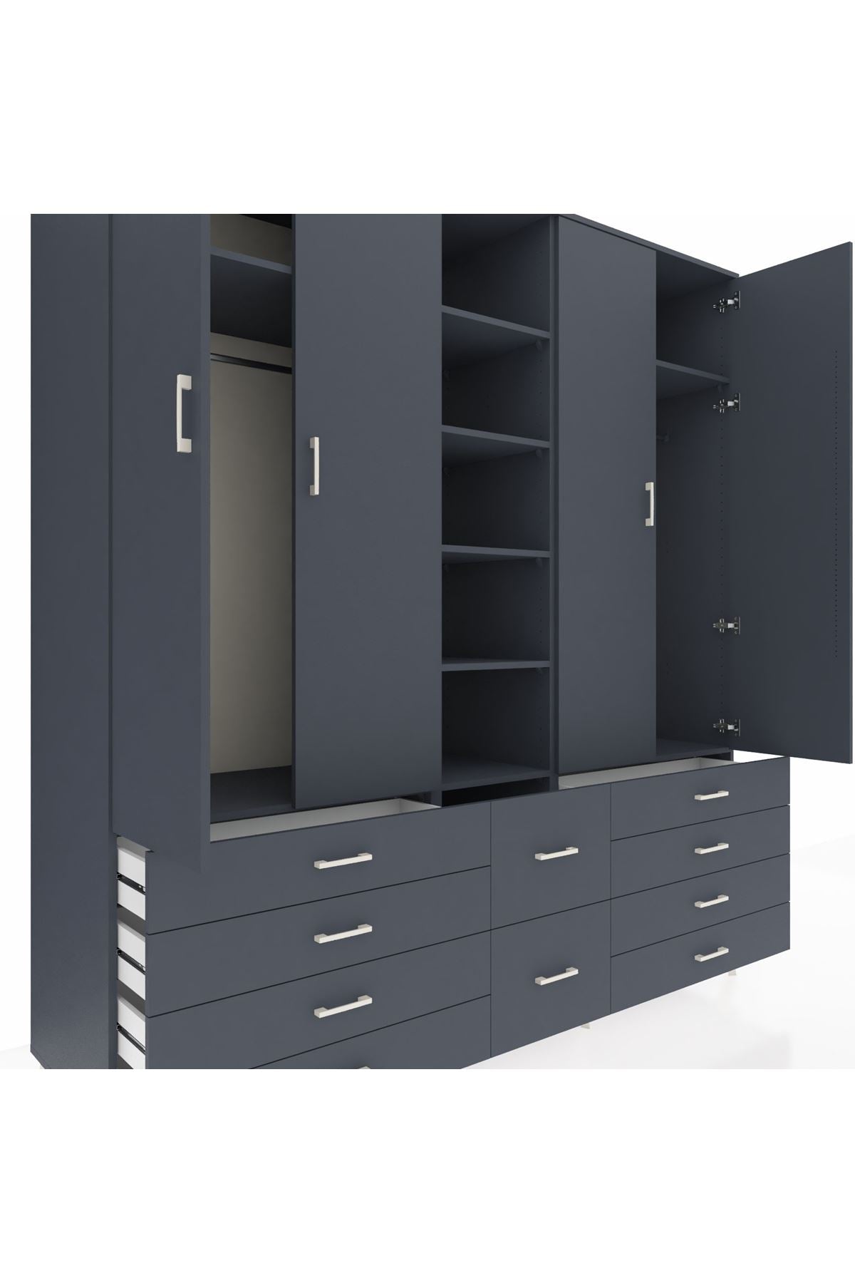Kronos Dolap 9 Raflı 10 Çekmeceli 2 Askılı 220x59x243 Antrasit-Antrasit/Antrasit