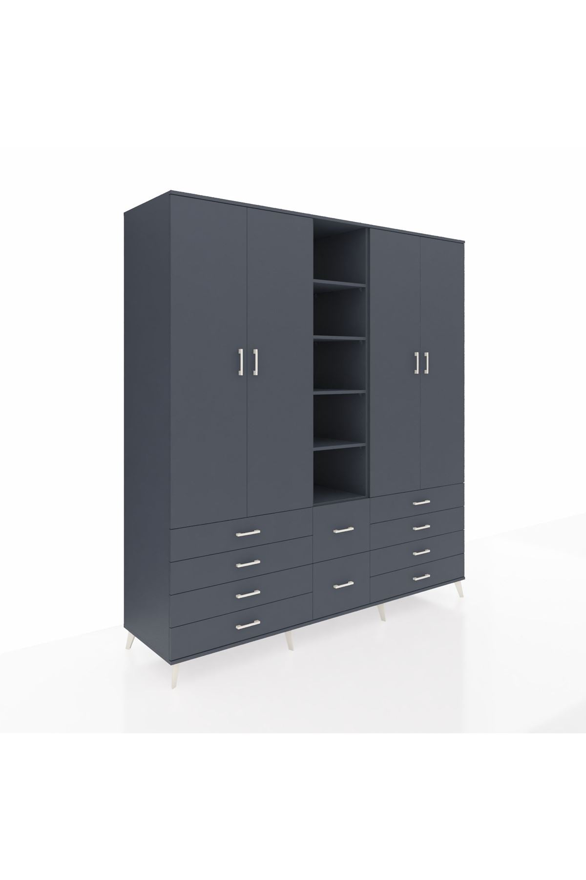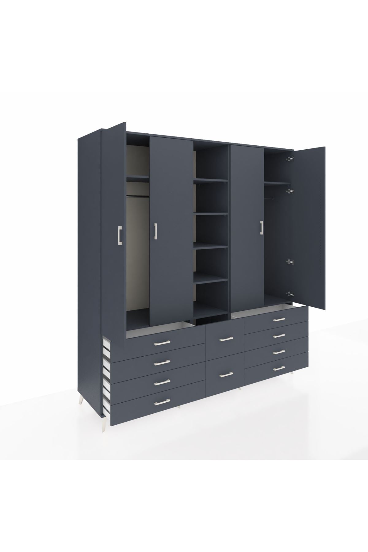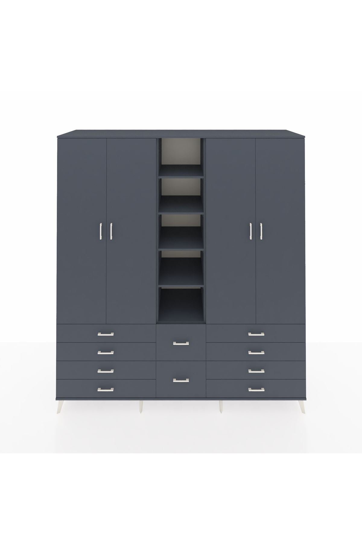 Kronos Dolap 9 Raflı 10 Çekmeceli 2 Askılı 220x59x243 Antrasit-Antrasit/Antrasit