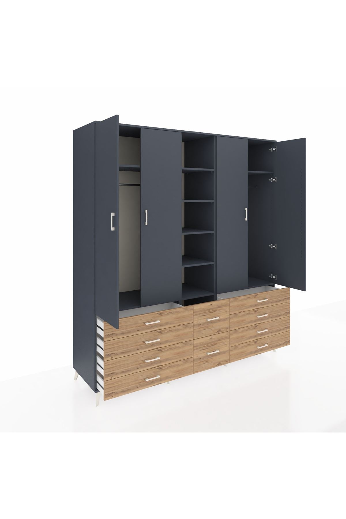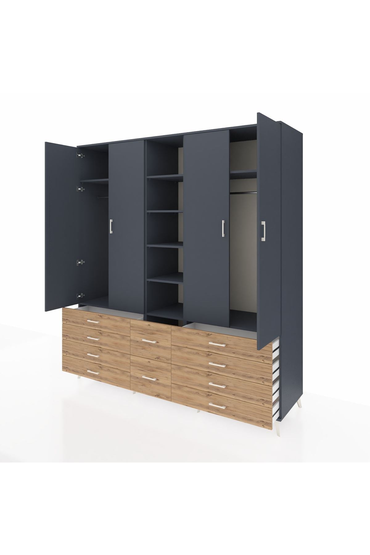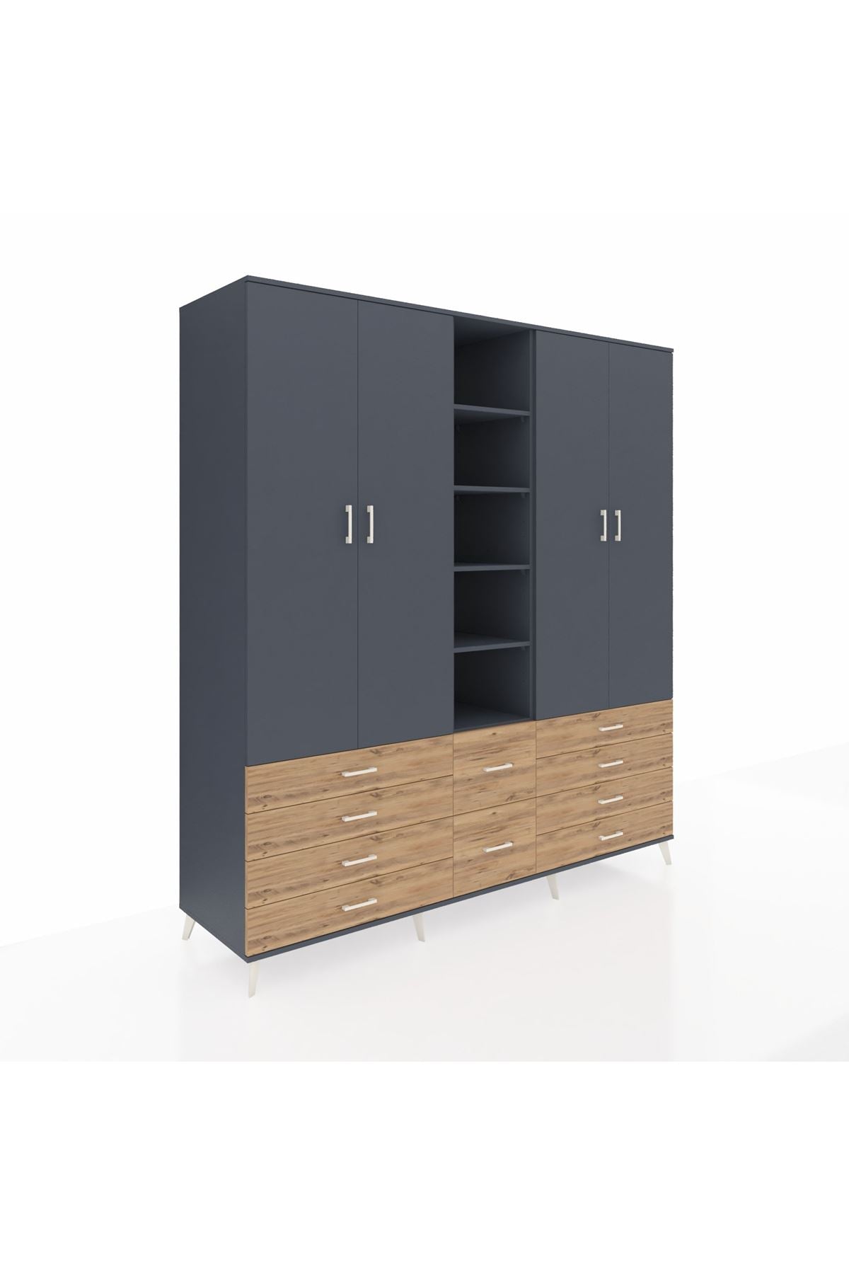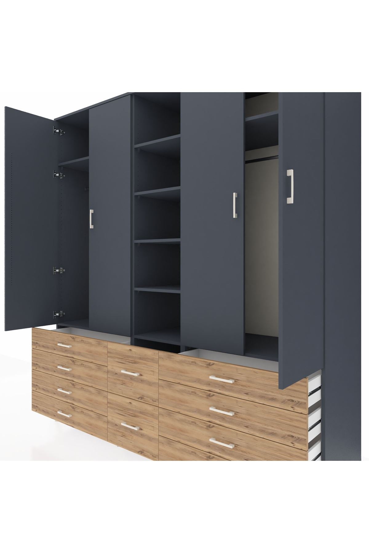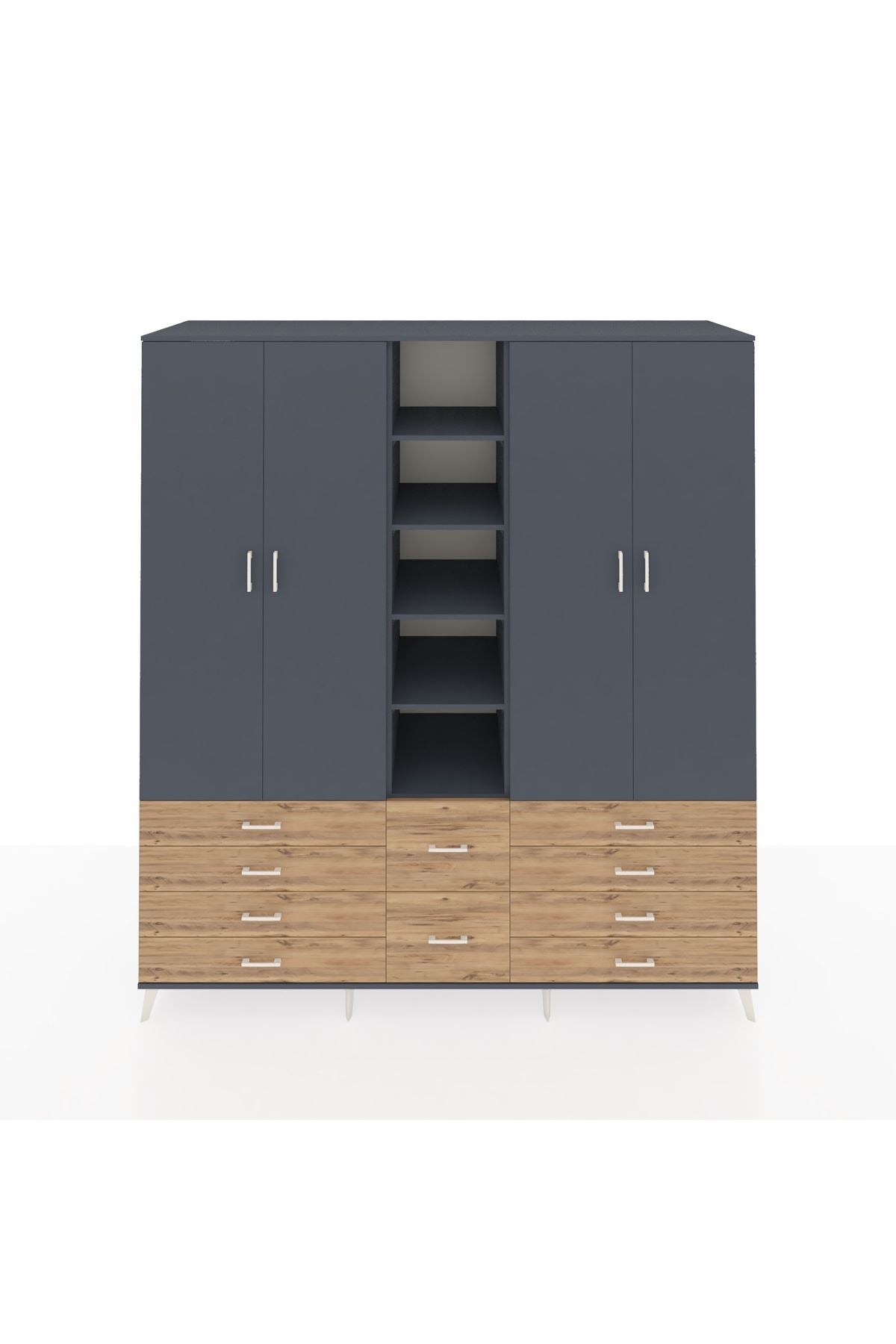 Kronos Dolap 9 Raflı 10 Çekmeceli 2 Askılı 220x59x243 Antrasit-Antrasit/Çam