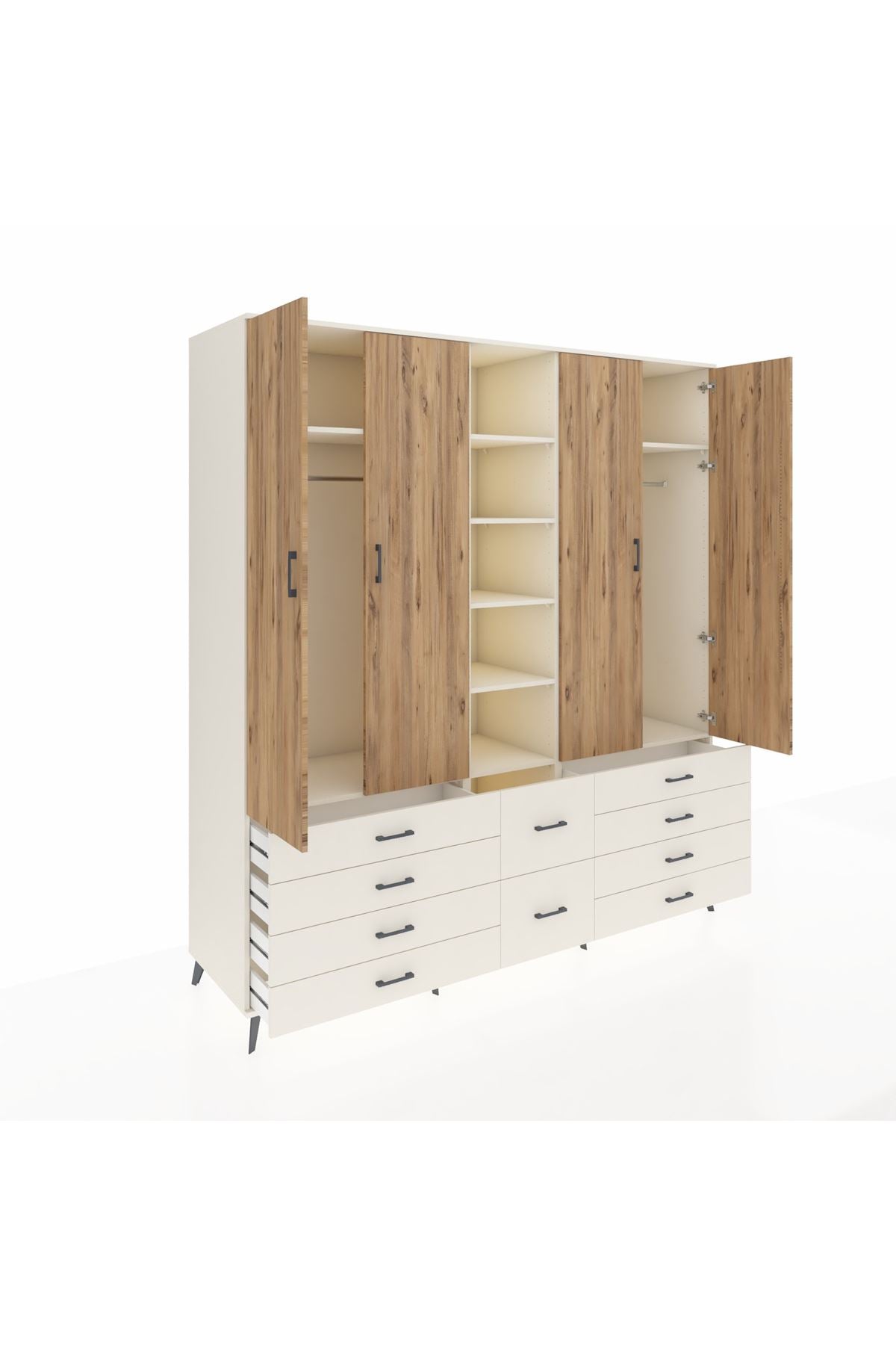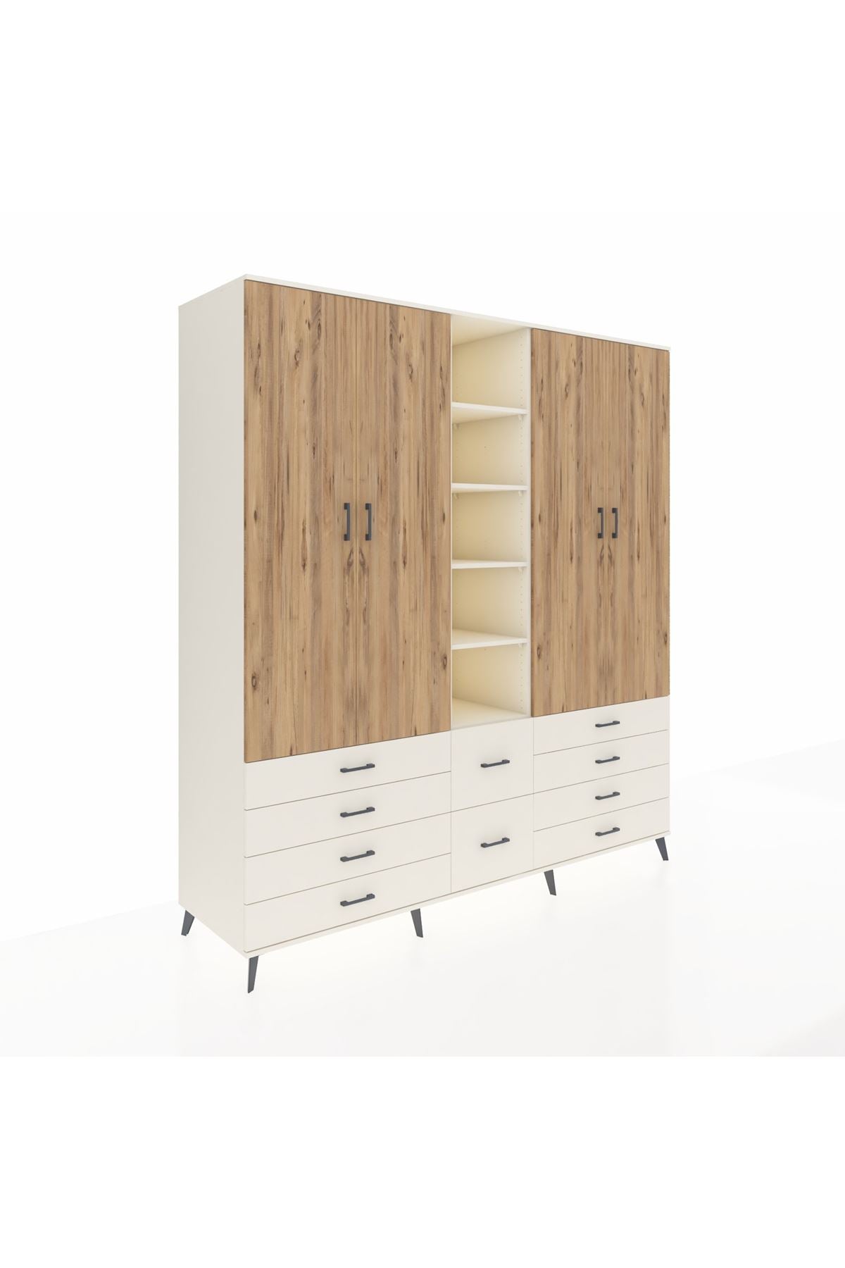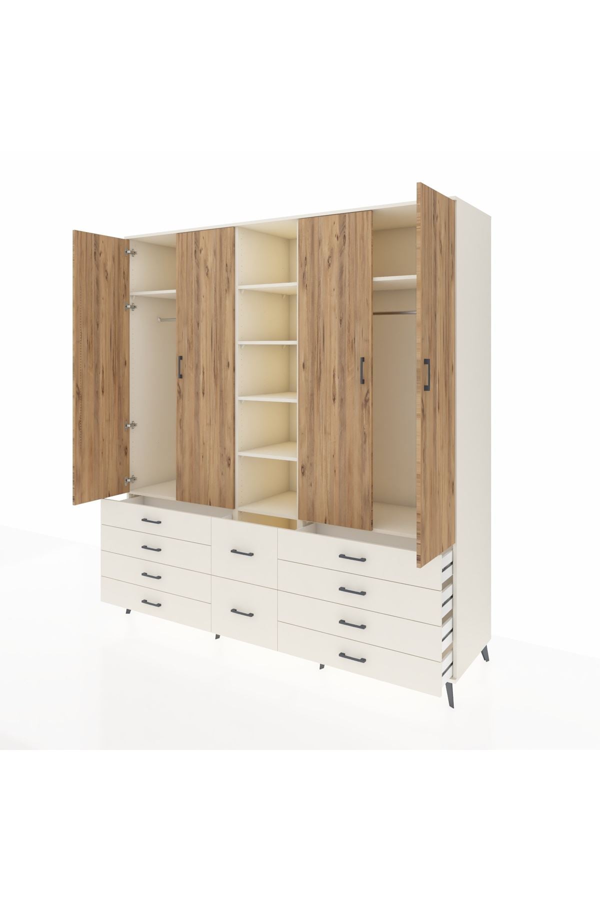 Kronos Dolap 9 Raflı 10 Çekmeceli 2 Askılı 220x59x243 Aytaşı-Çam/Aytaşı