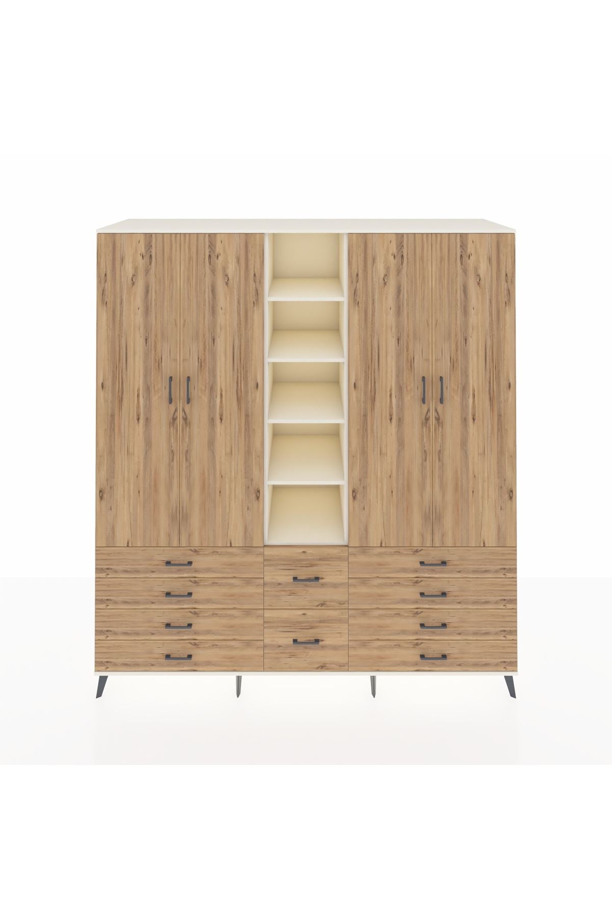 Kronos Dolap 9 Raflı 10 Çekmeceli 2 Askılı 220x59x243 Aytaşı-Çam/Çam