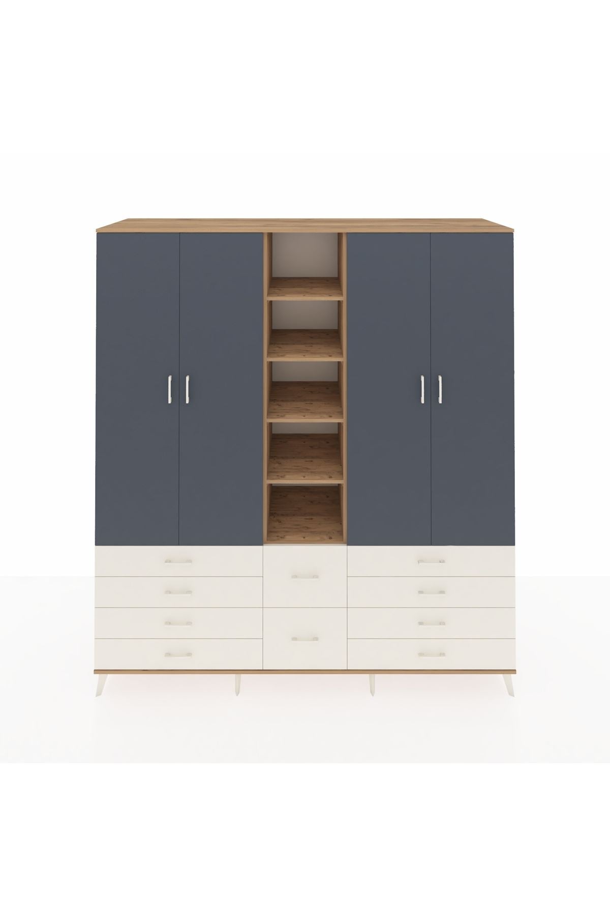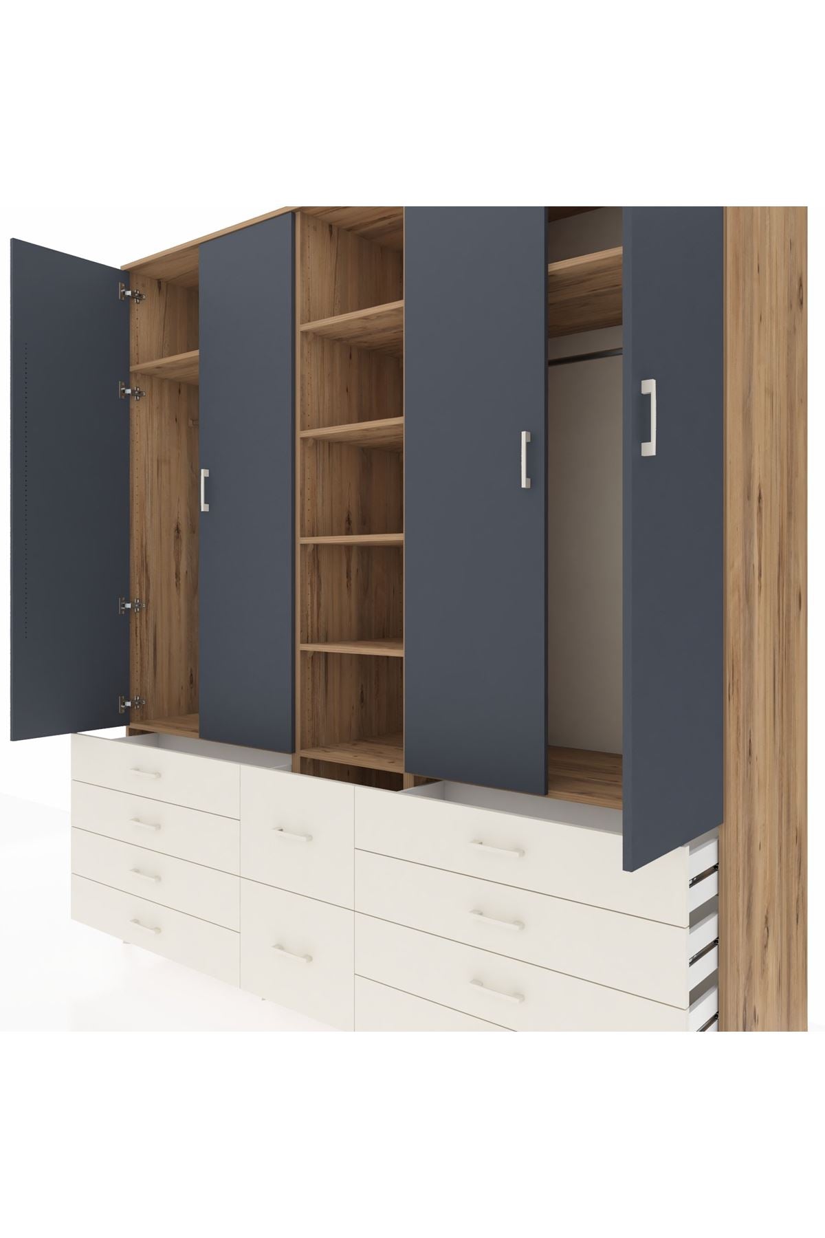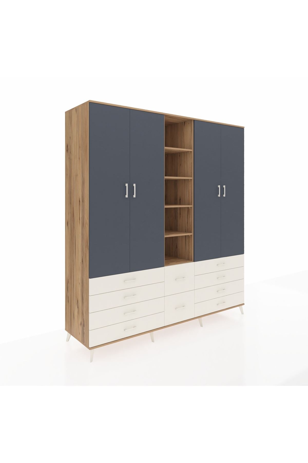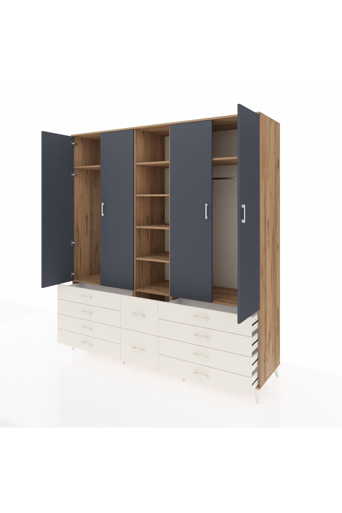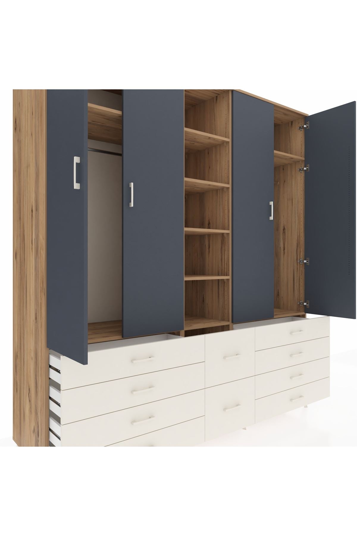Kronos Dolap 9 Raflı 10 Çekmeceli 2 Askılı 220x59x243 Çam-Antrasit/Aytaşı