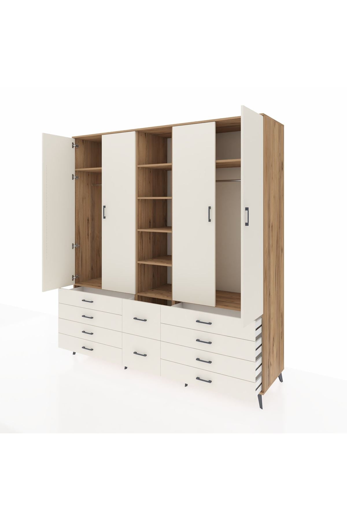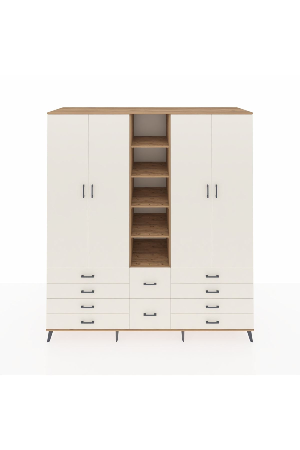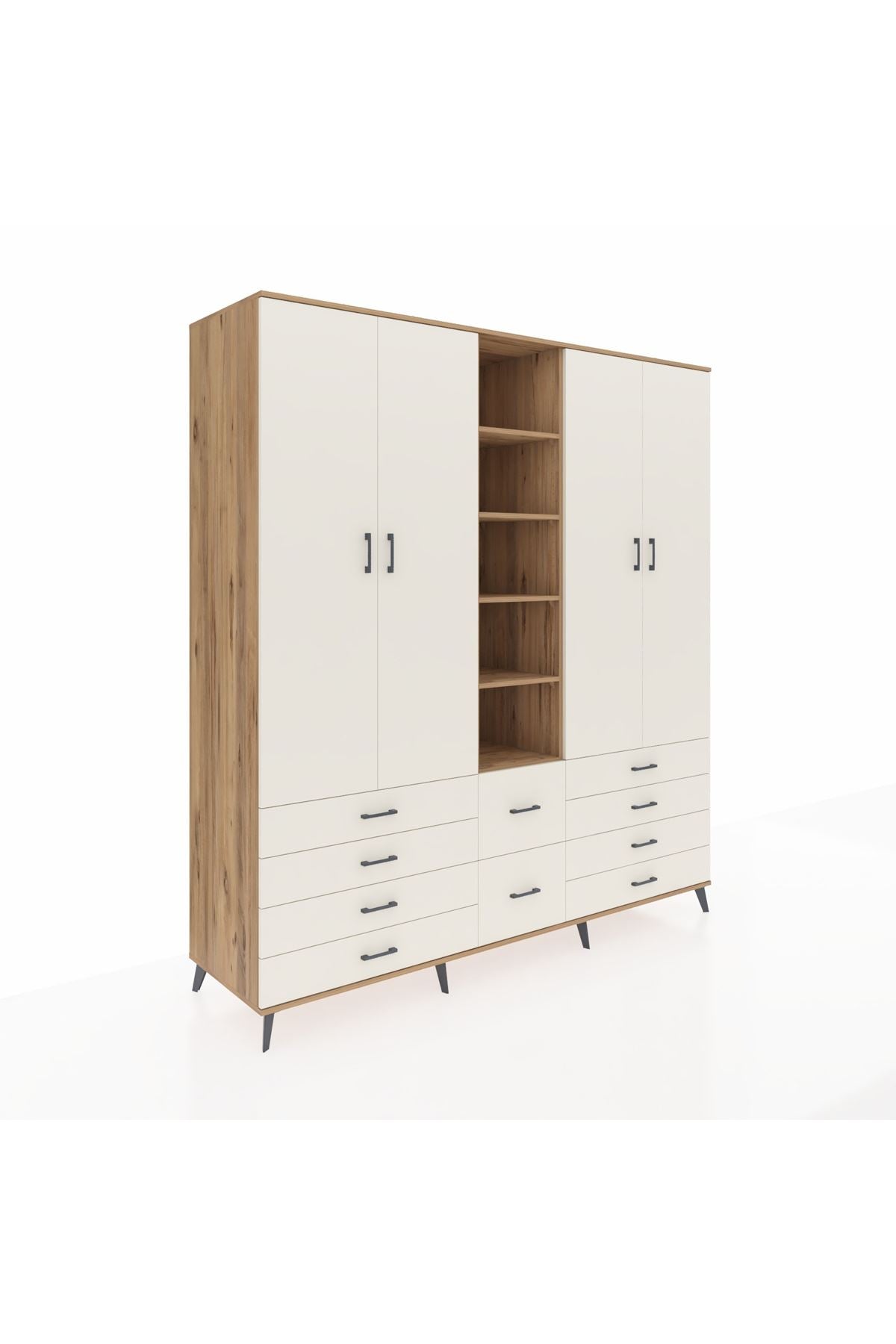Kronos Dolap 9 Raflı 10 Çekmeceli 2 Askılı 220x59x243 Çam-Aytaşı/Aytaşı