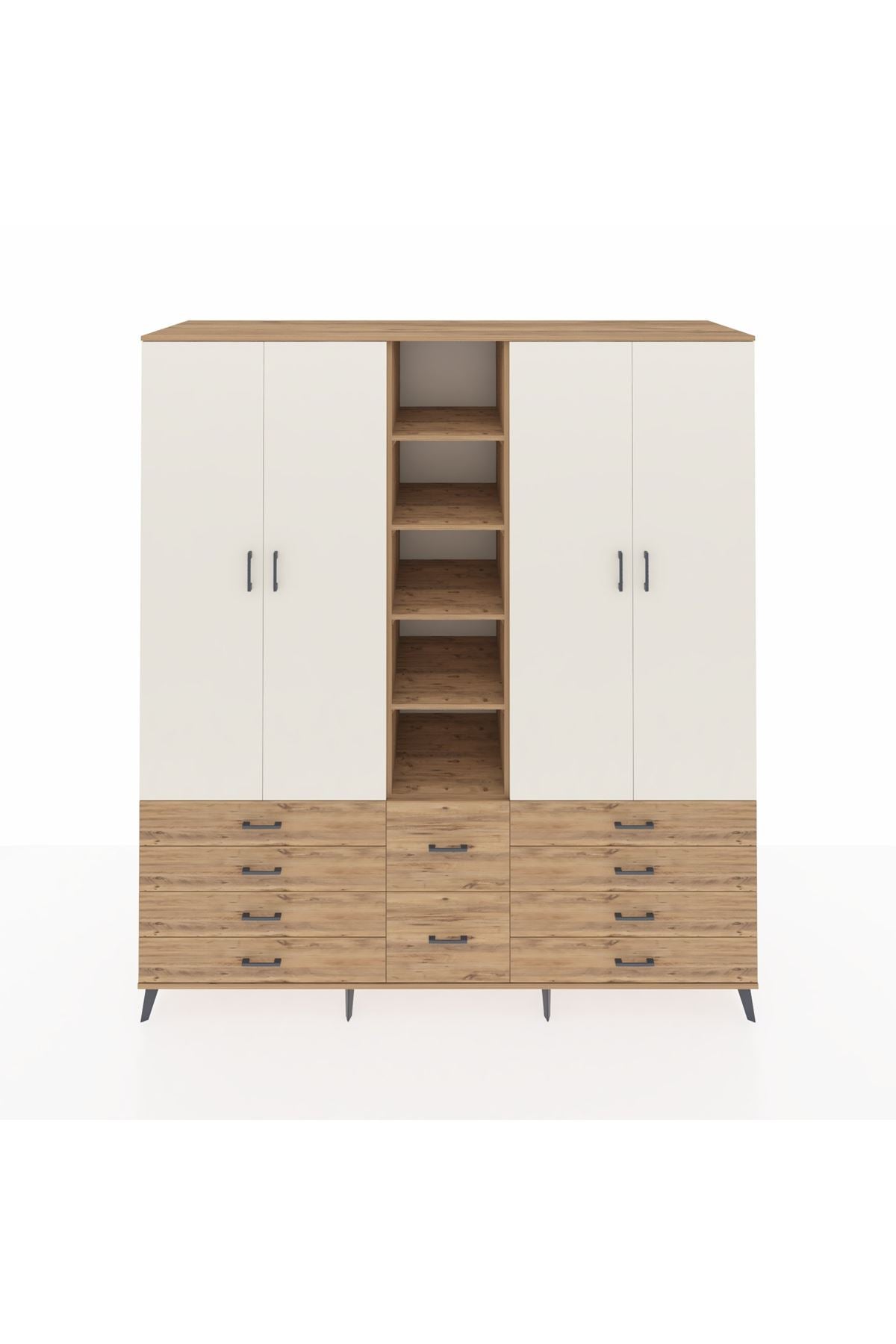 Kronos Dolap 9 Raflı 10 Çekmeceli 2 Askılı 220x59x243 Çam-Aytaşı/Çam