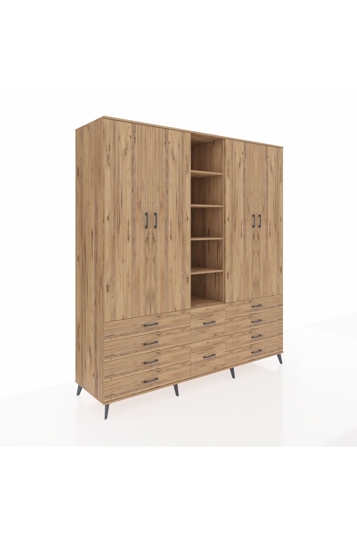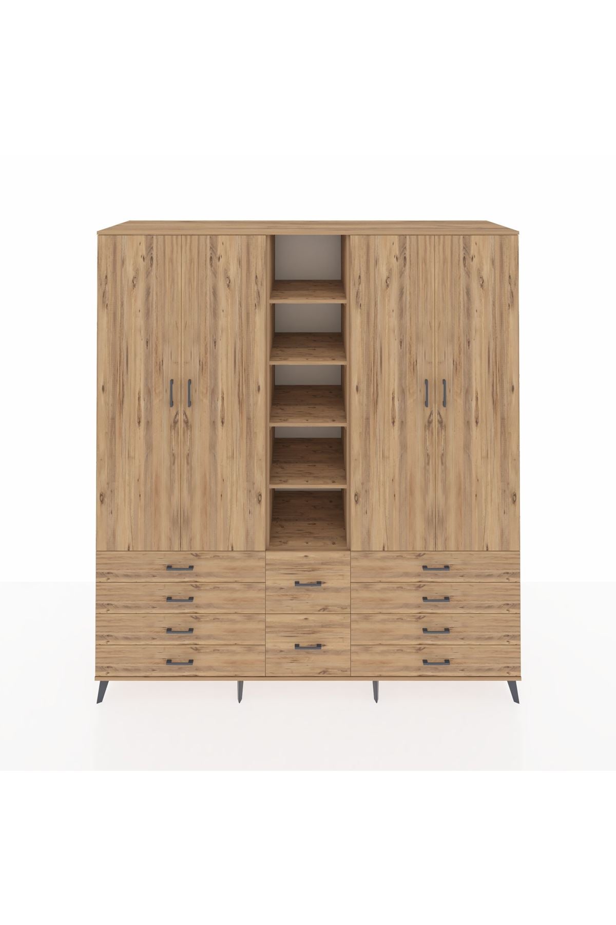 Kronos Dolap 9 Raflı 10 Çekmeceli 2 Askılı 220x59x243 Çam-Çam/Çam