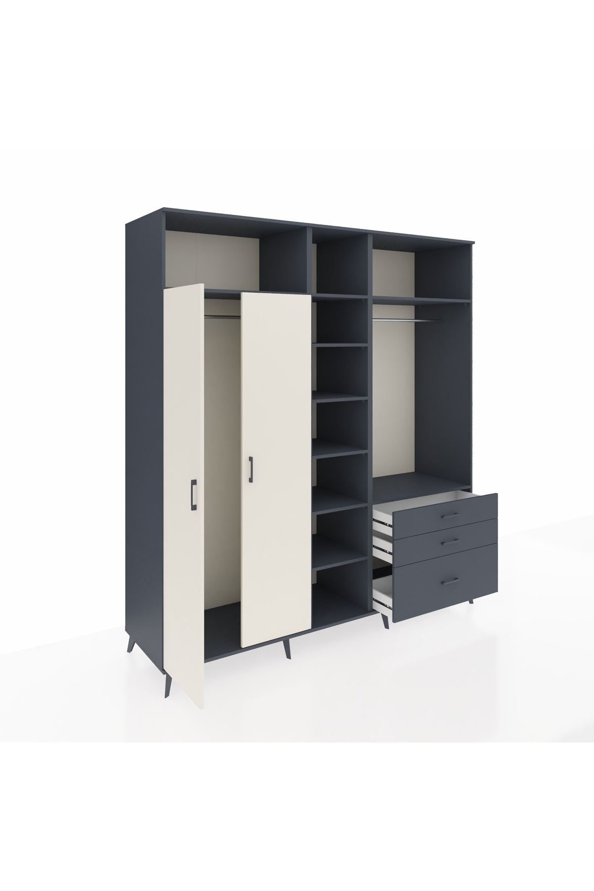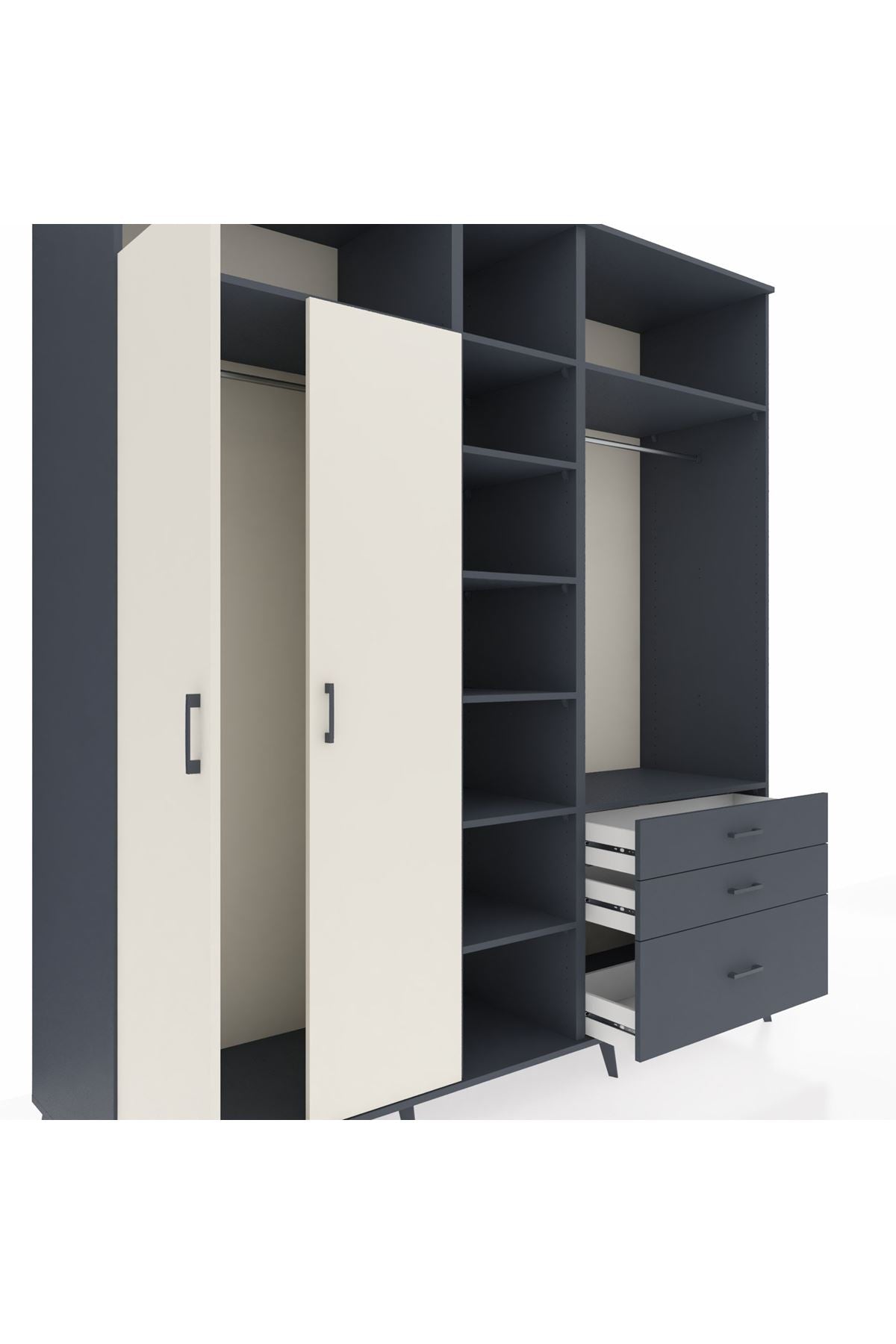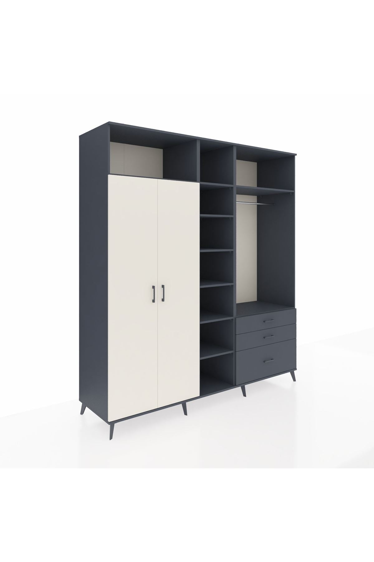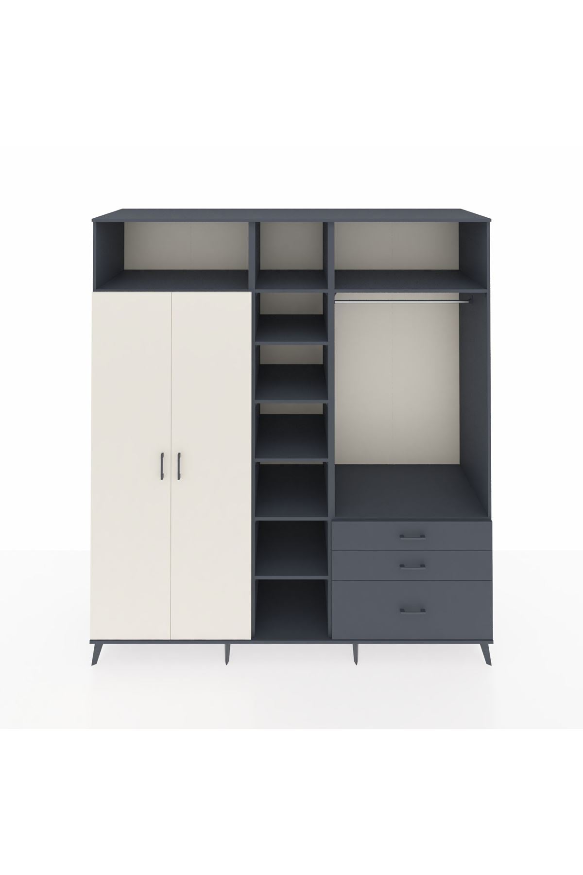 Kronos Dolap 9 Raflı 3 Çekmeceli 2 Askılı 220x59x243 Antrasit-Aytaşı/Antrasit📐 Ölçüler: