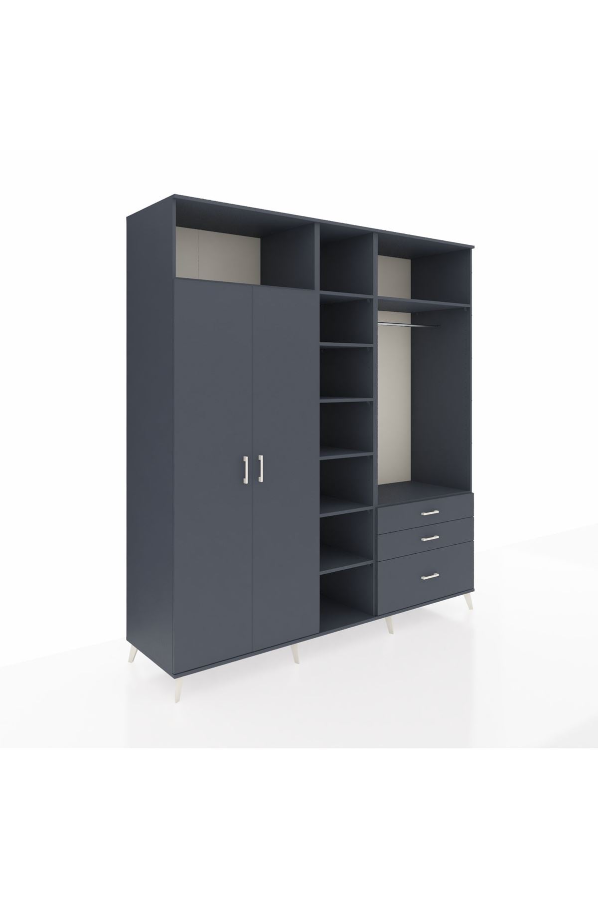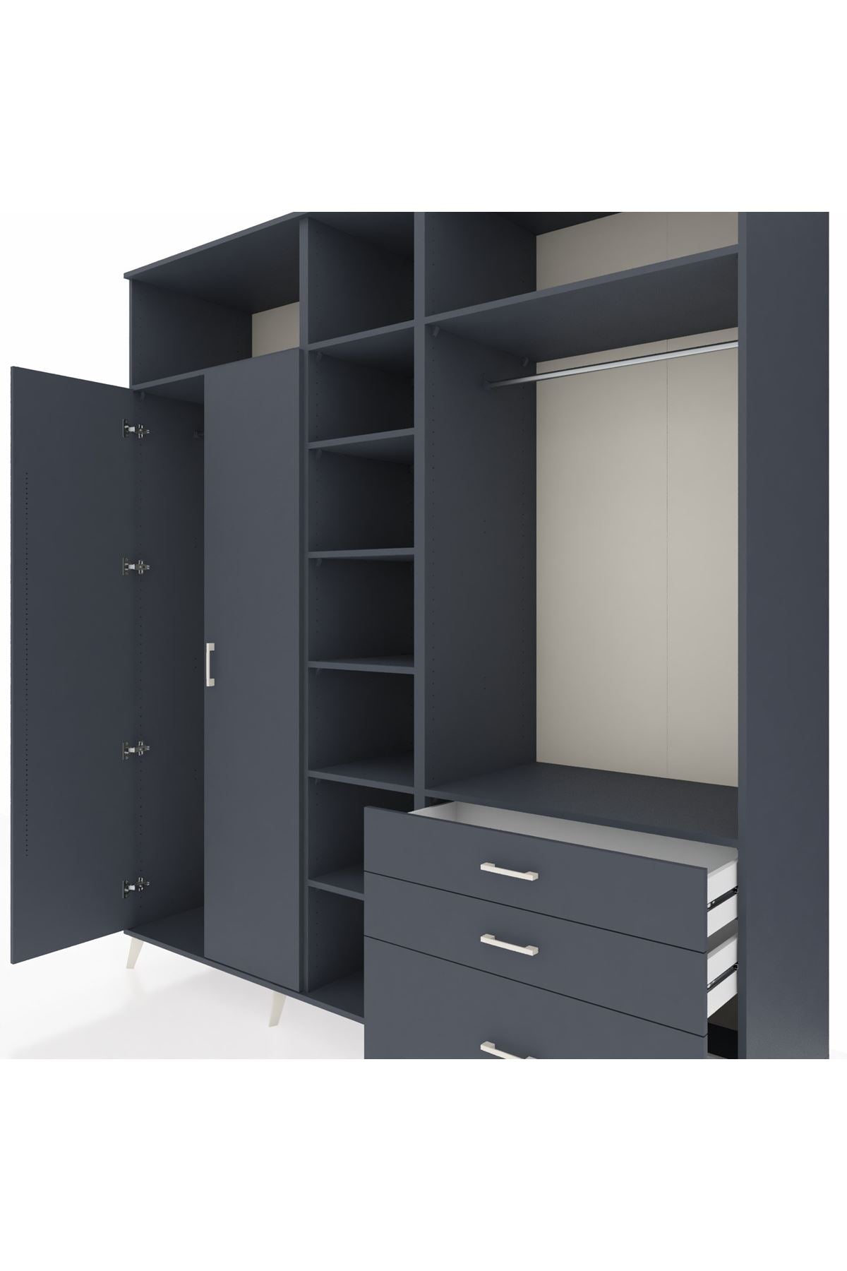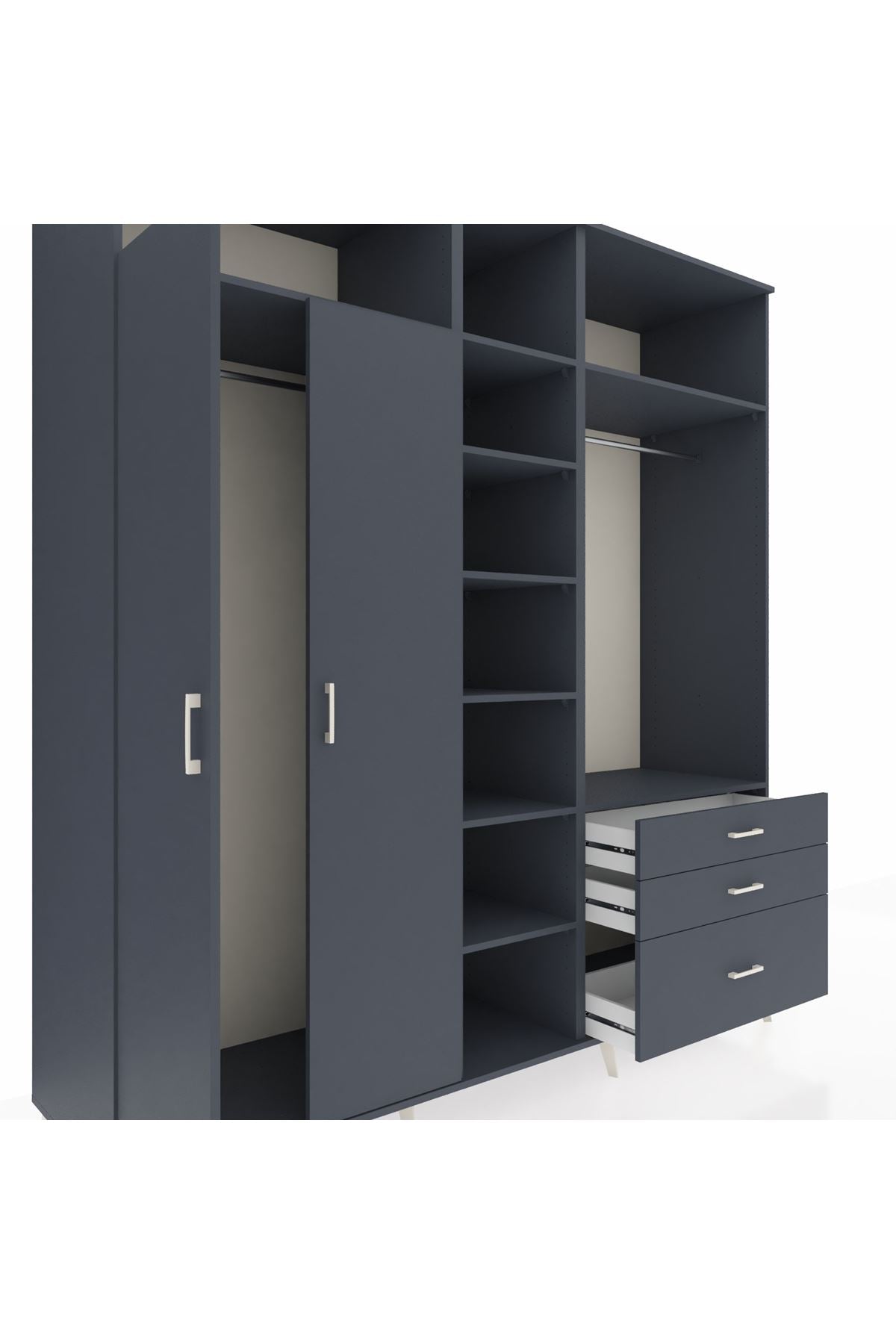 Kronos Dolap 9 Raflı 3 Çekmeceli 2 Askılı 220x59x243 Antrasit-Antrasit/Antrasit