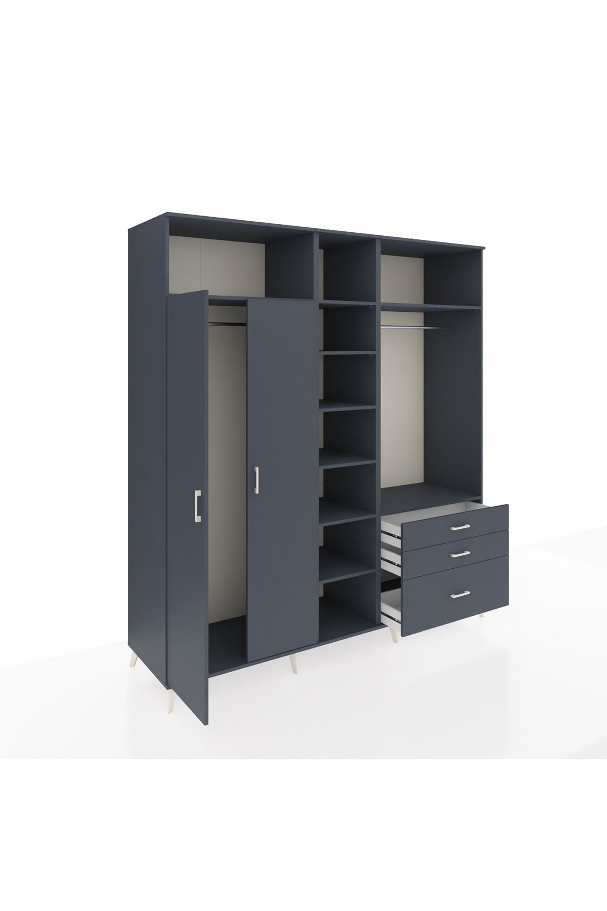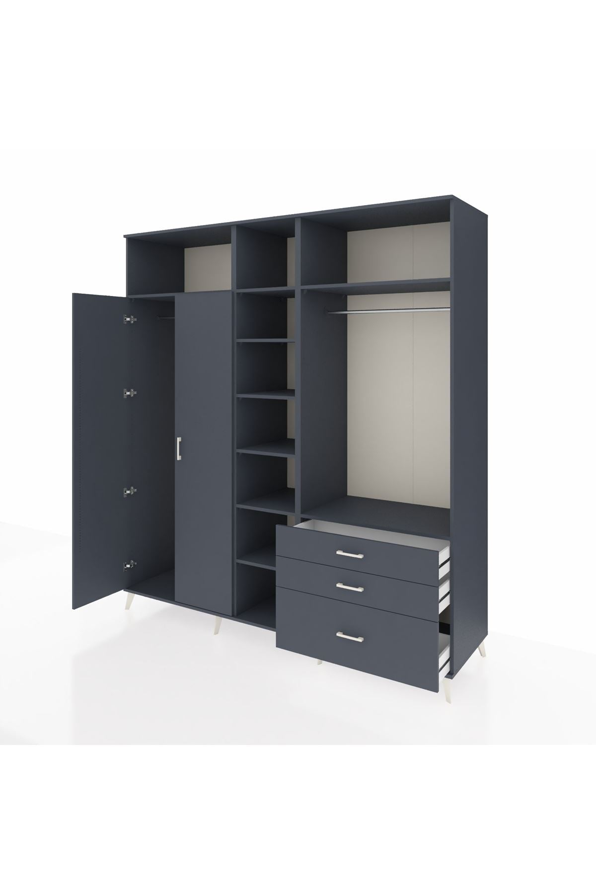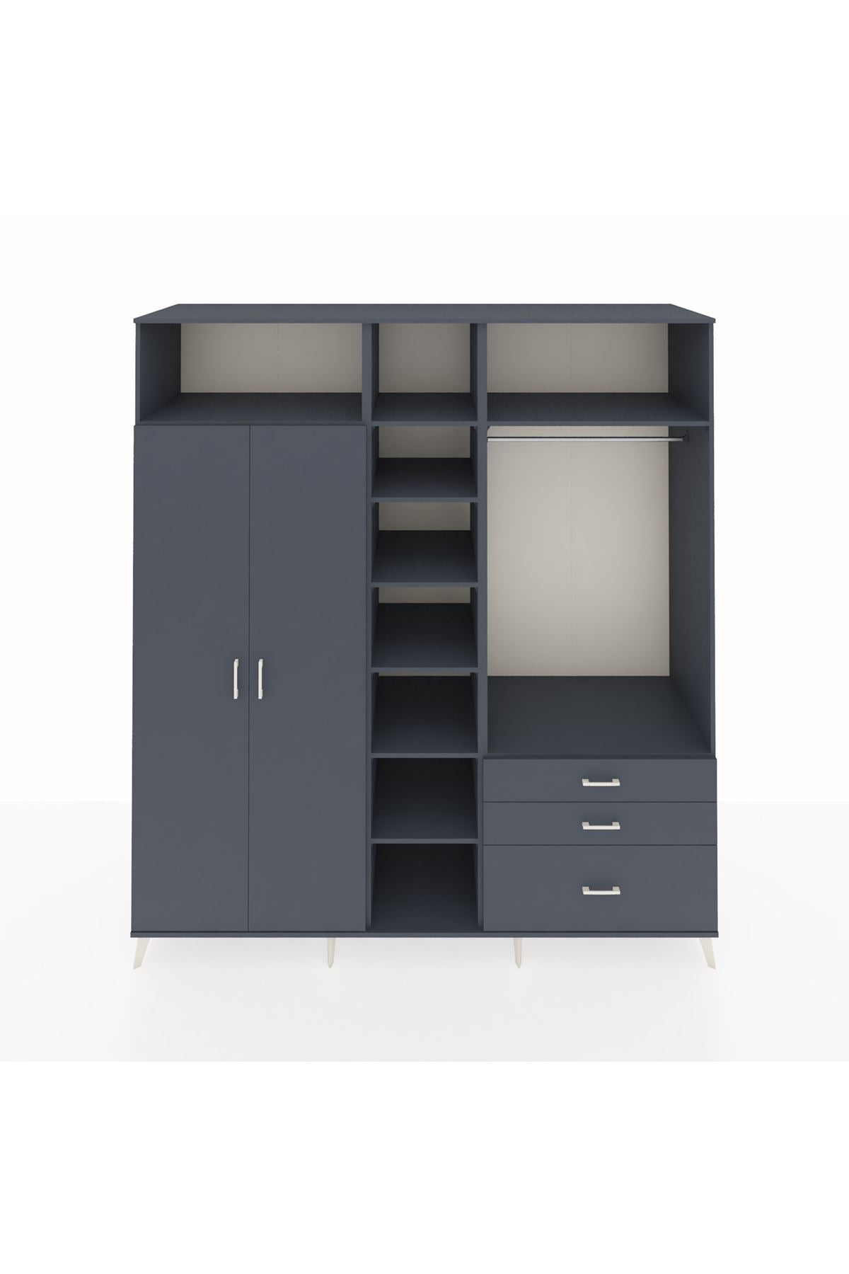 Kronos Dolap 9 Raflı 3 Çekmeceli 2 Askılı 220x59x243 Antrasit-Antrasit/Antrasit