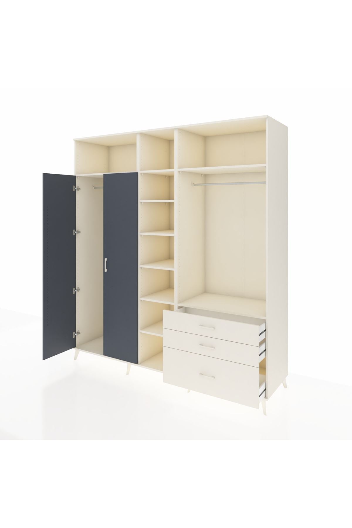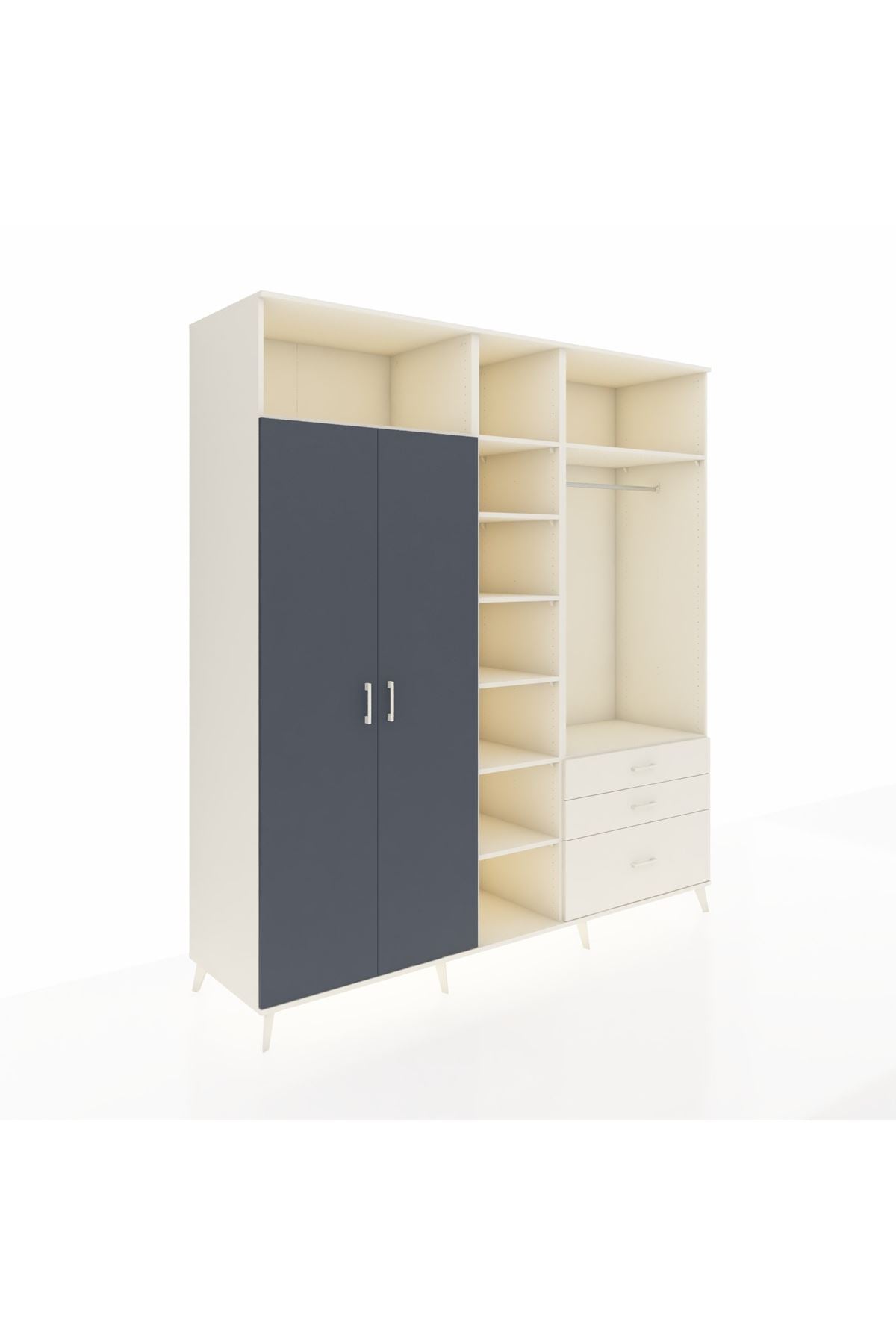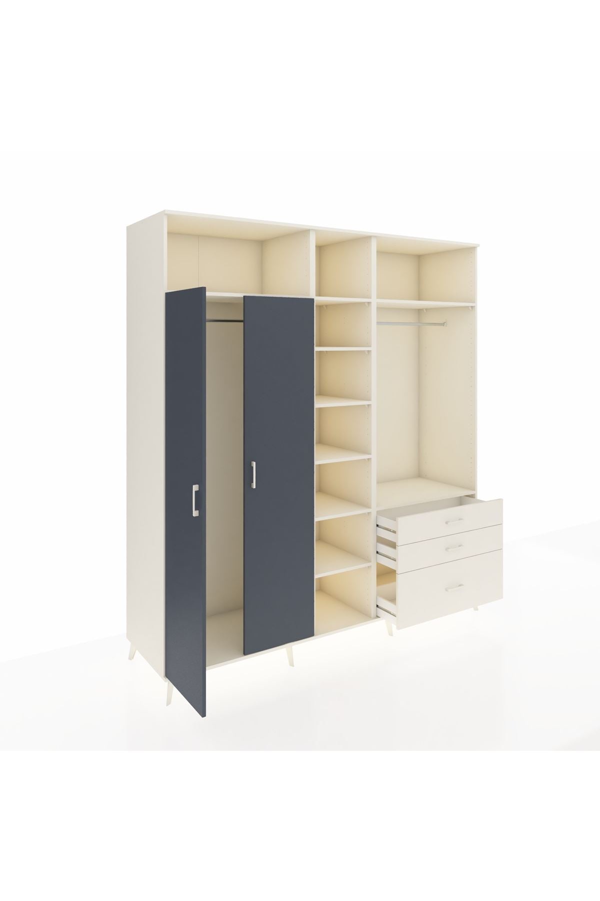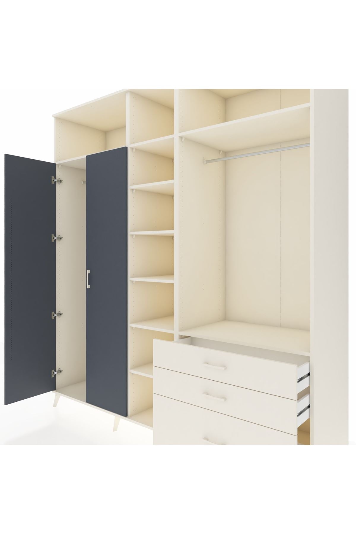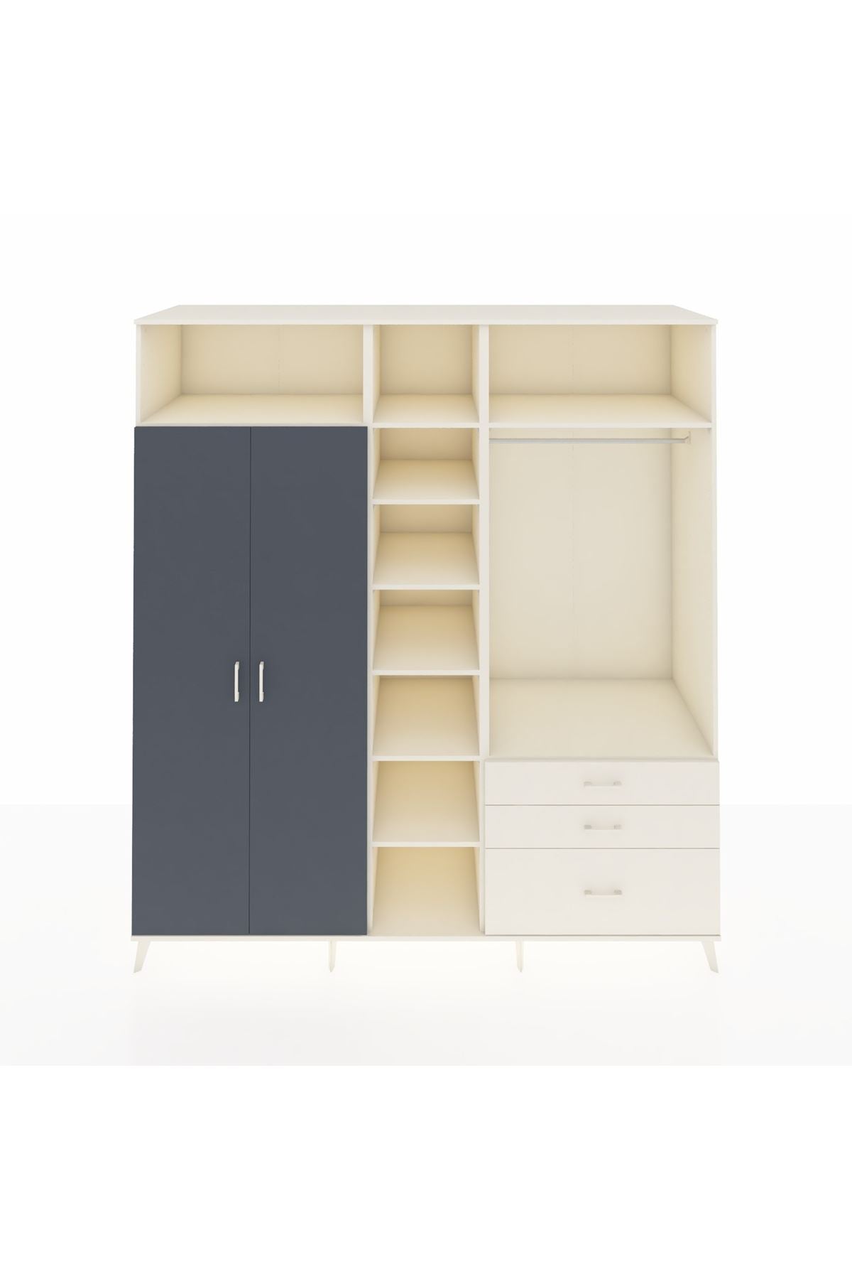 Çekmeceler 27 cm açılma mesafesi sunar. Geniş raf hacimleri ve iki askılı bölme ise düzeni ve rahatlığı ön plana çıkarır.