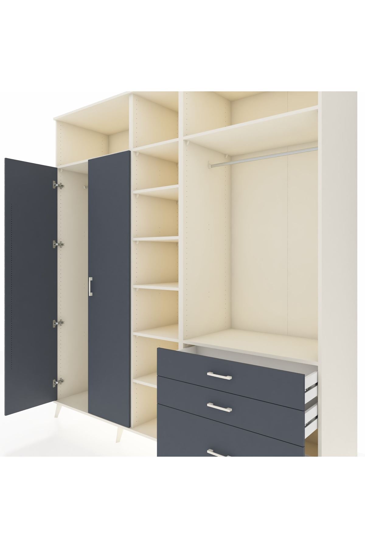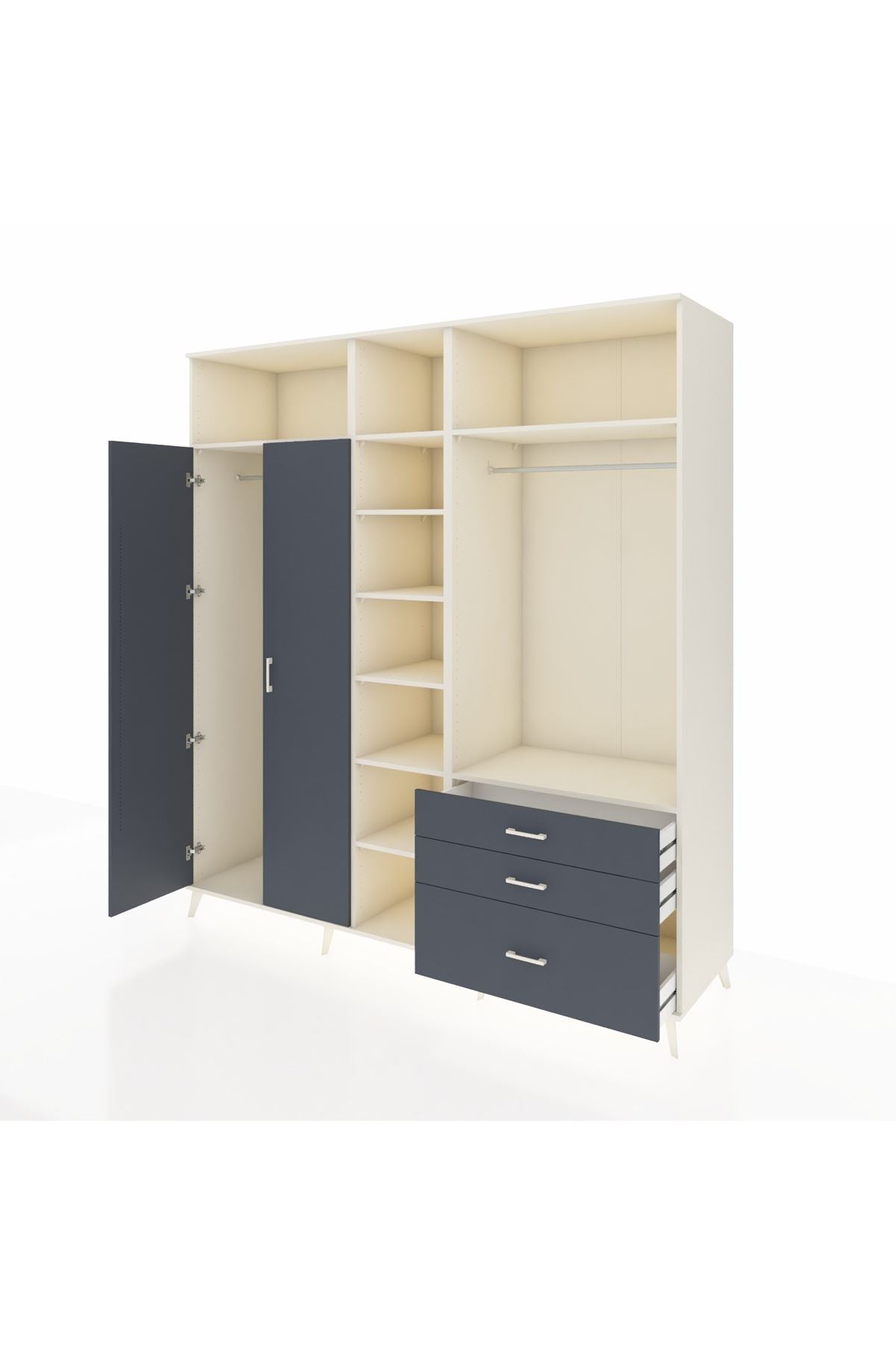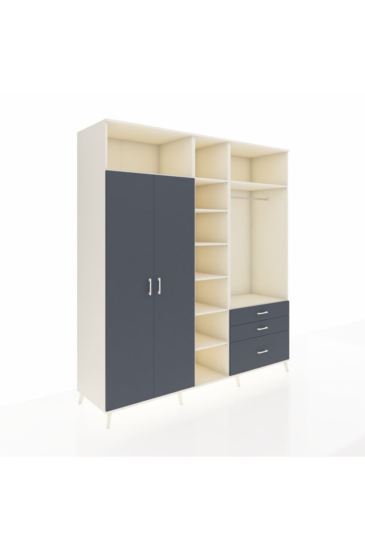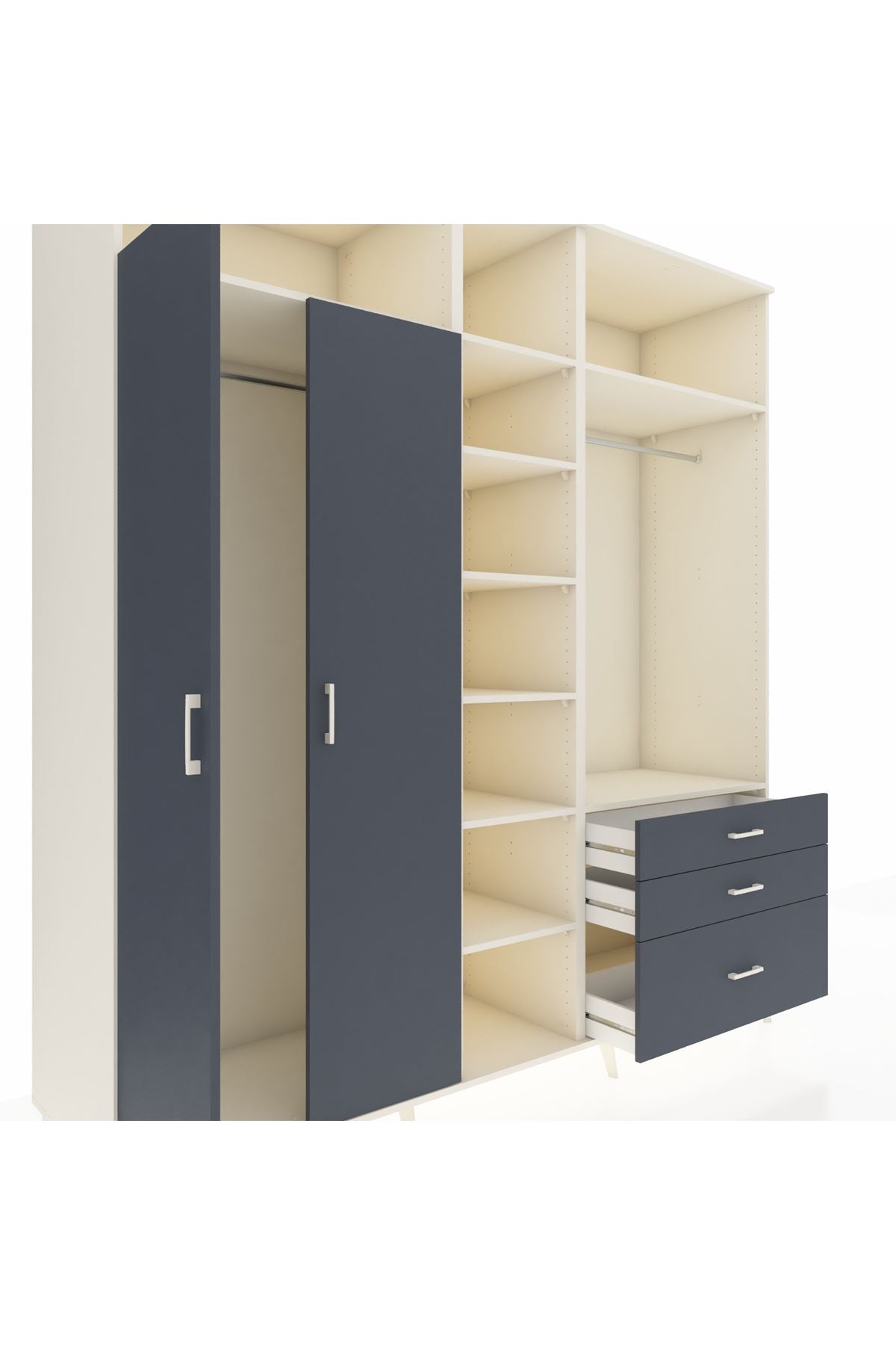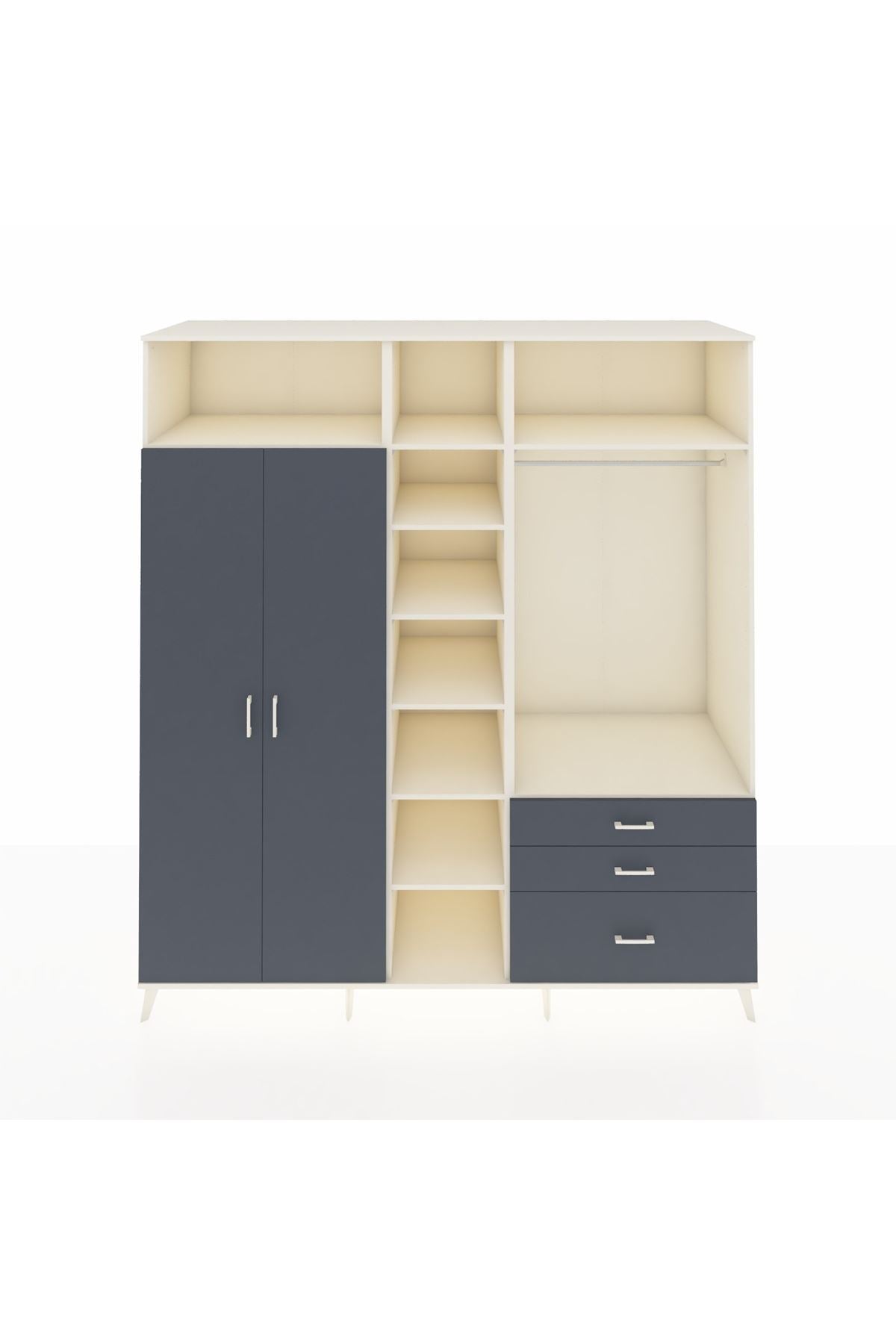 Kronos Dolap 9 Raflı 3 Çekmeceli 2 Askılı 220x59x243 Aytaşı-Antrasit/Antrasit