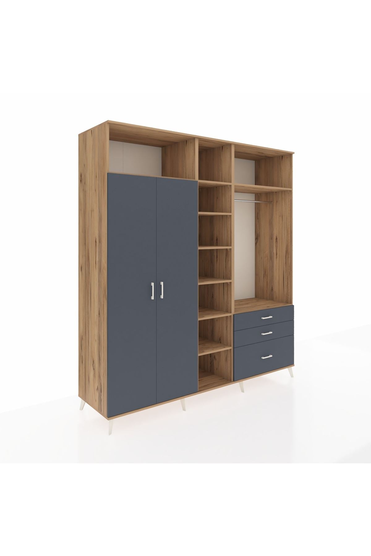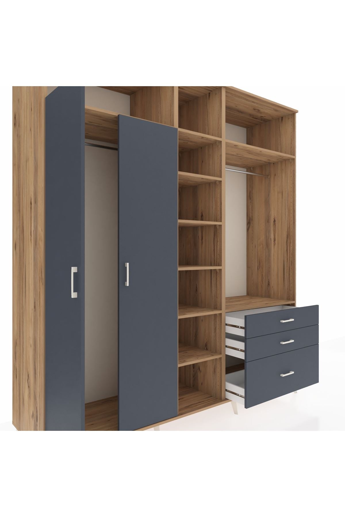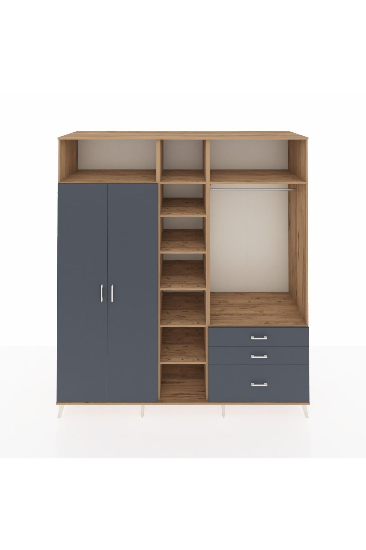 Kronos Dolap 9 Raflı 3 Çekmeceli 2 Askılı 220x59x243 Çam-Antrasit/Antrasit