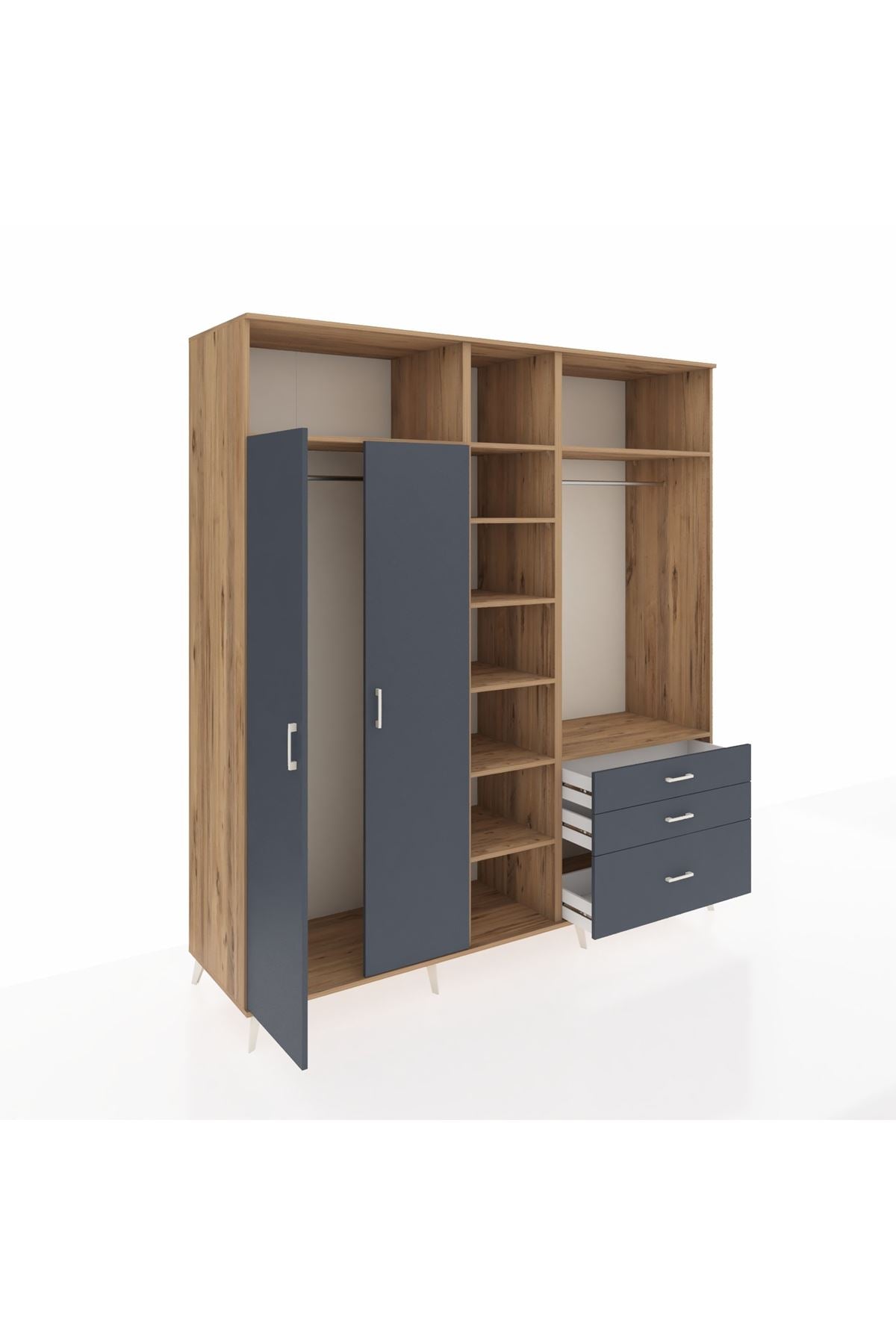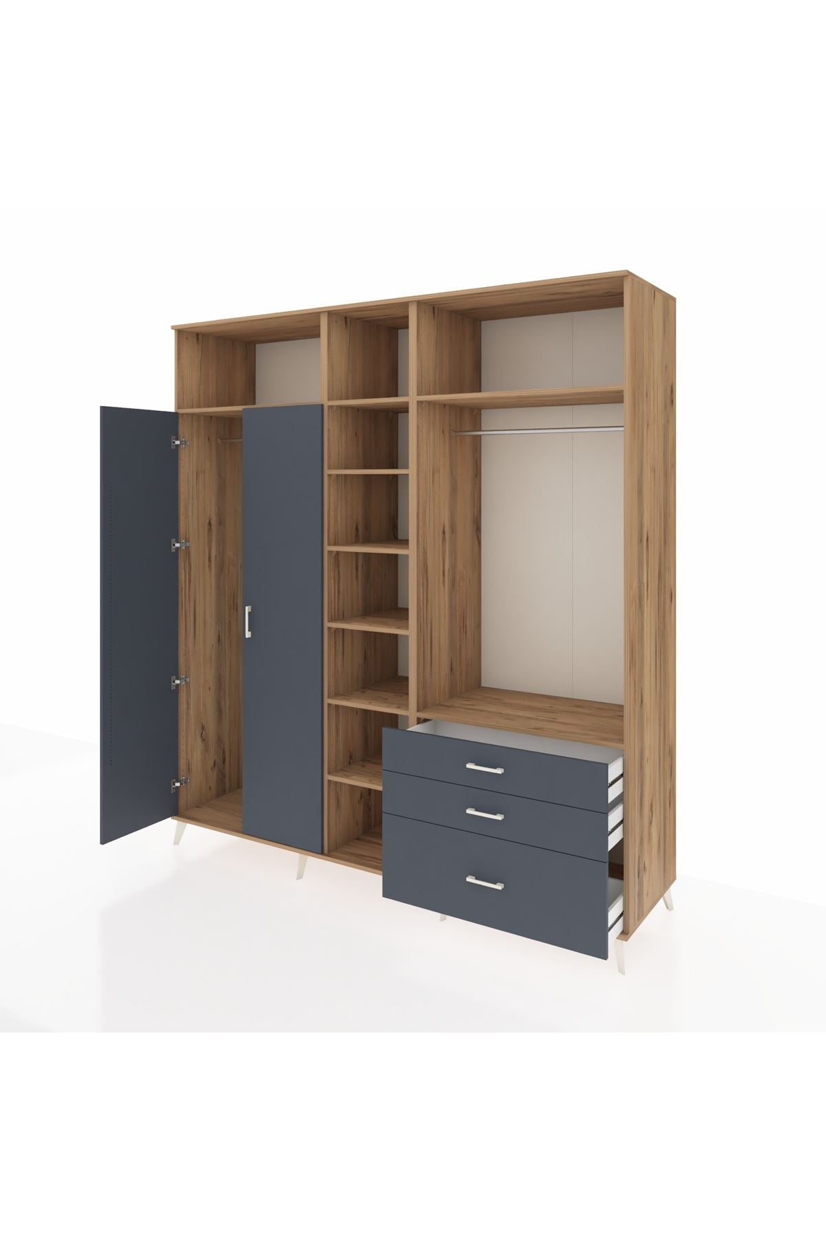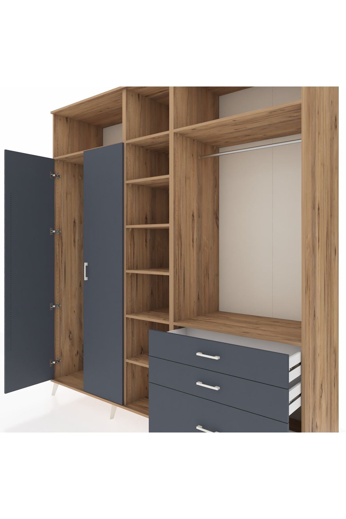 Kronos Dolap 9 Raflı 3 Çekmeceli 2 Askılı 220x59x243 Çam-Antrasit/Antrasit