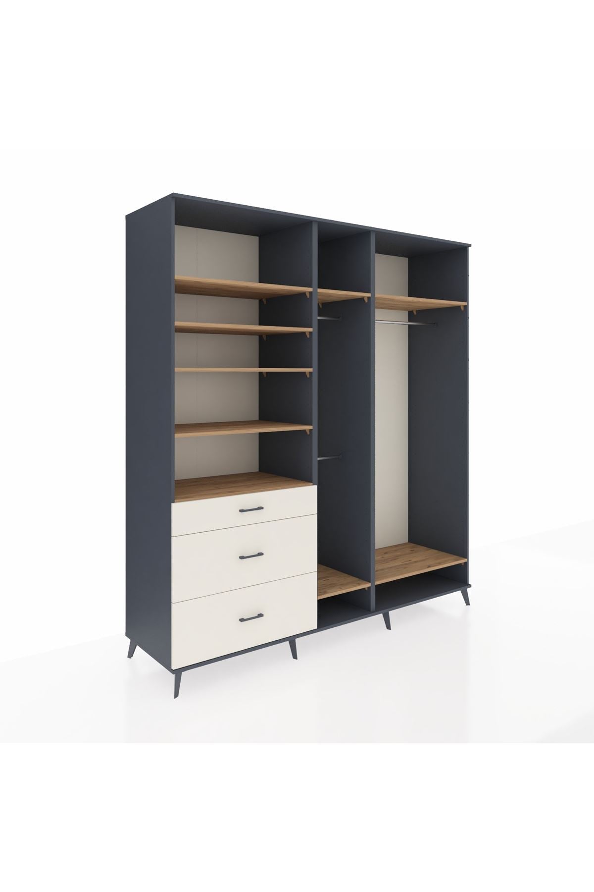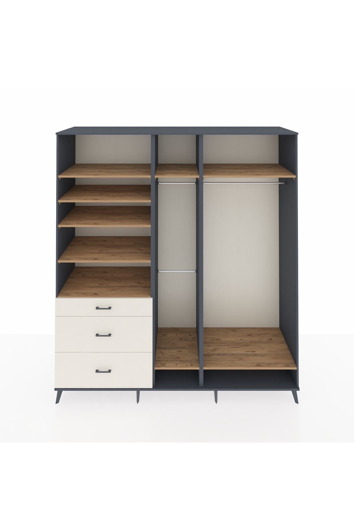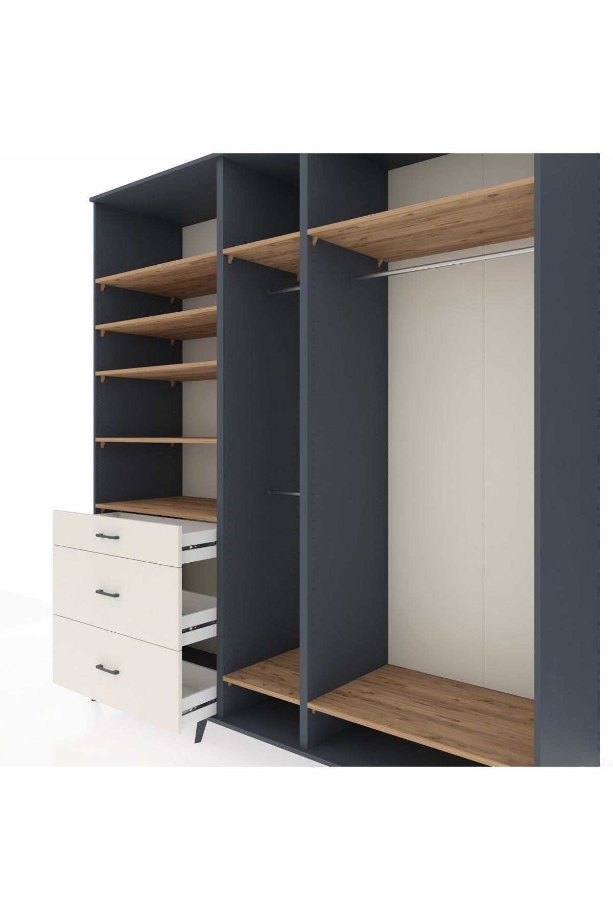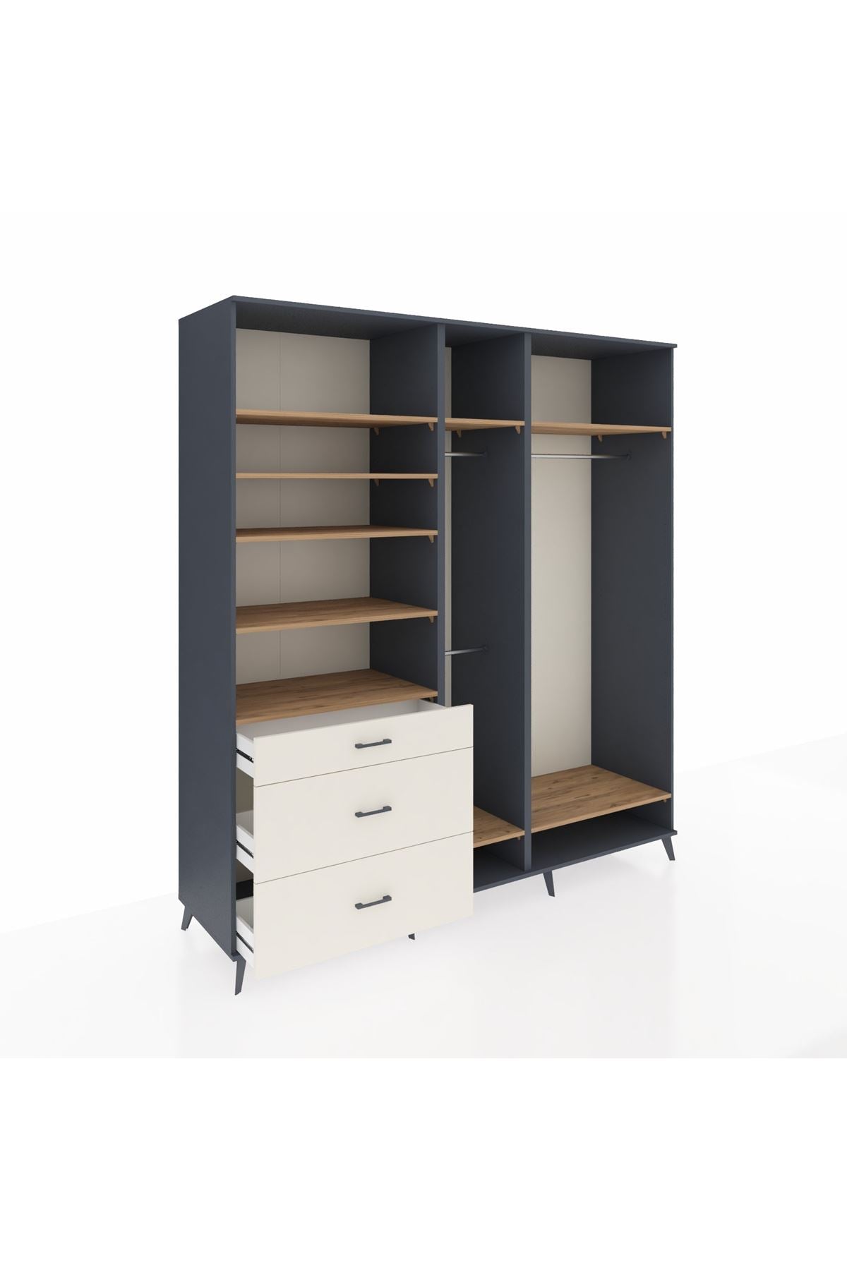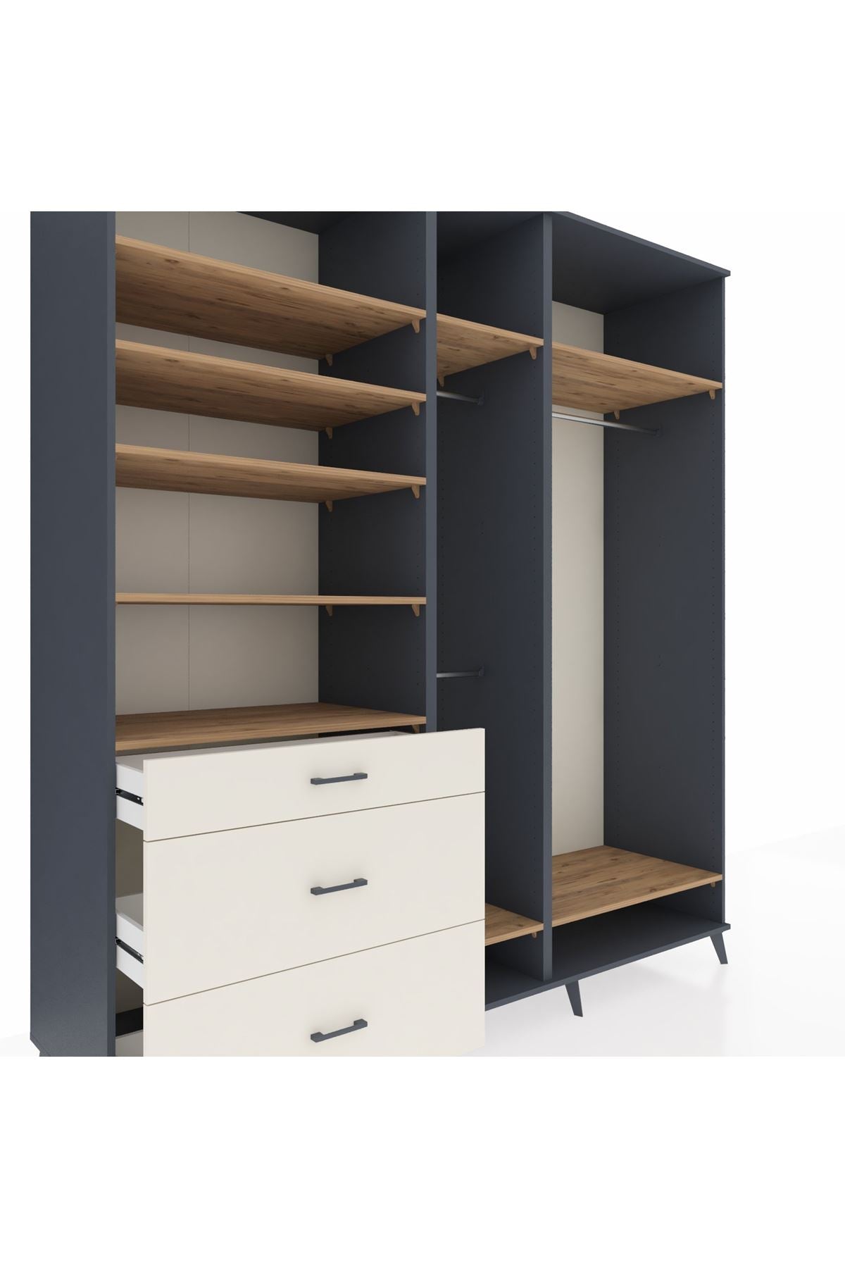 Kronos Dolap 9 Raflı 3 Çekmeceli 3 Askılı 220x59x243 Antrasit-Çam/Aytaşı