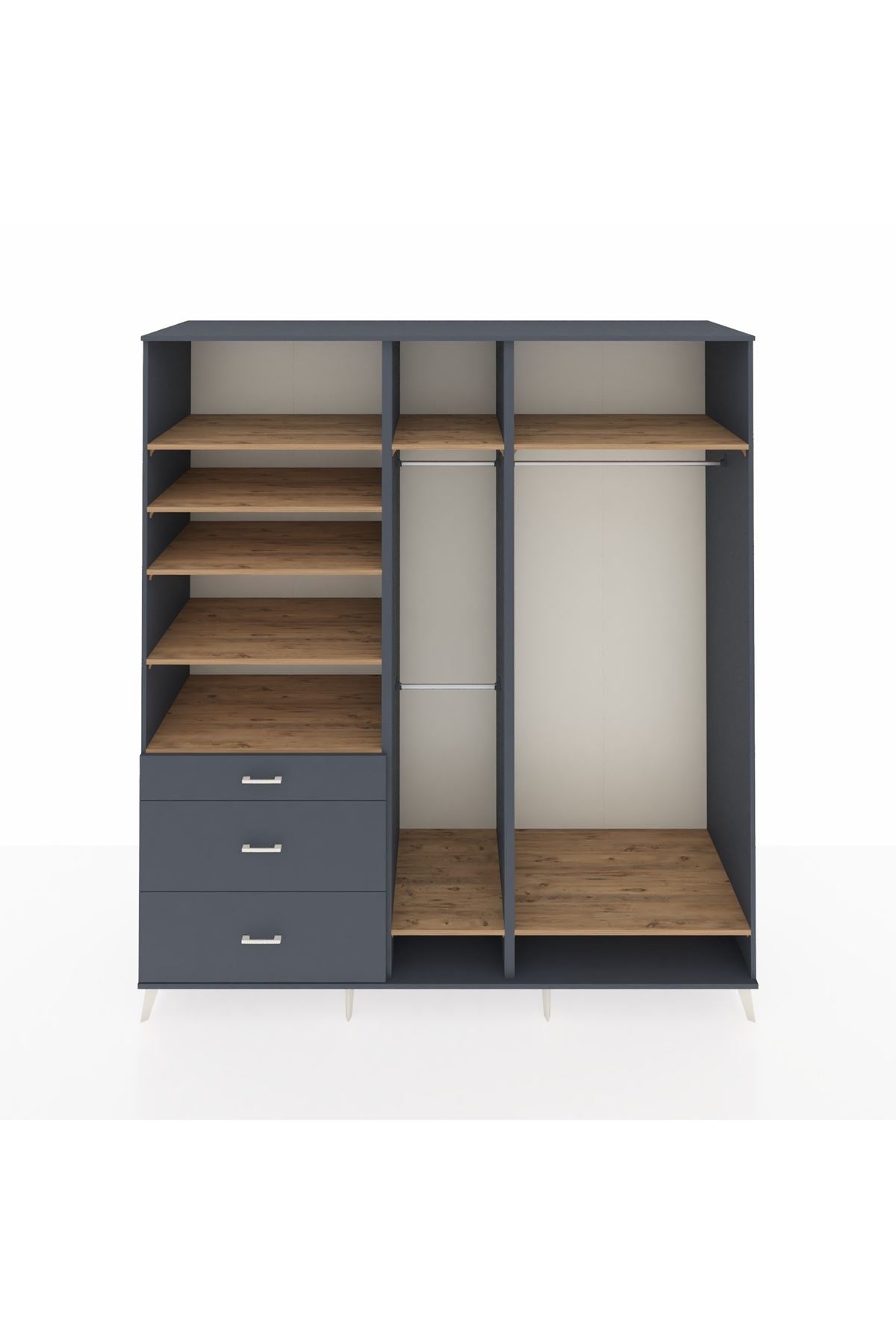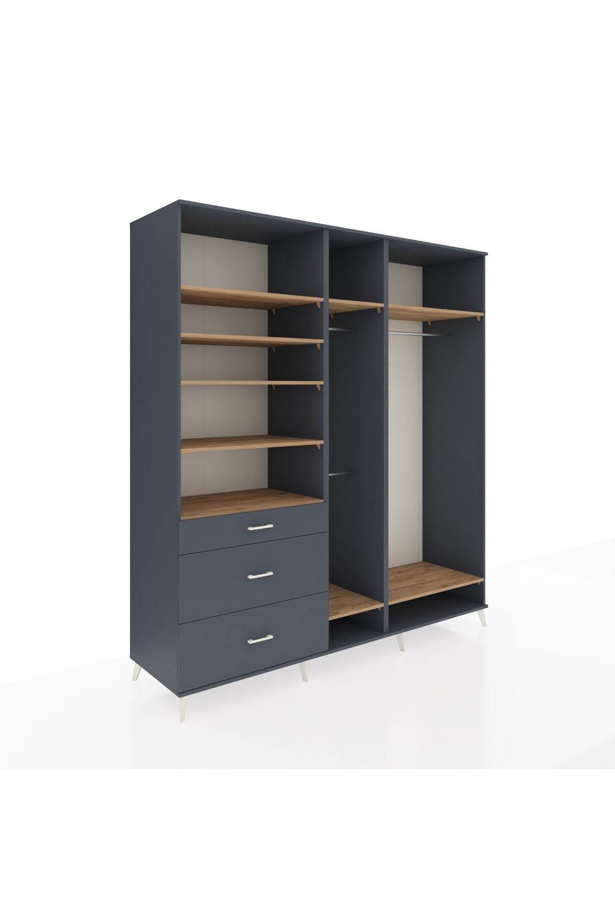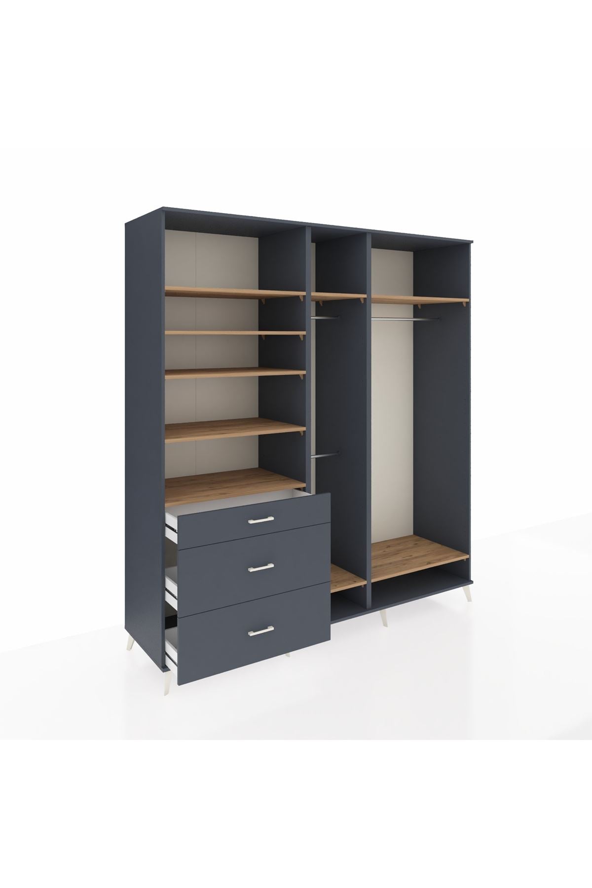 Kronos Dolap 9 Raflı 3 Çekmeceli 3 Askılı 220x59x243 Antrasit-Çam/Antrasit