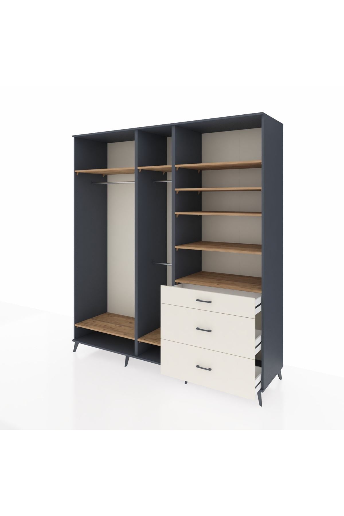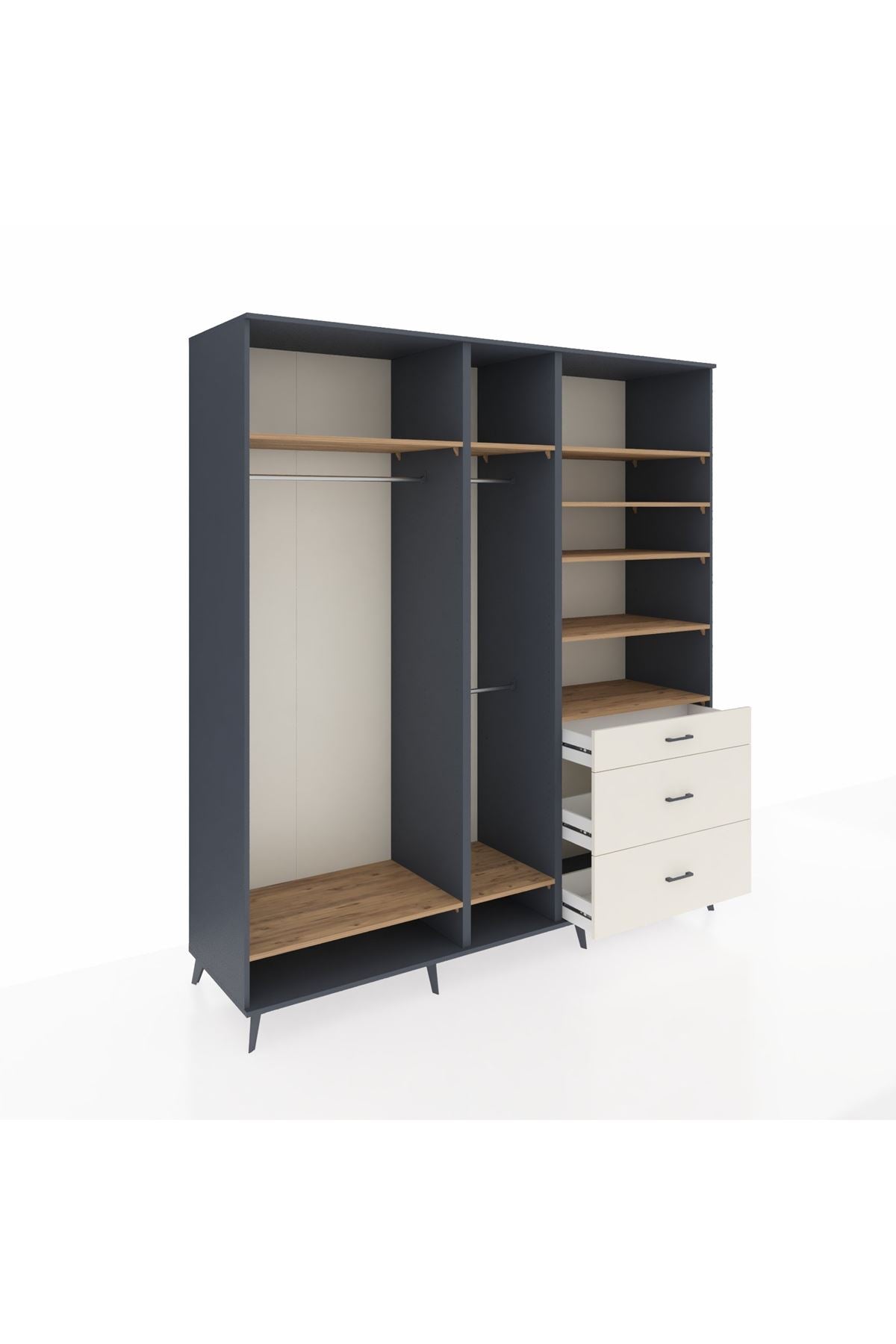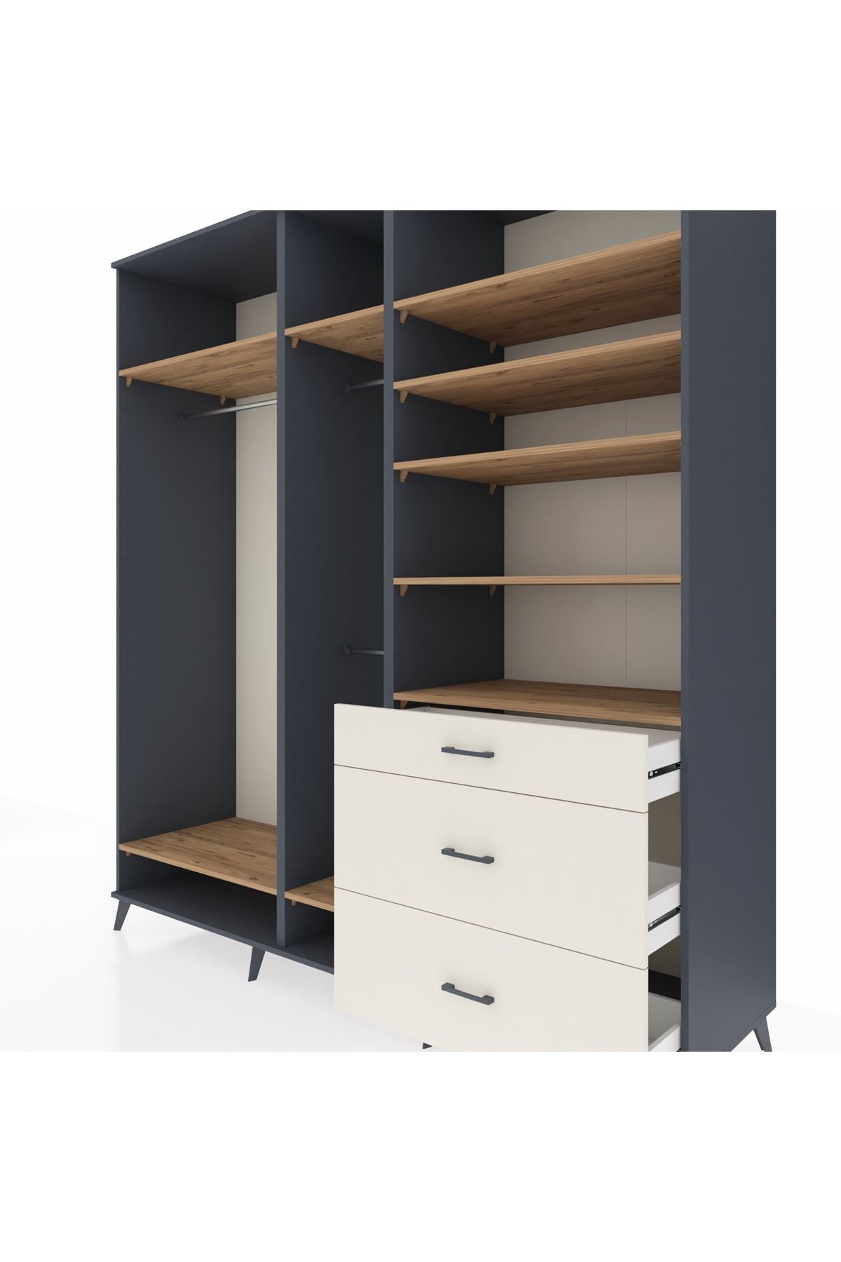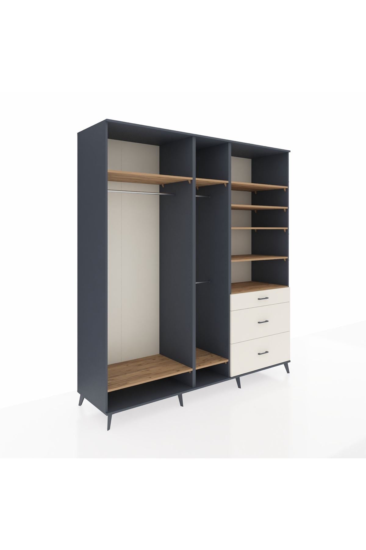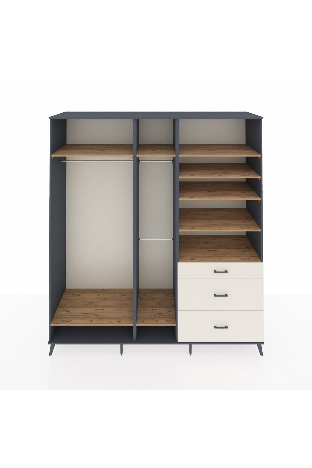 Kronos Dolap 9 Raflı 3 Çekmeceli 3 Askılı 220x59x243 Antrasit-Çam/Aytaşı