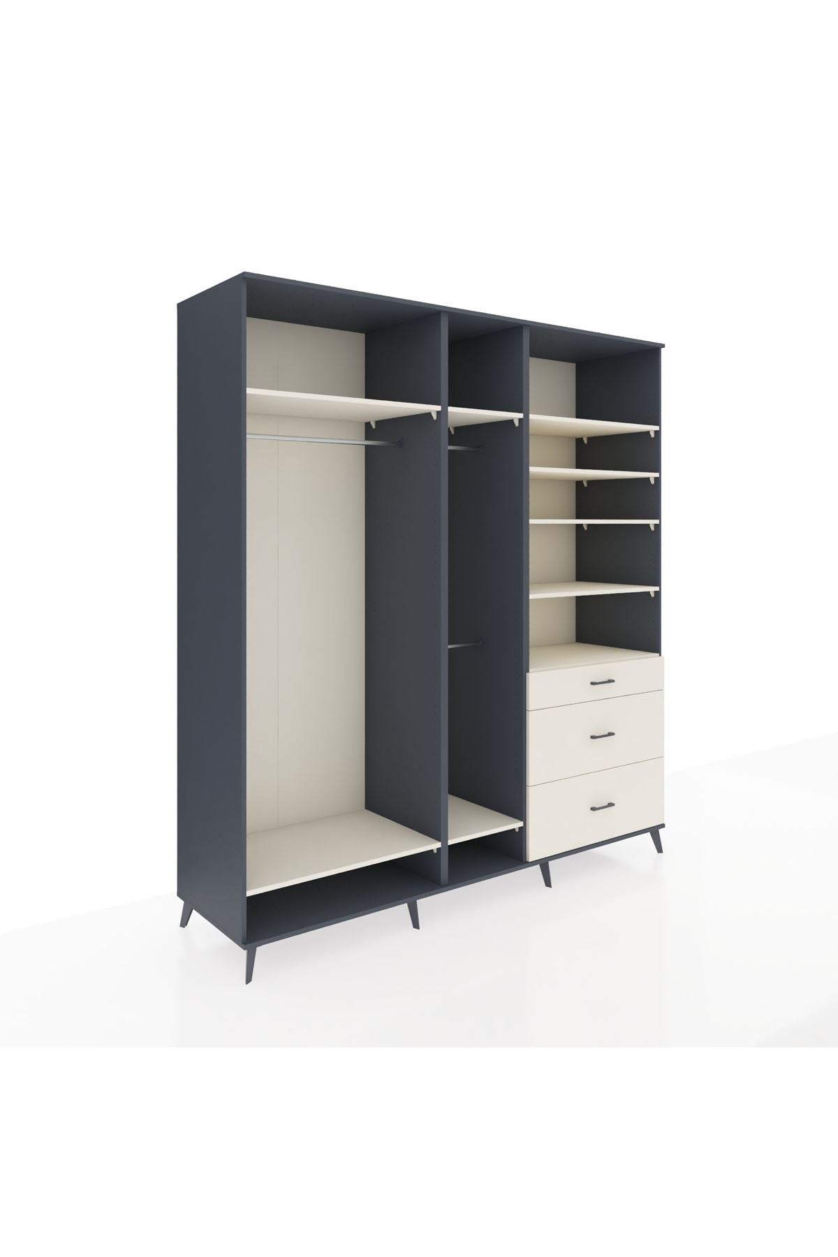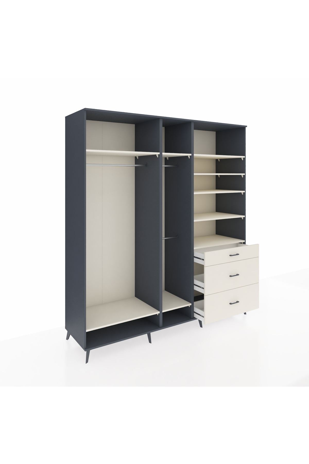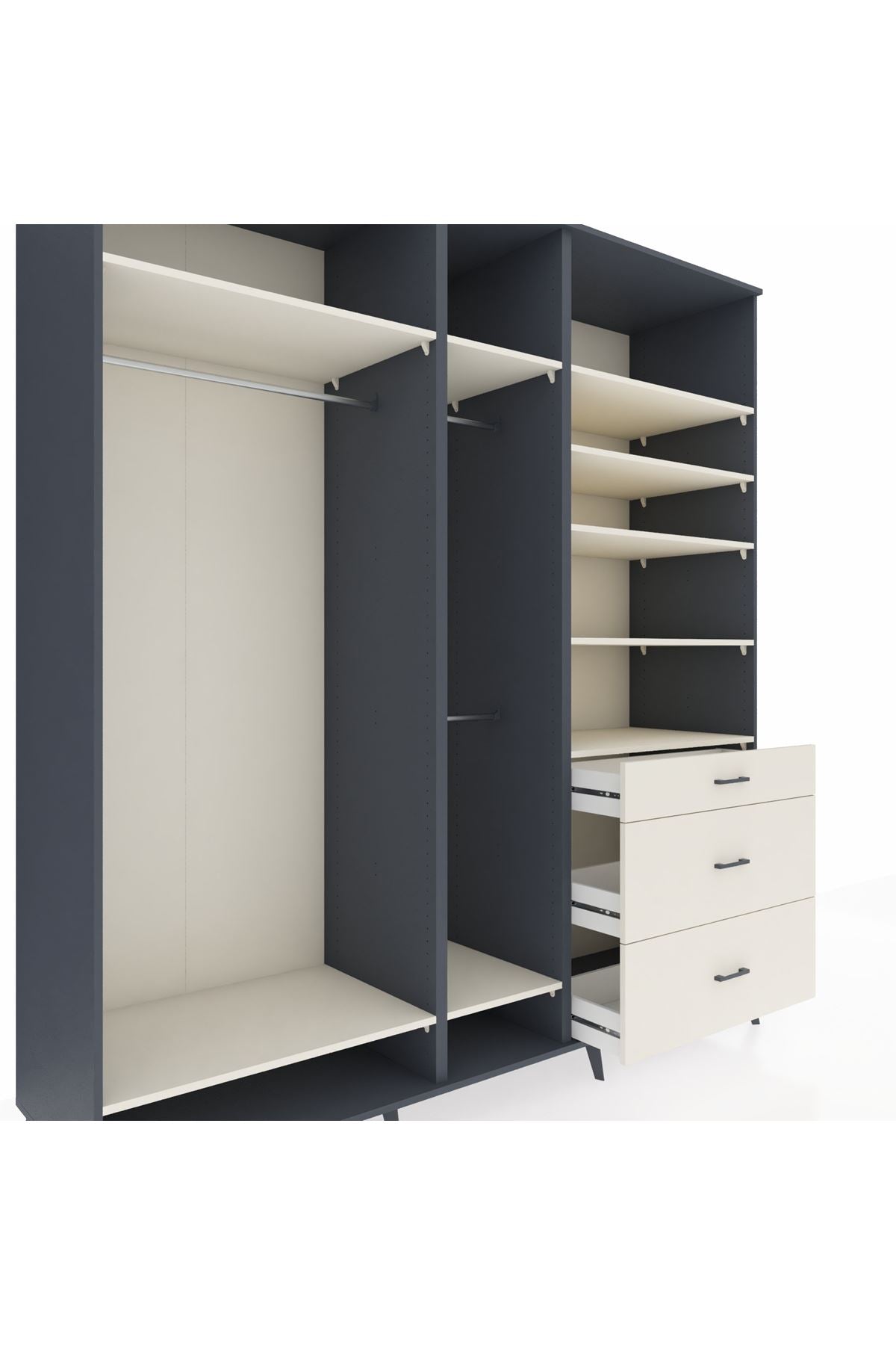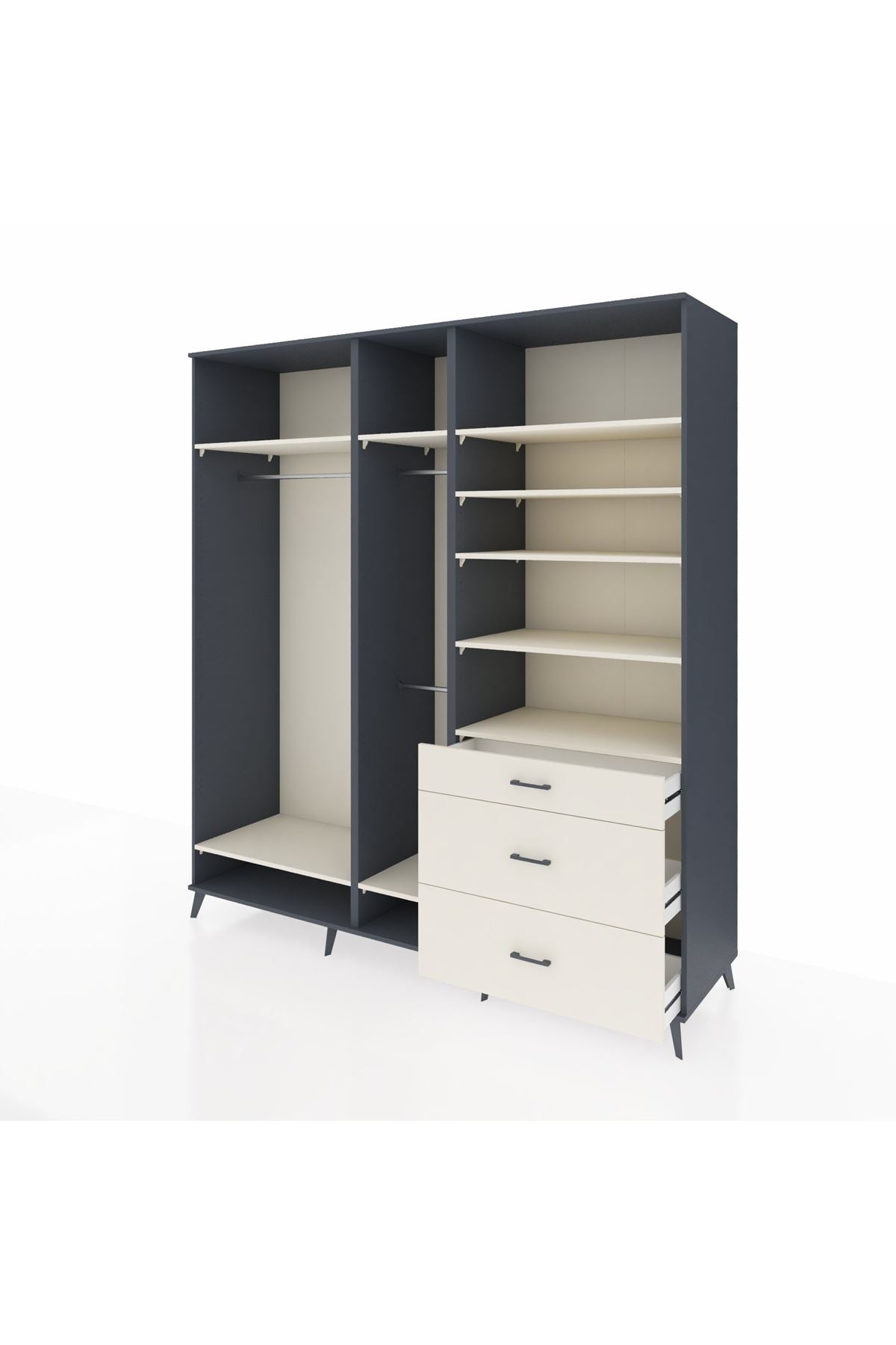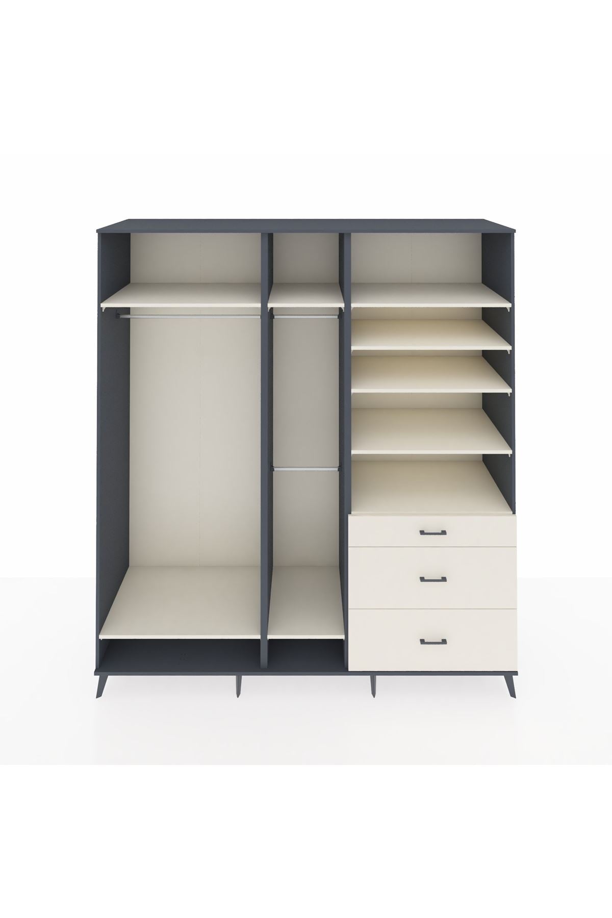 Kronos Dolap 9 Raflı 3 Çekmeceli 3 Askılı 220x59x243 Antrasit-Aytaşı/Aytaşı