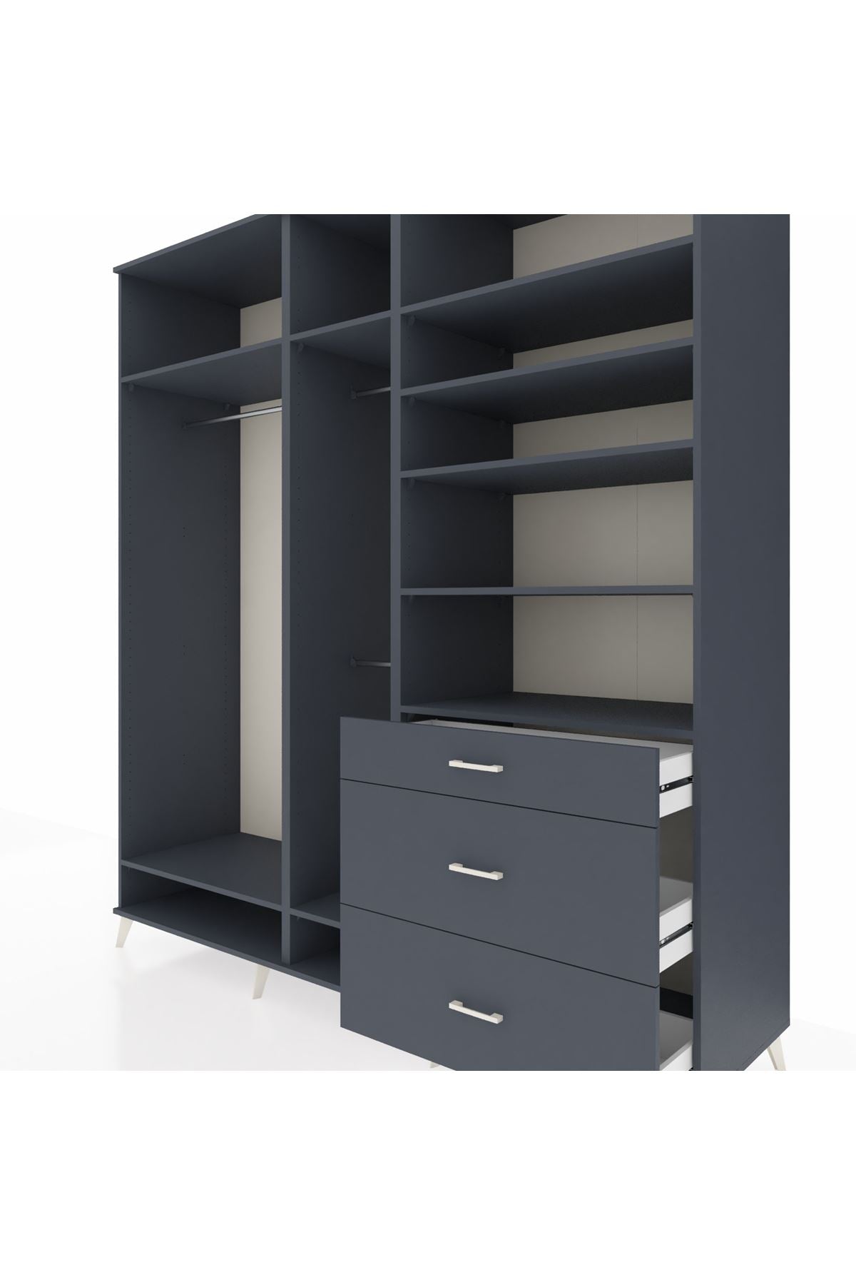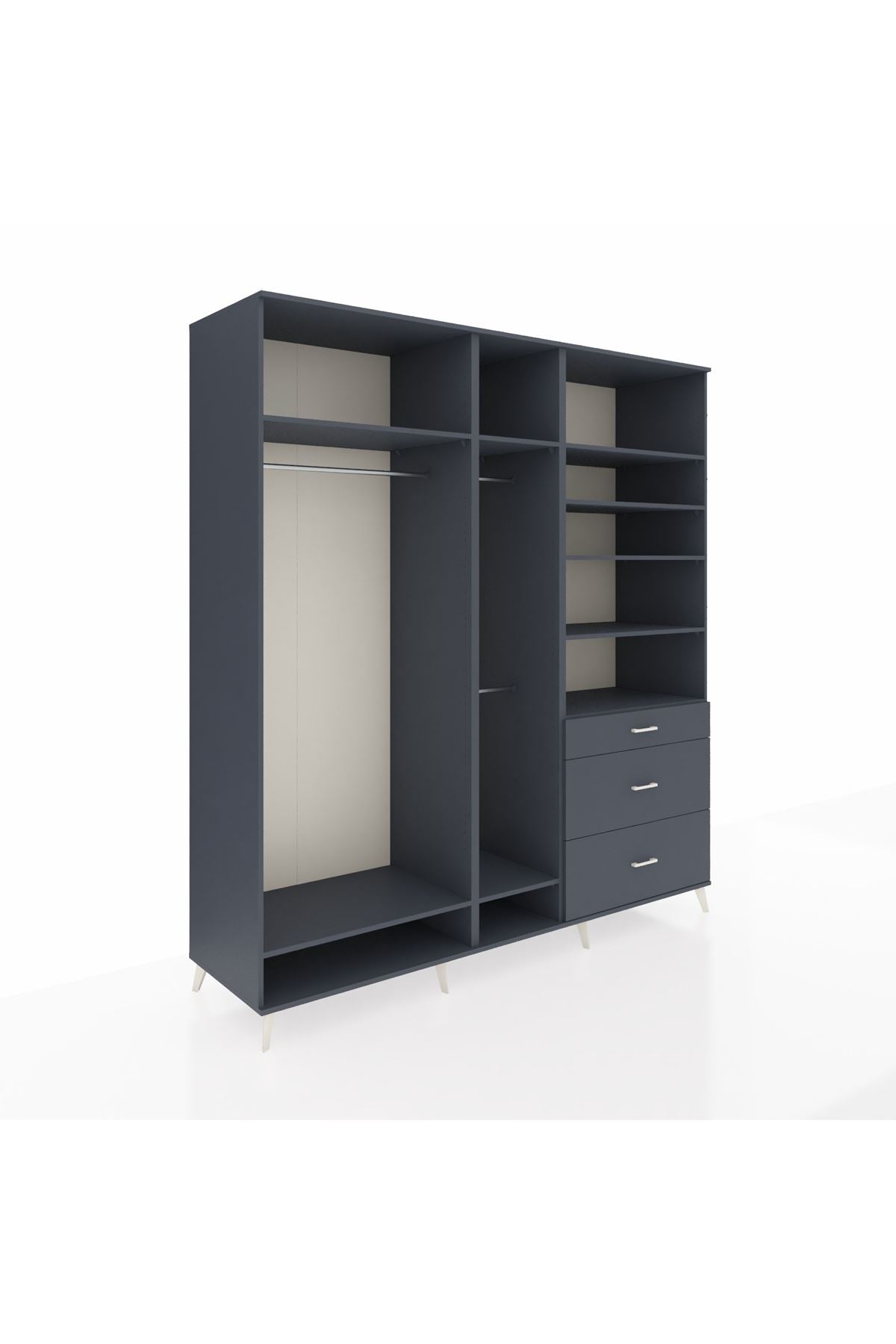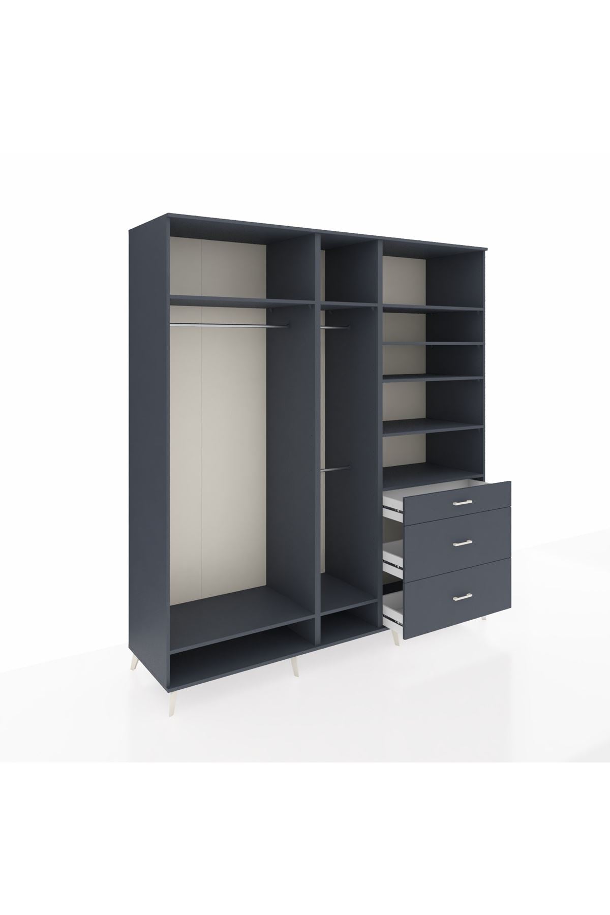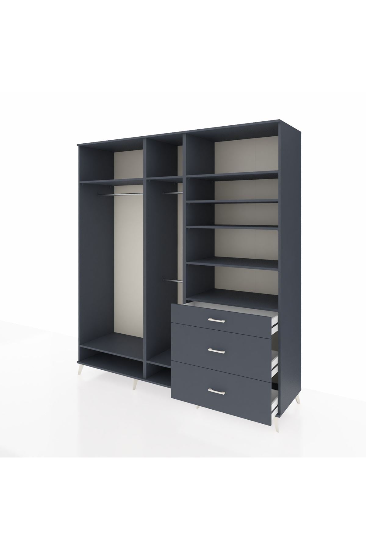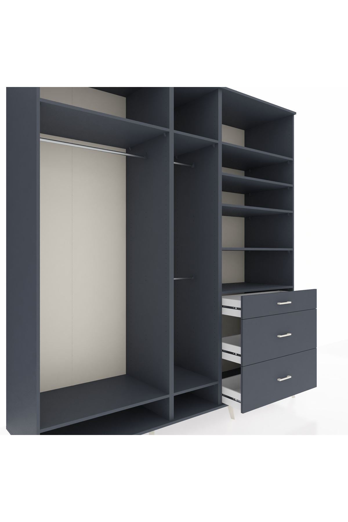 Kronos Dolap 9 Raflı 3 Çekmeceli 3 Askılı 220x59x243 Antrasit-Antrasit/Antrasit