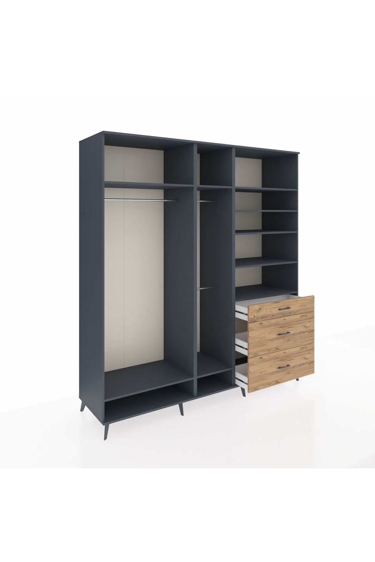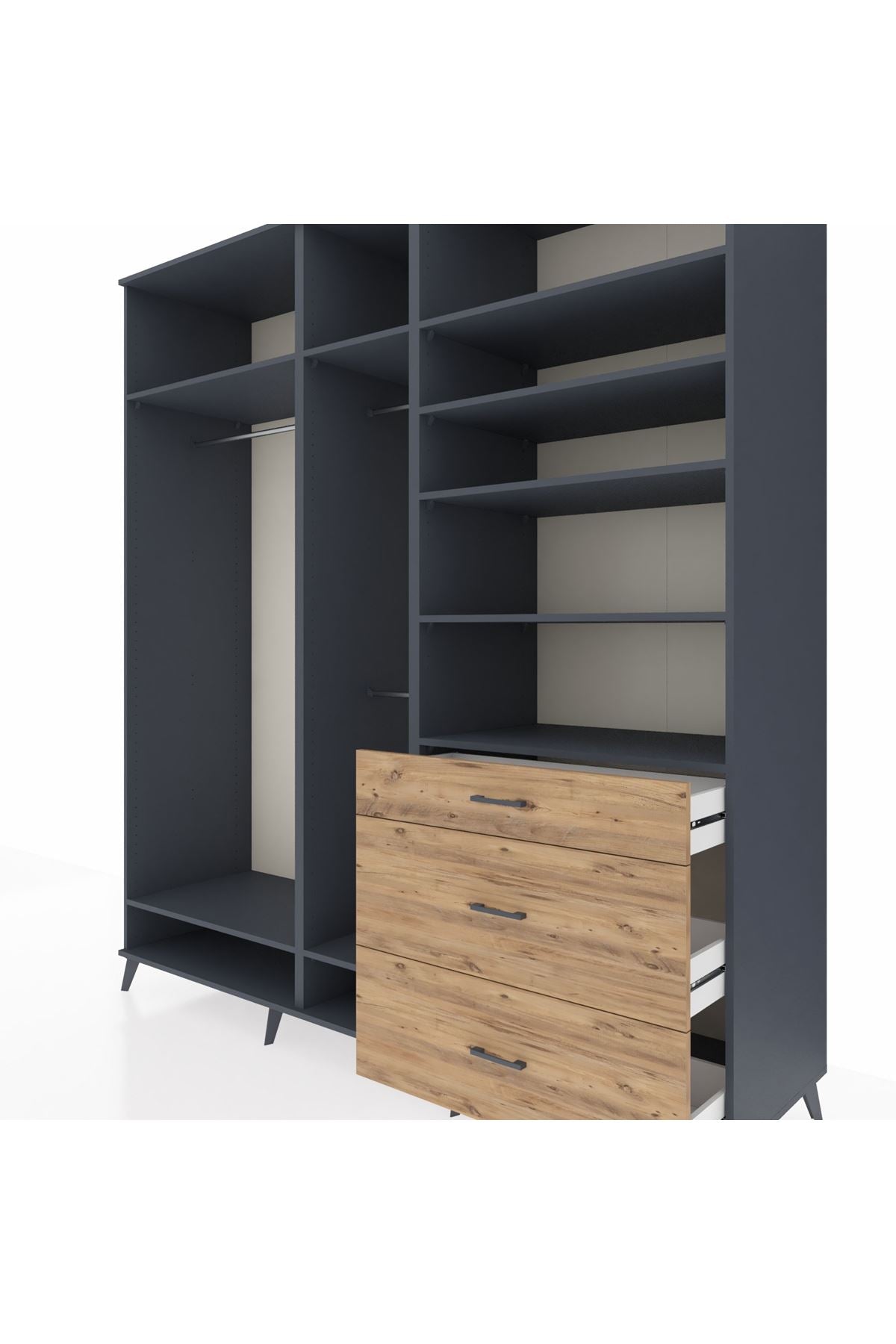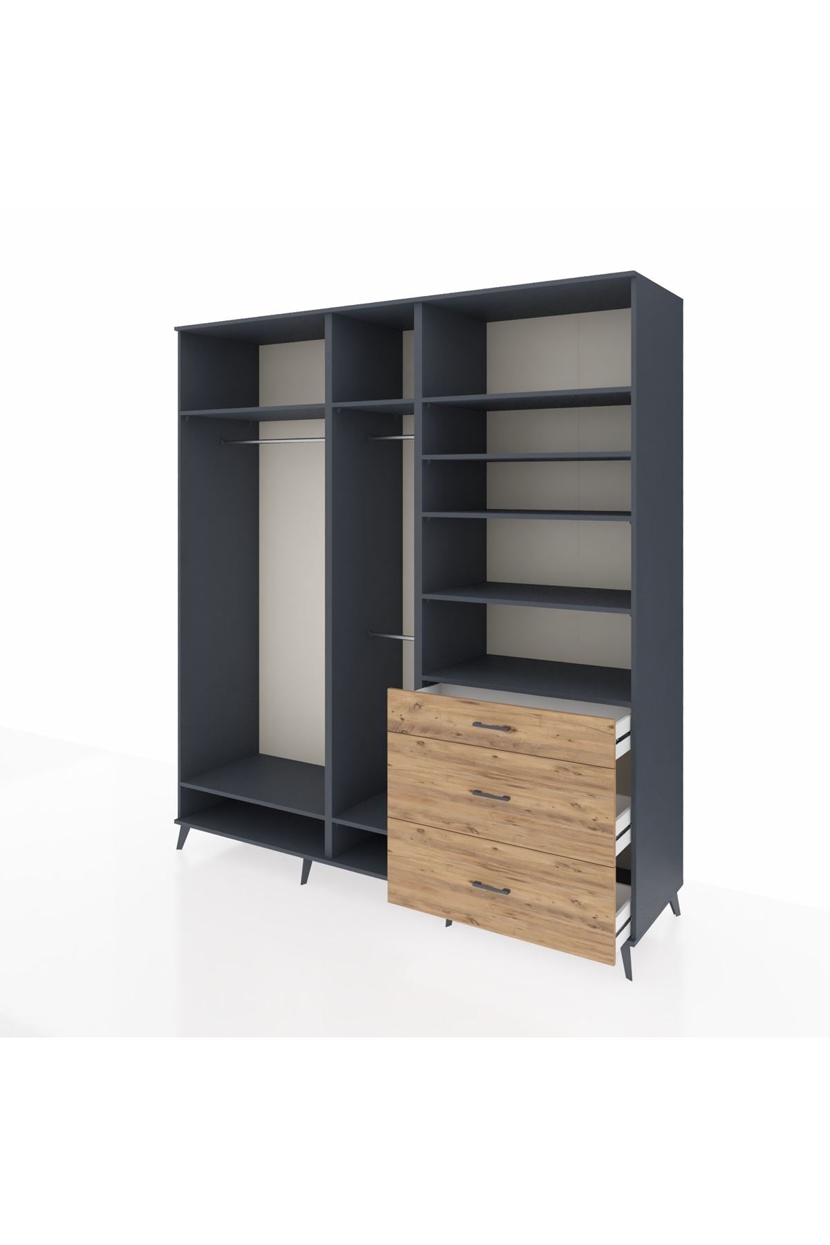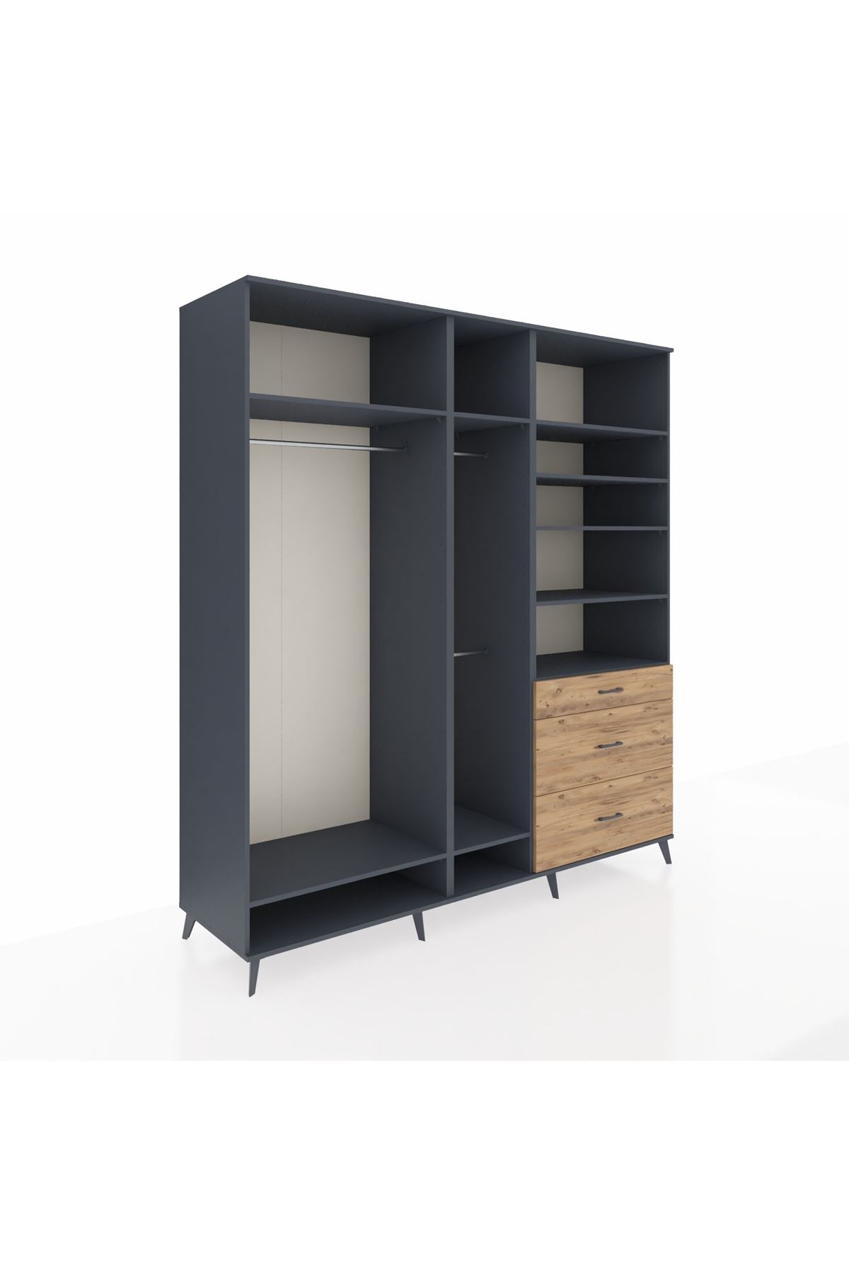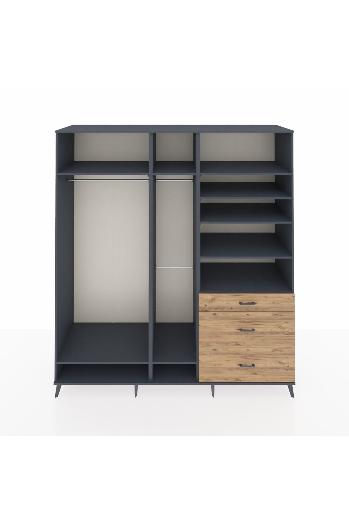 Kronos Dolap 9 Raflı 3 Çekmeceli 3 Askılı 220x59x243 Antrasit-Antrasit/Çam