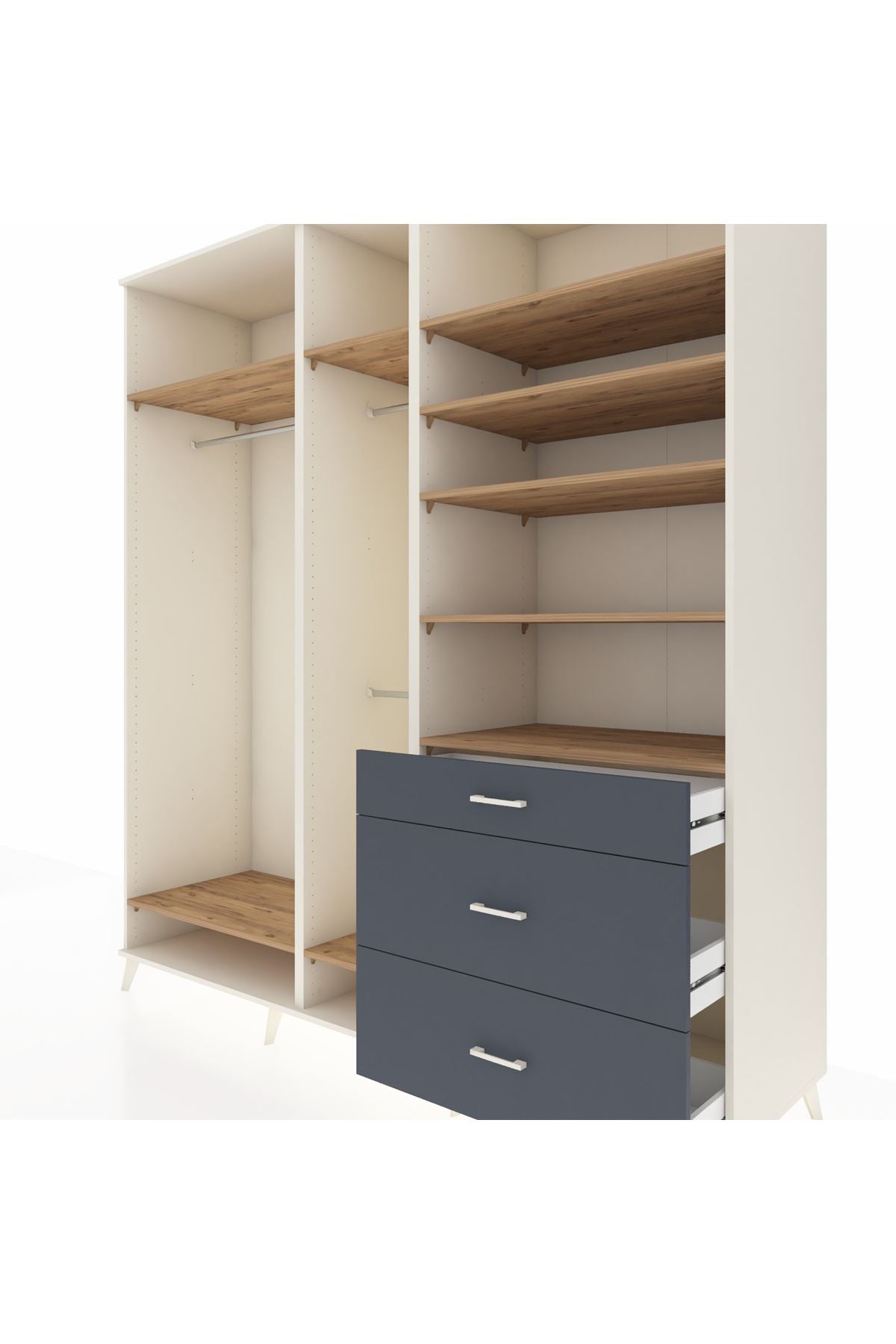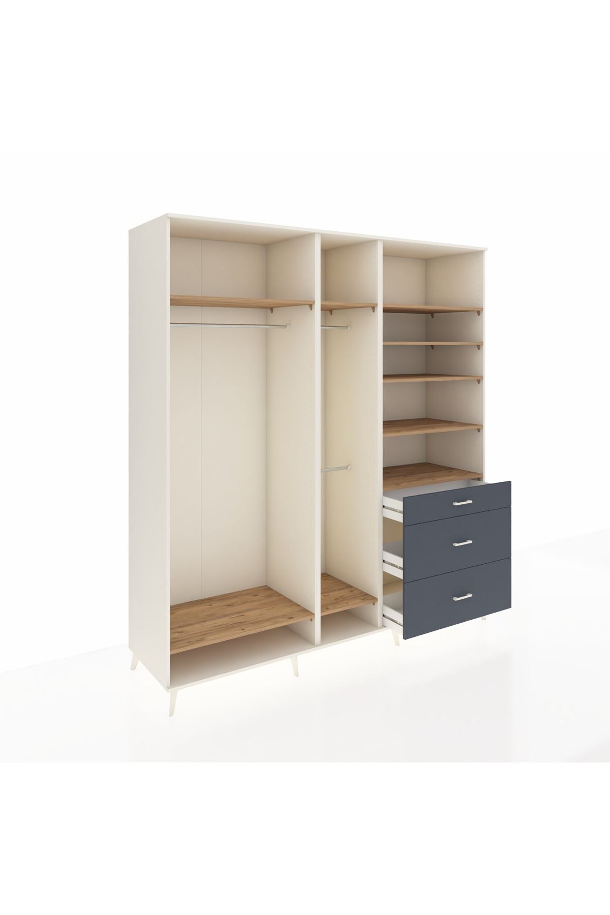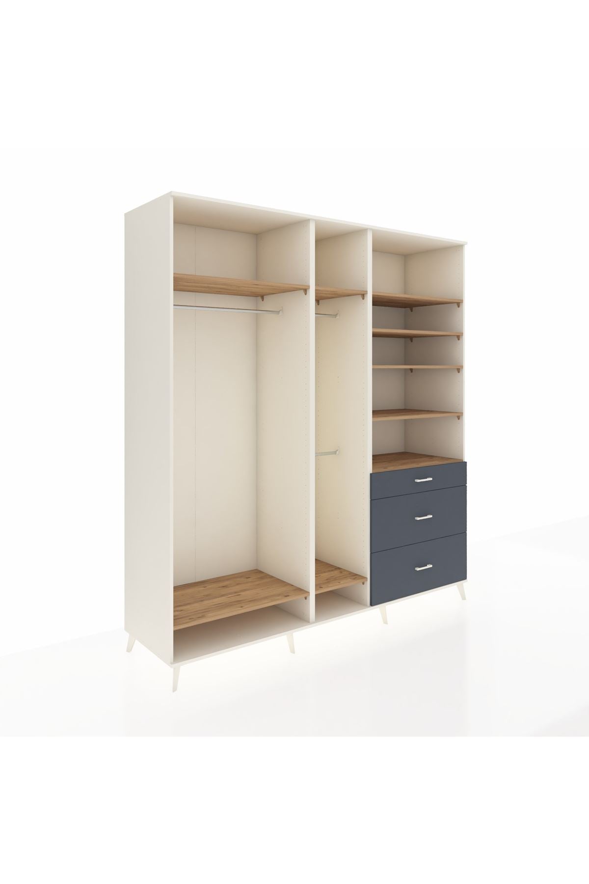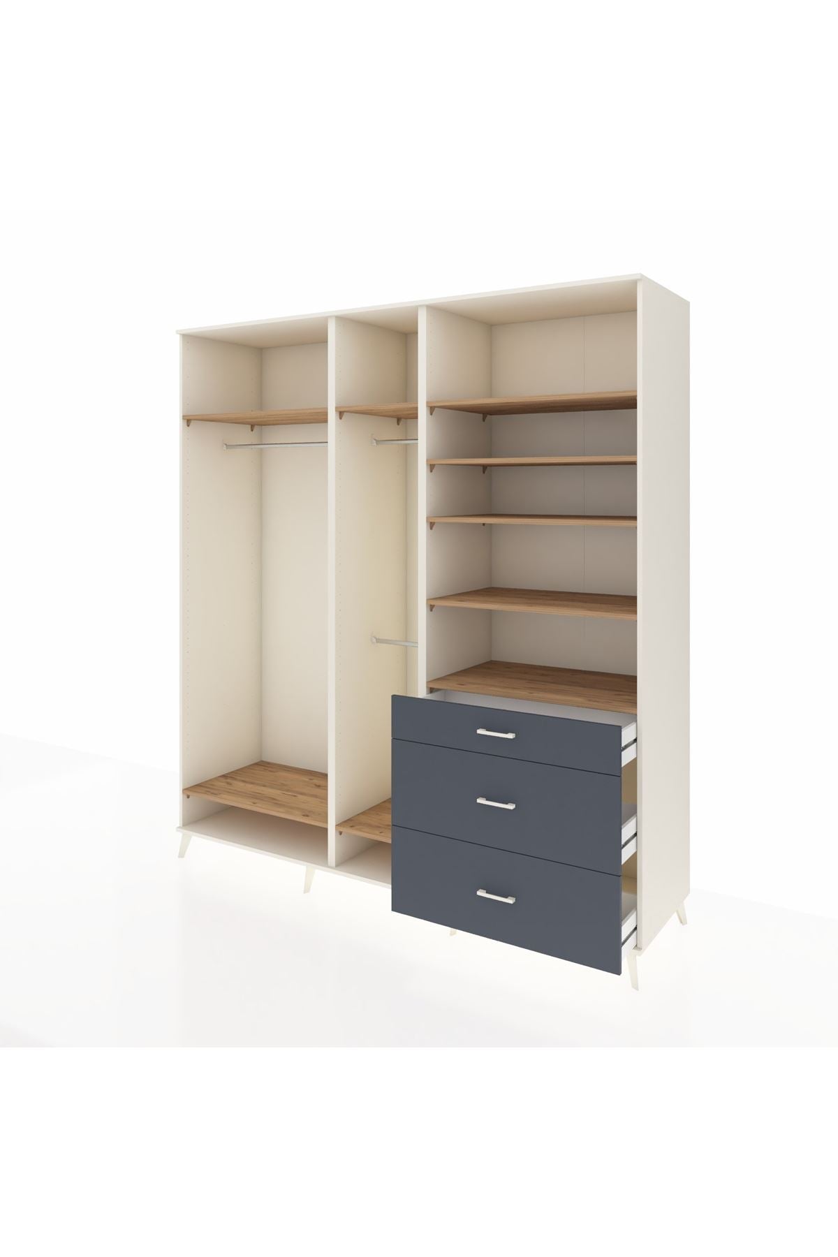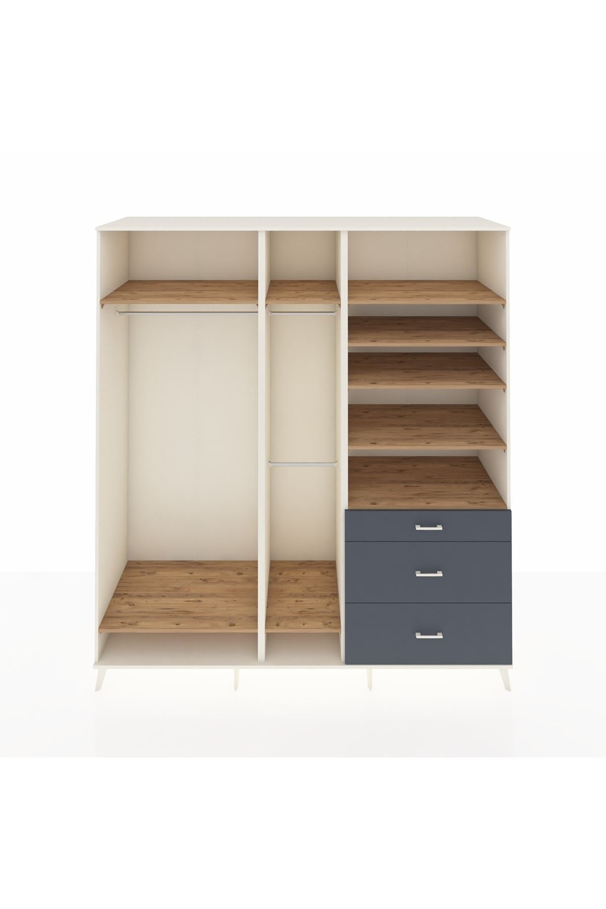 Kronos Dolap 9 Raflı 3 Çekmeceli 3 Askılı 220x59x243 Çam-Çam/Antrasit