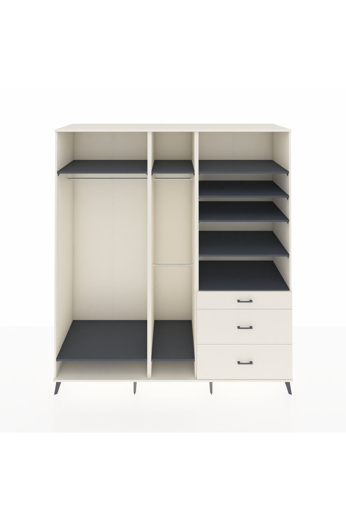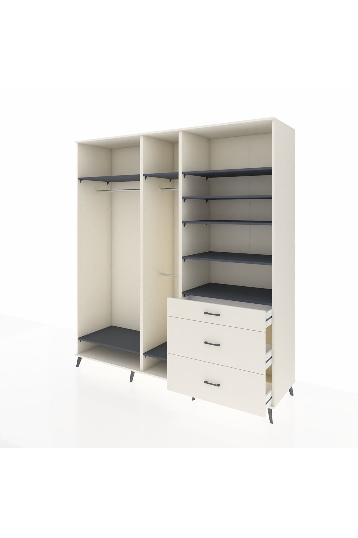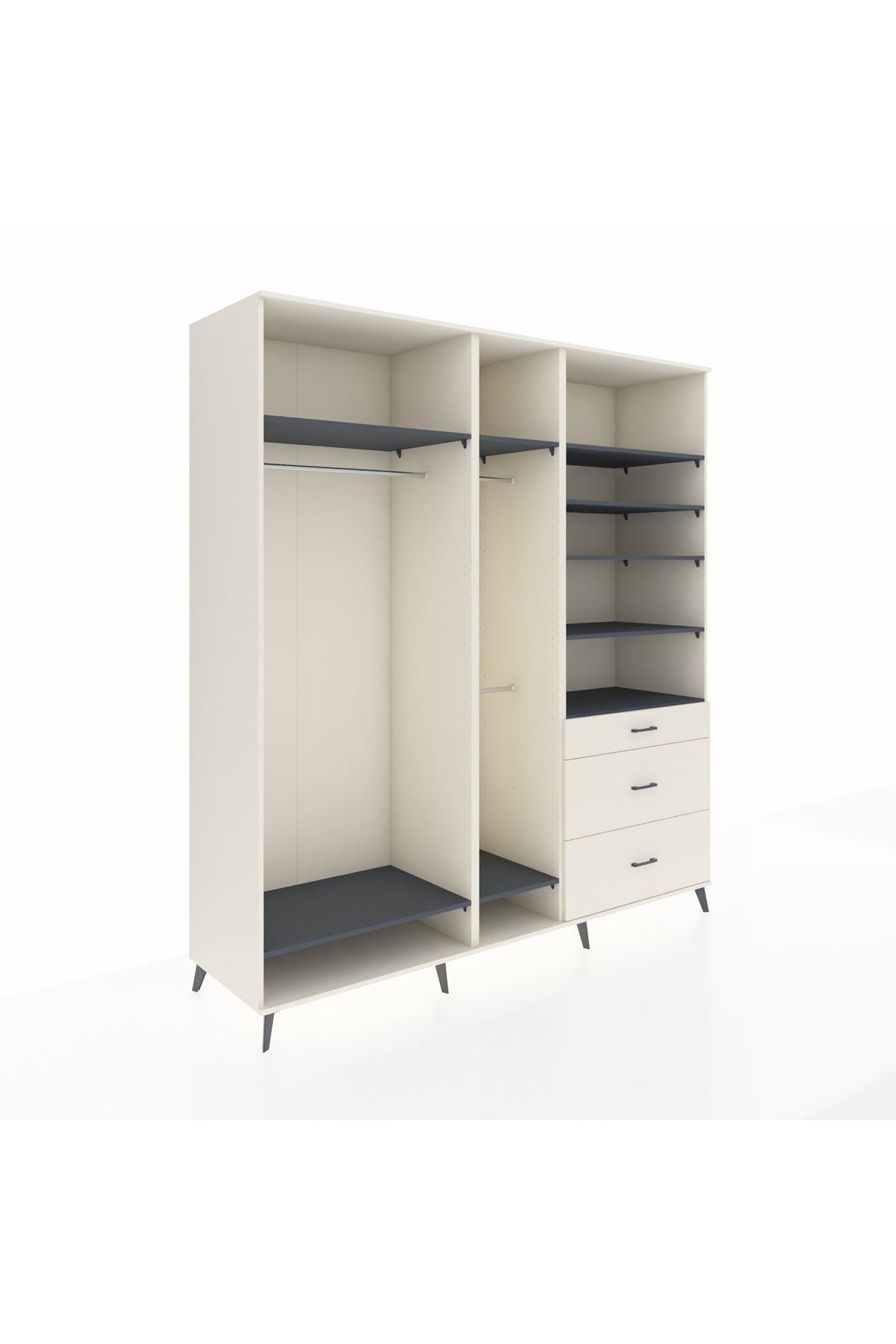 Kronos Dolap 9 Raflı 3 Çekmeceli 3 Askılı 220x59x243 Aytaşı-Antrasit/Aytaşı