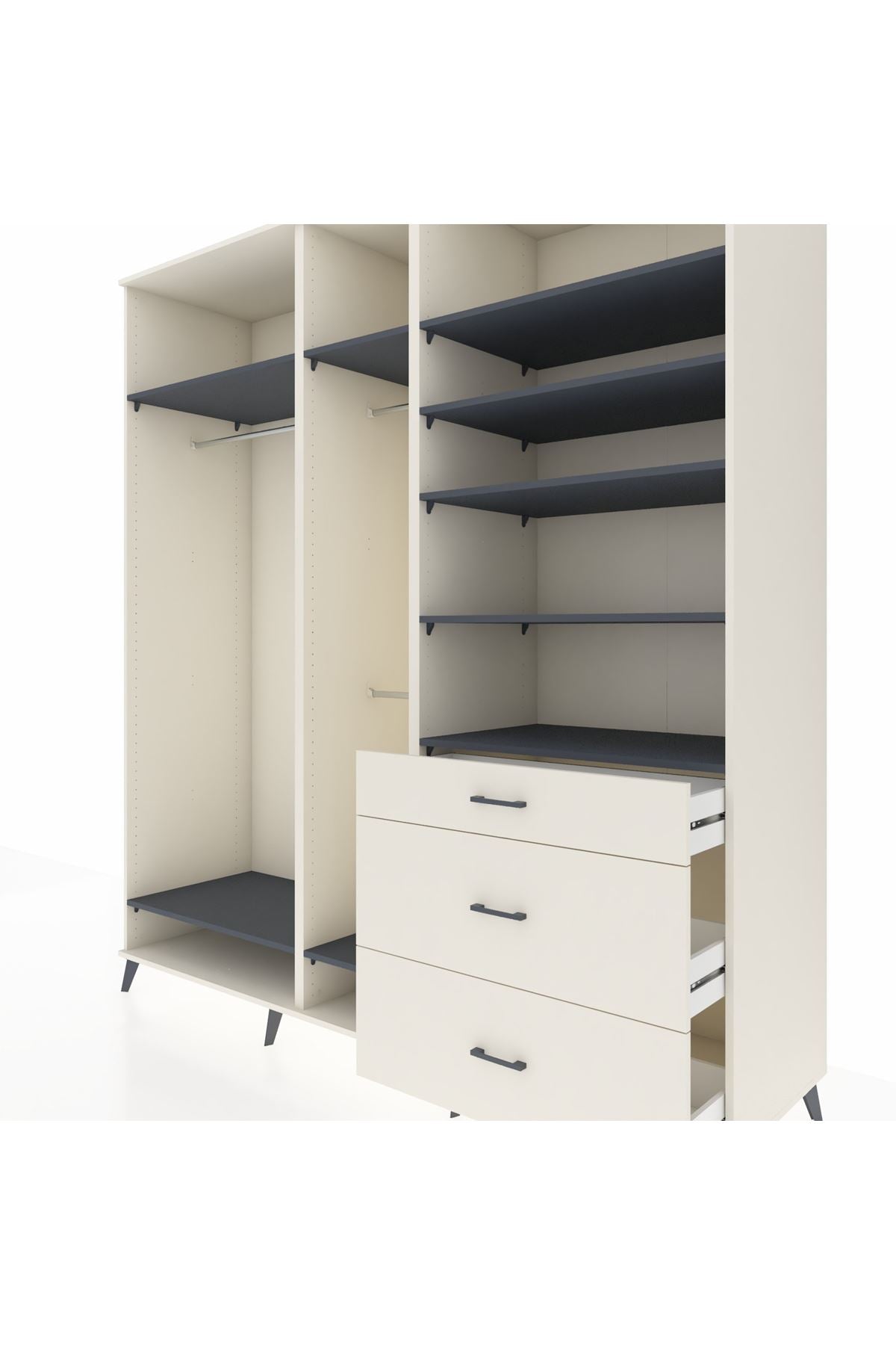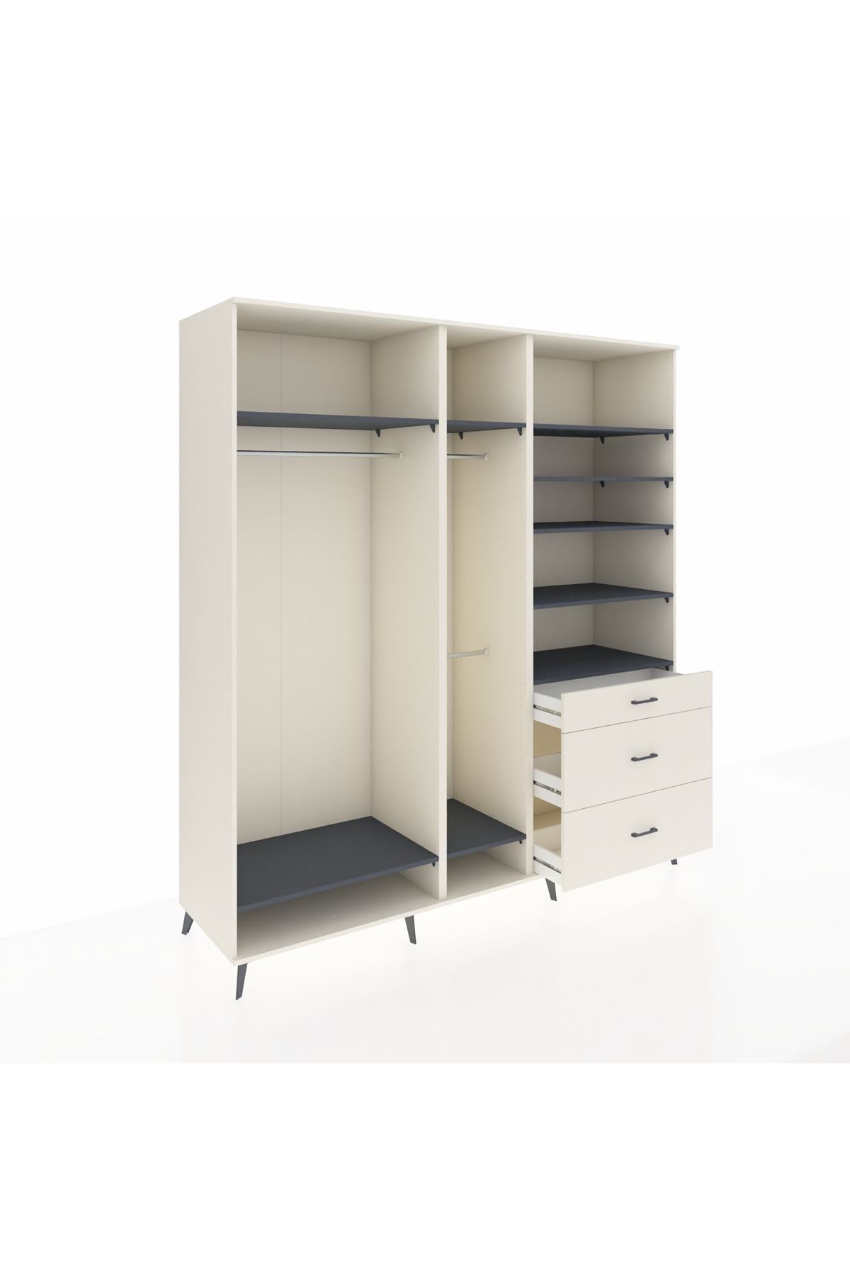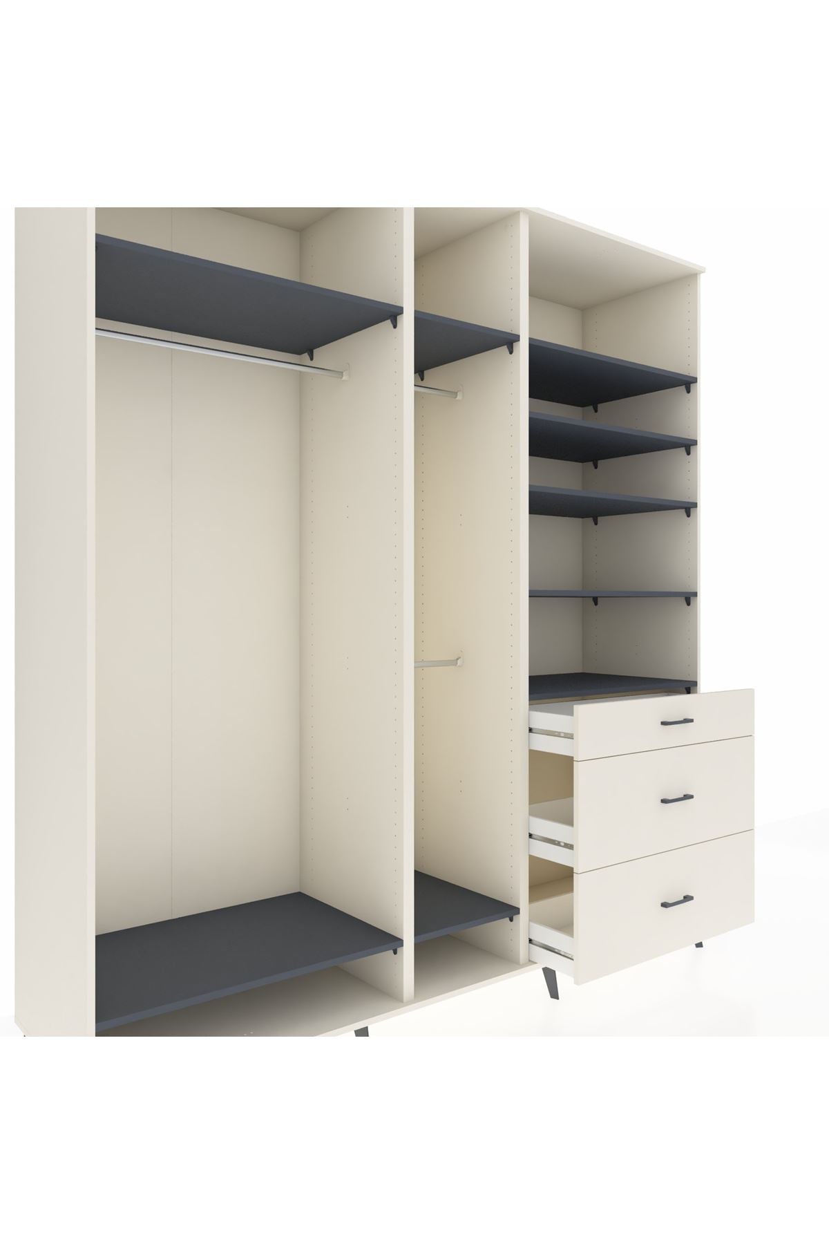 Kronos Dolap 9 Raflı 3 Çekmeceli 3 Askılı 220x59x243 Aytaşı-Antrasit/Aytaşı