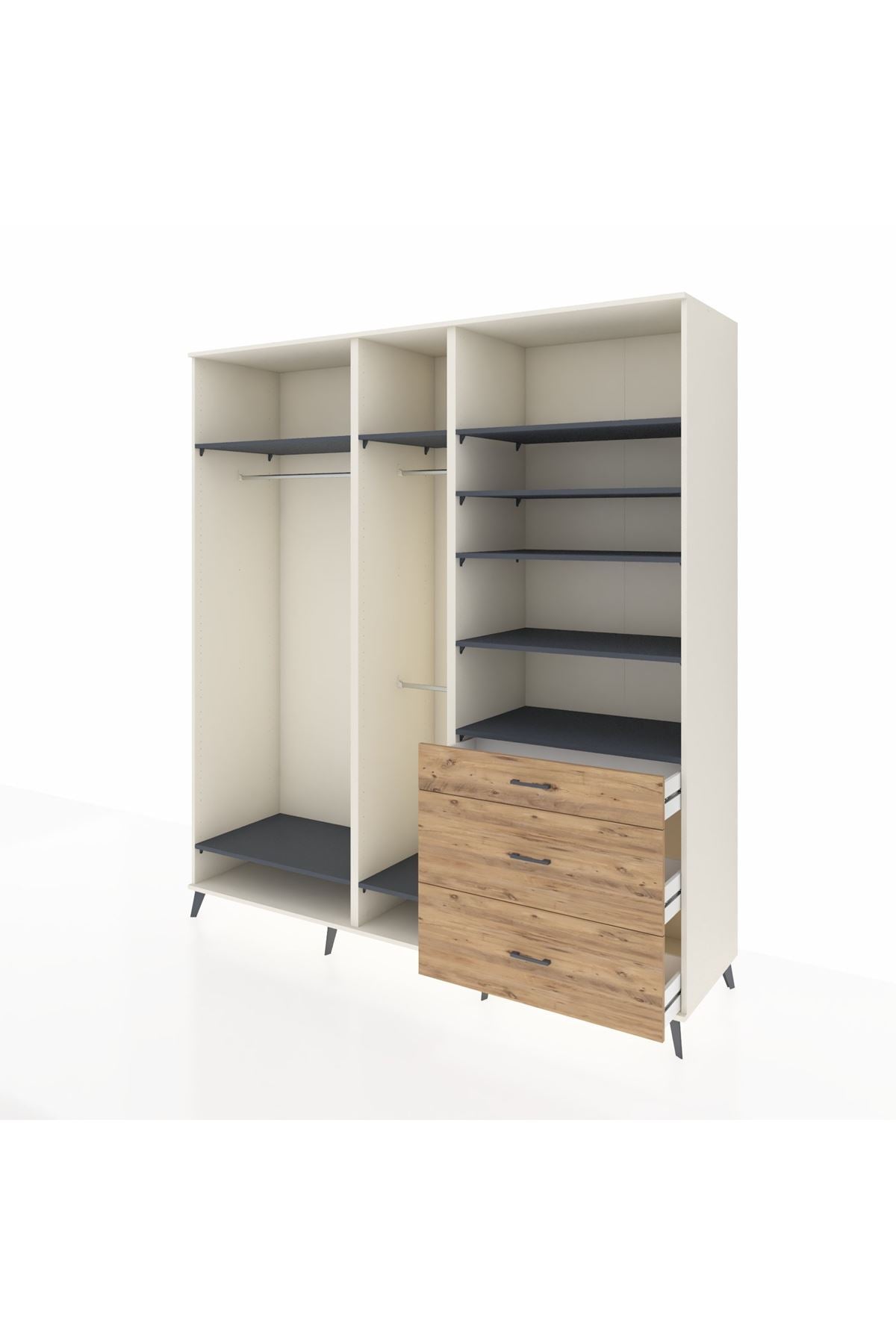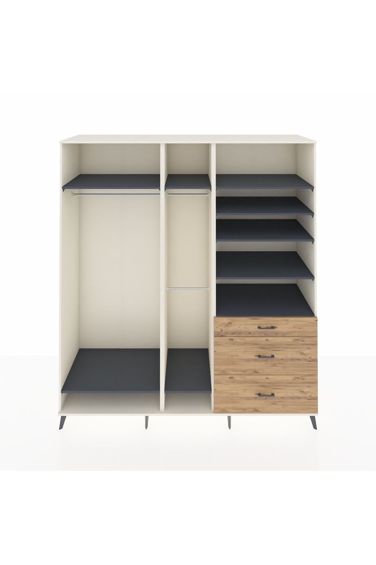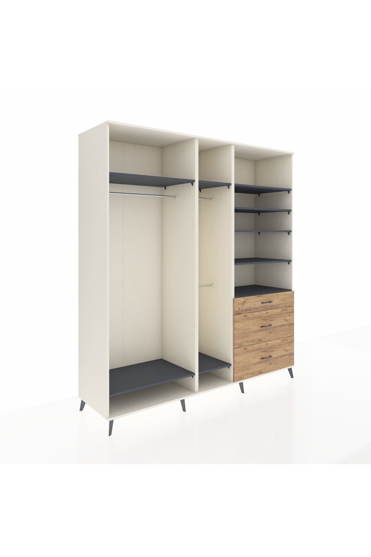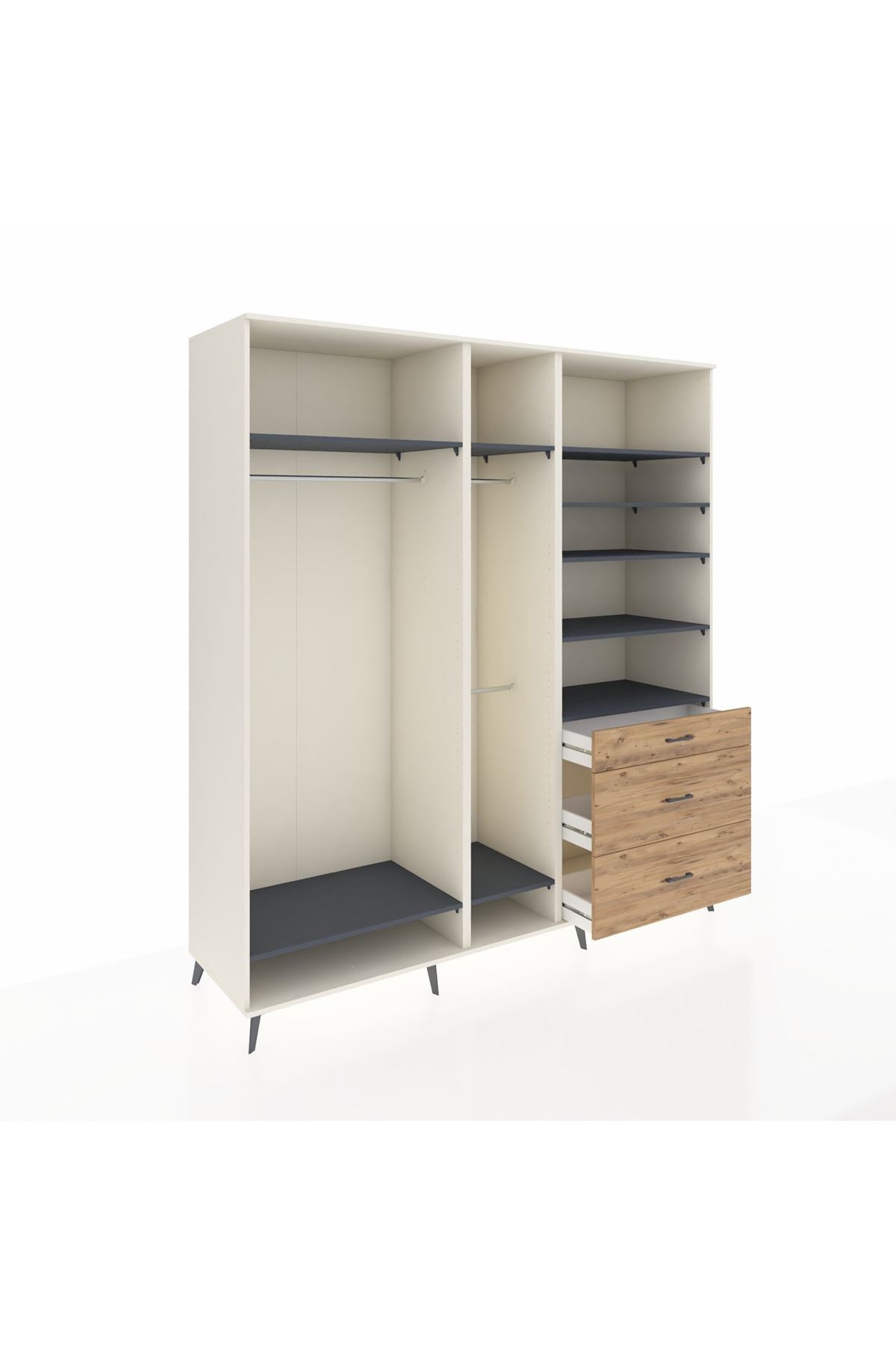 Kronos Dolap 9 Raflı 3 Çekmeceli 3 Askılı 220x59x243 Aytaşı-Antrasit/Çam