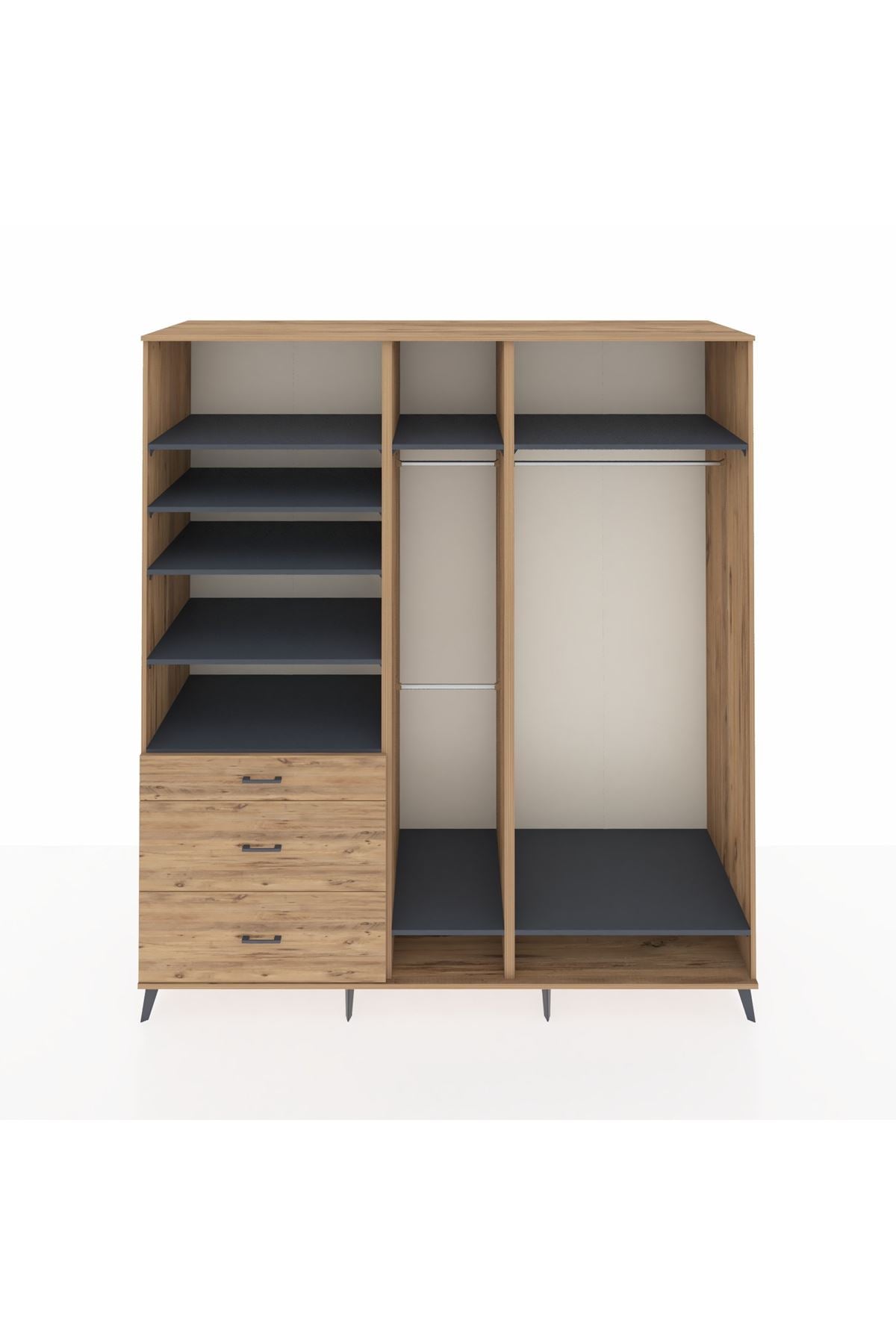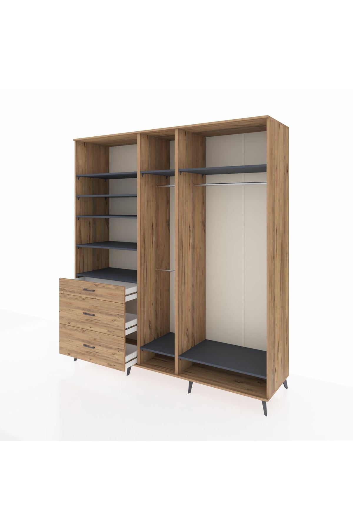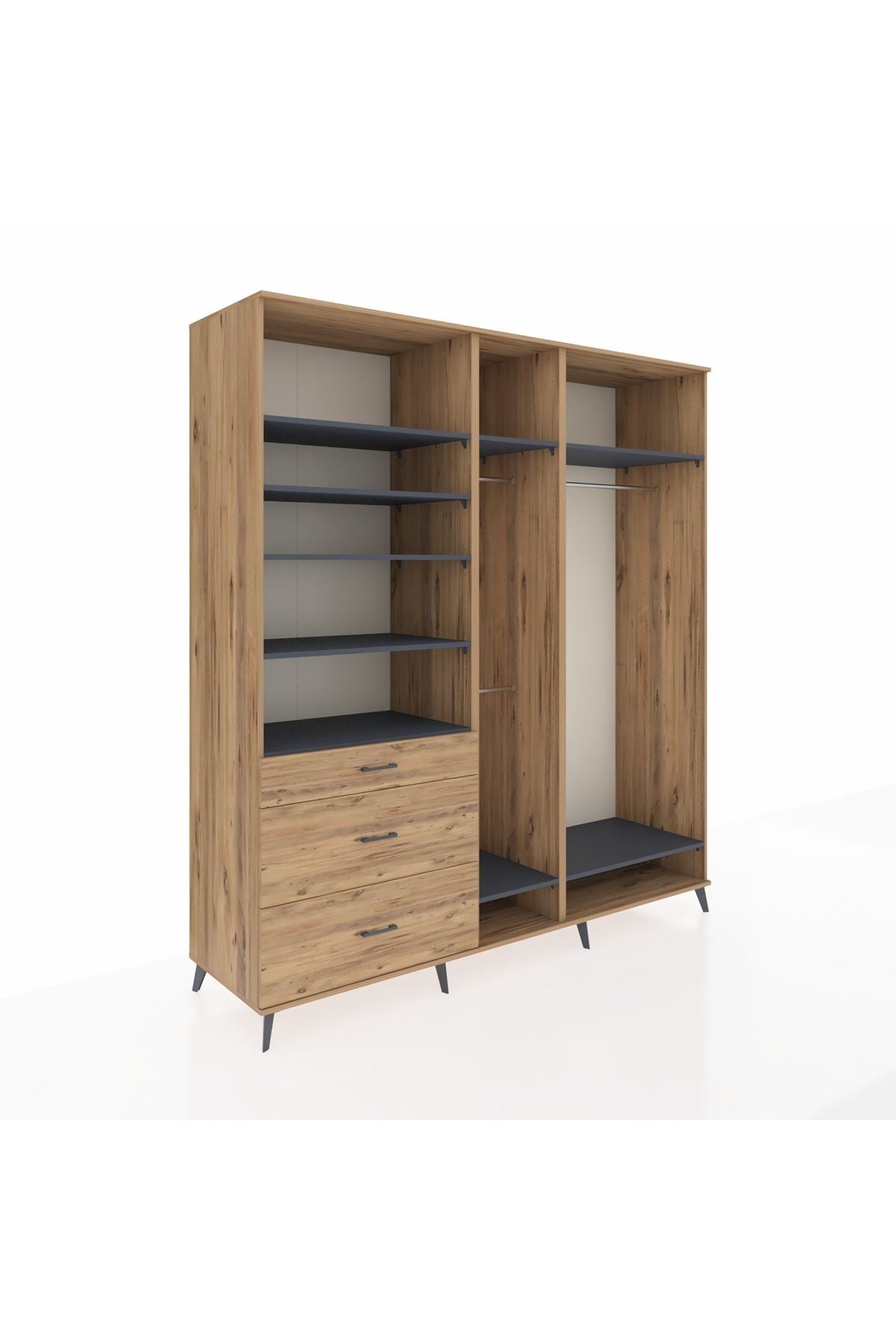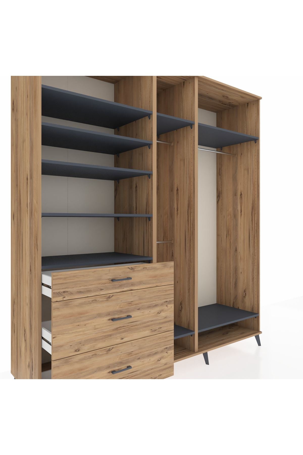 Kronos Dolap 9 Raflı 3 Çekmeceli 3 Askılı 220x59x243 Çam-Antrasit/Çam