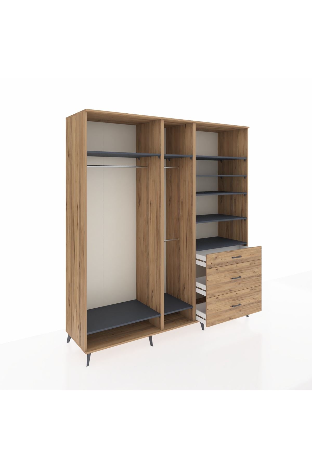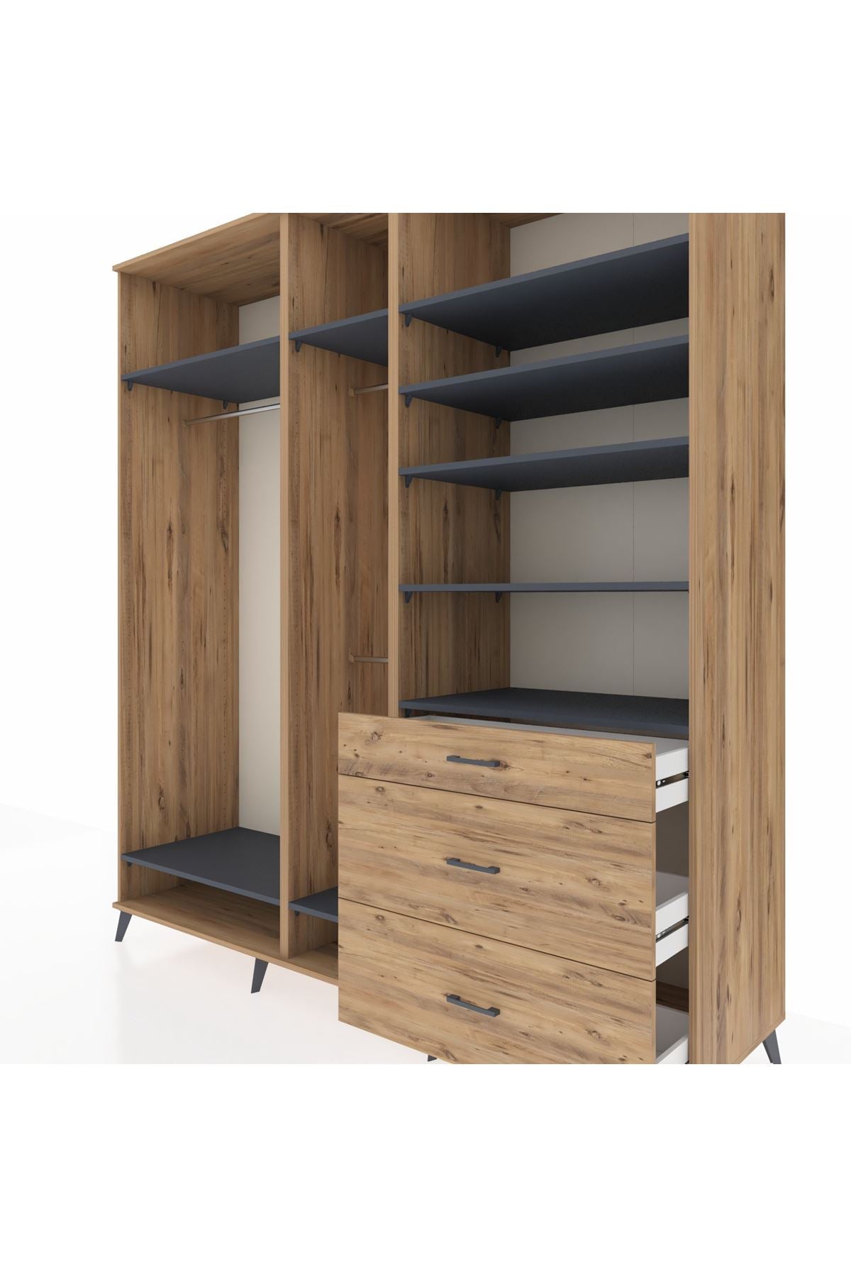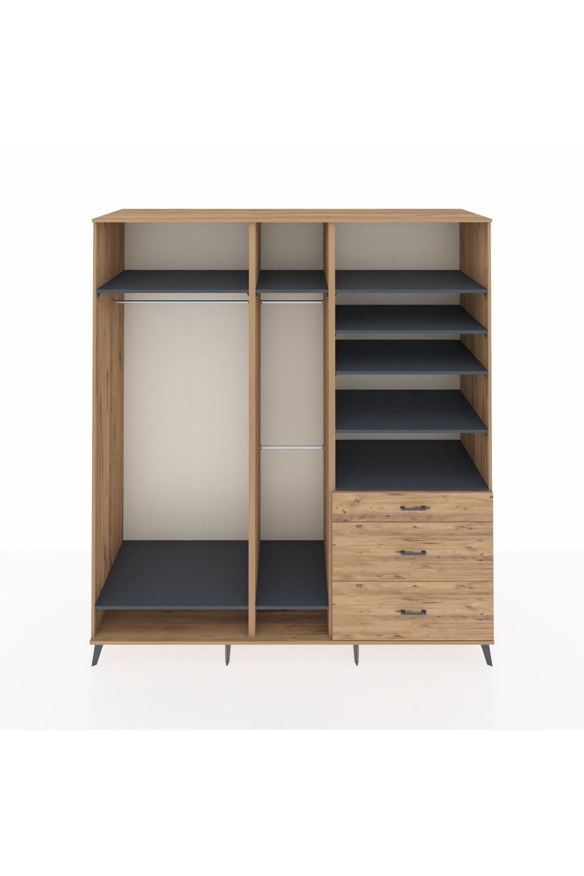 Kronos Dolap 9 Raflı 3 Çekmeceli 3 Askılı 220x59x243 Çam-Antrasit/Çam