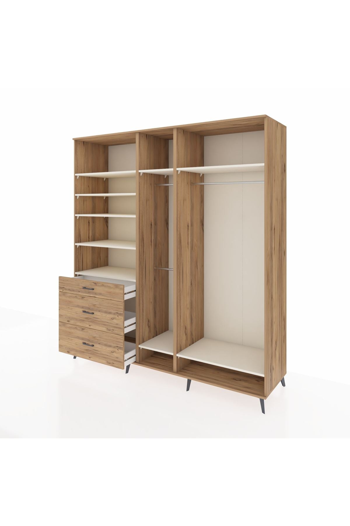 Kronos Dolap 9 Raflı 3 Çekmeceli 3 Askılı 220x59x243 Çam-Aytaşı/Çam