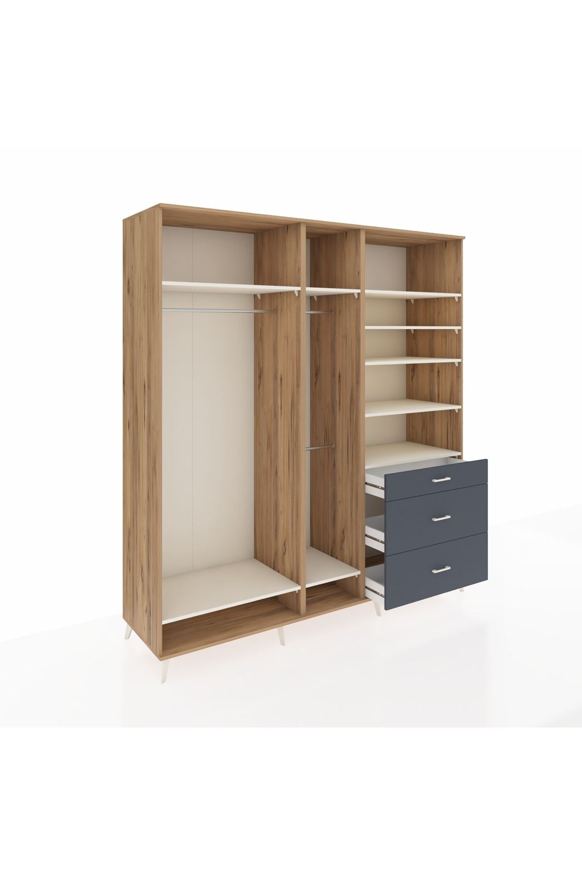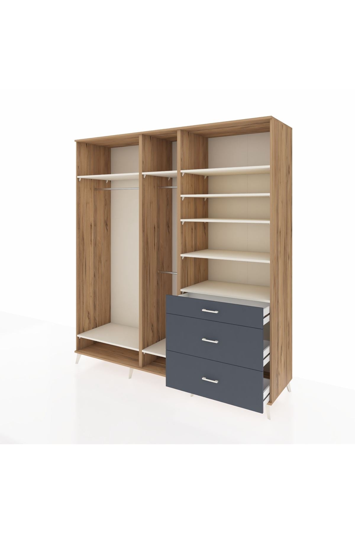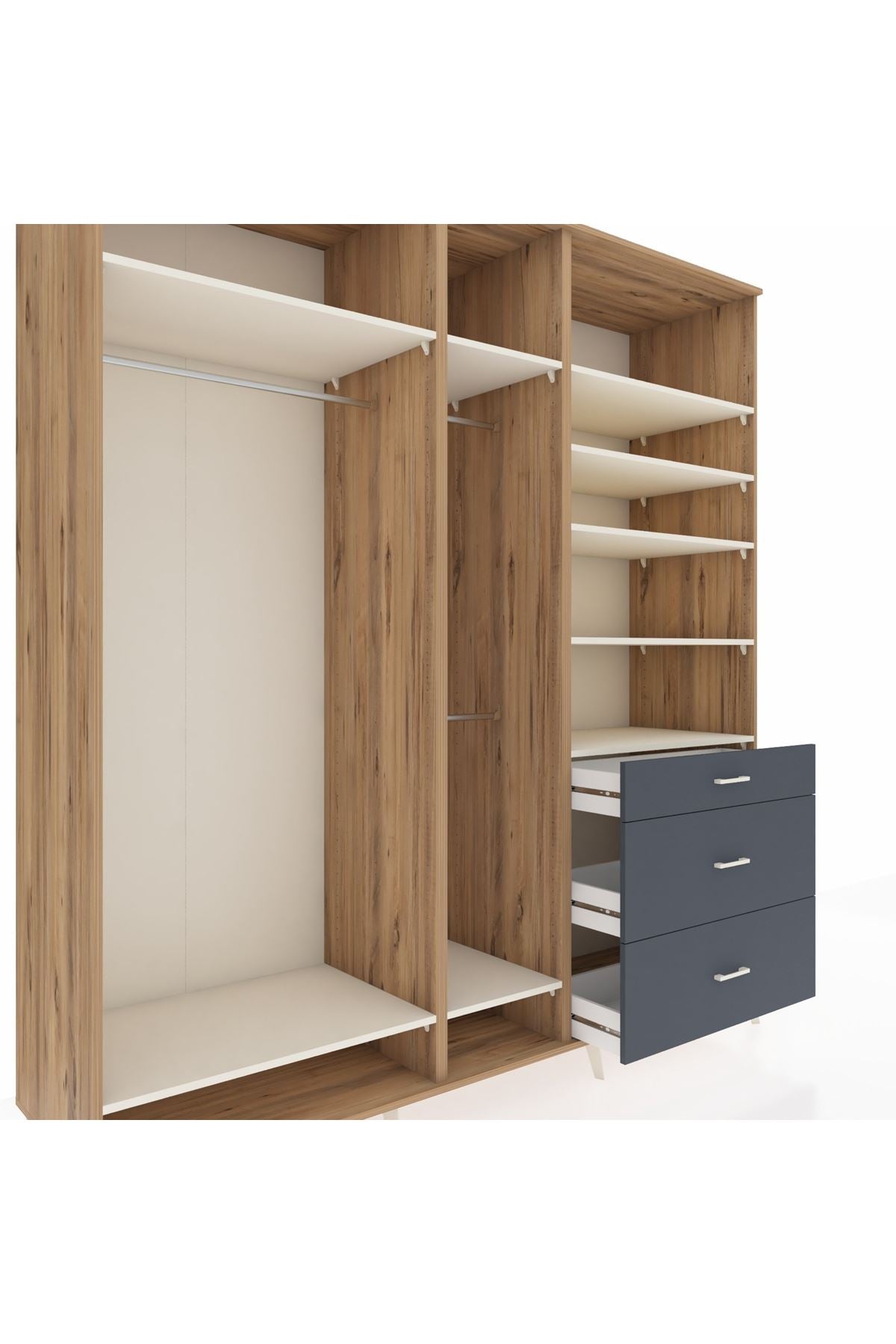 Kronos Dolap 9 Raflı 3 Çekmeceli 3 Askılı 220x59x243 Çam-Aytaşı/Antrasit