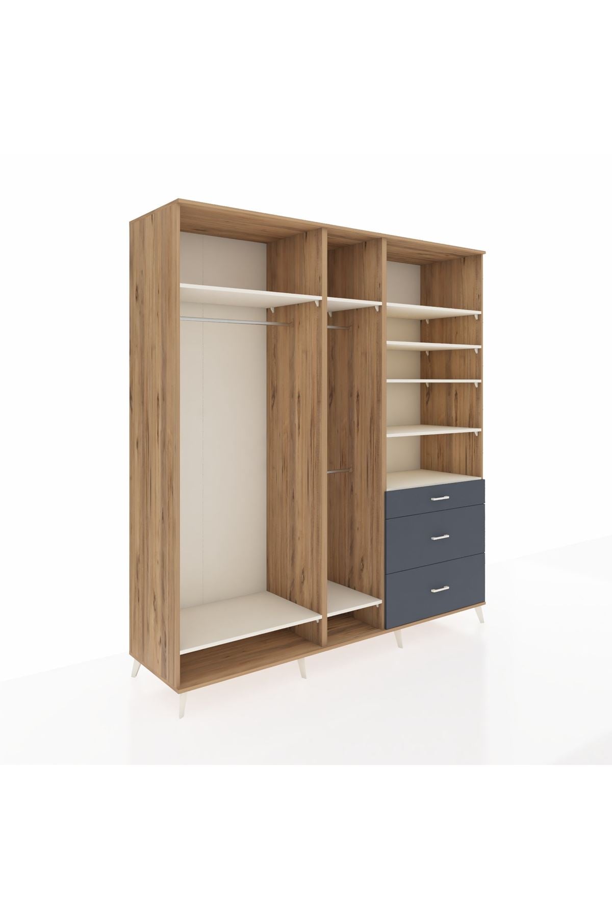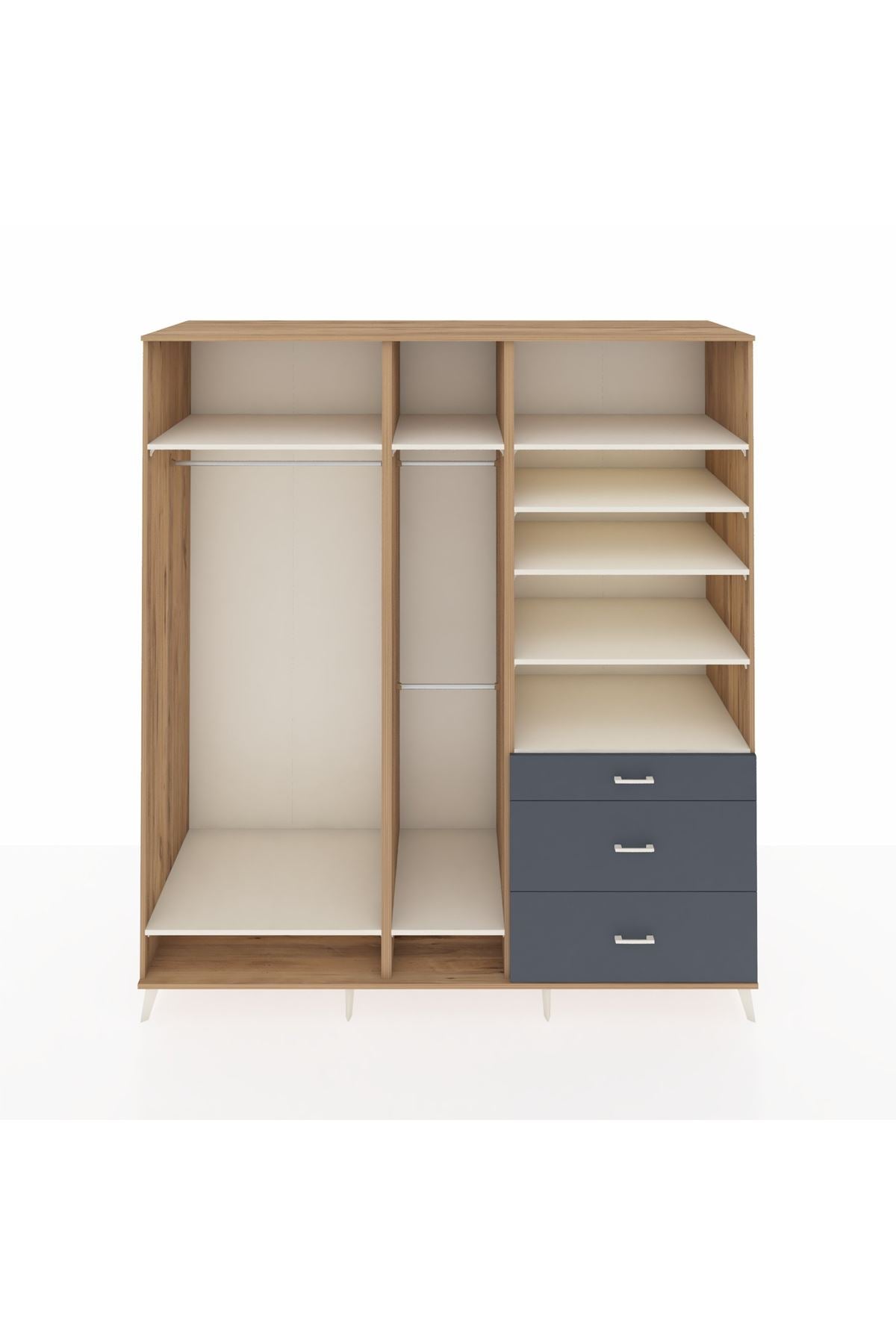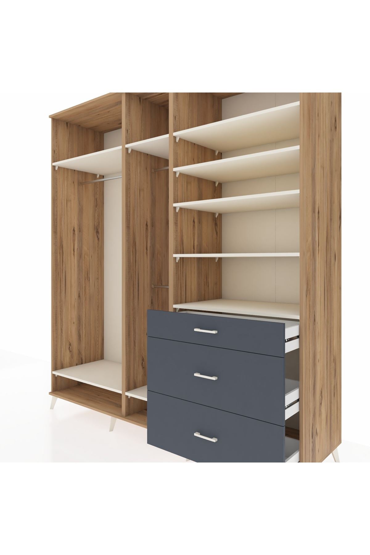Kronos Dolap 9 Raflı 3 Çekmeceli 3 Askılı 220x59x243 Çam-Aytaşı/Antrasit