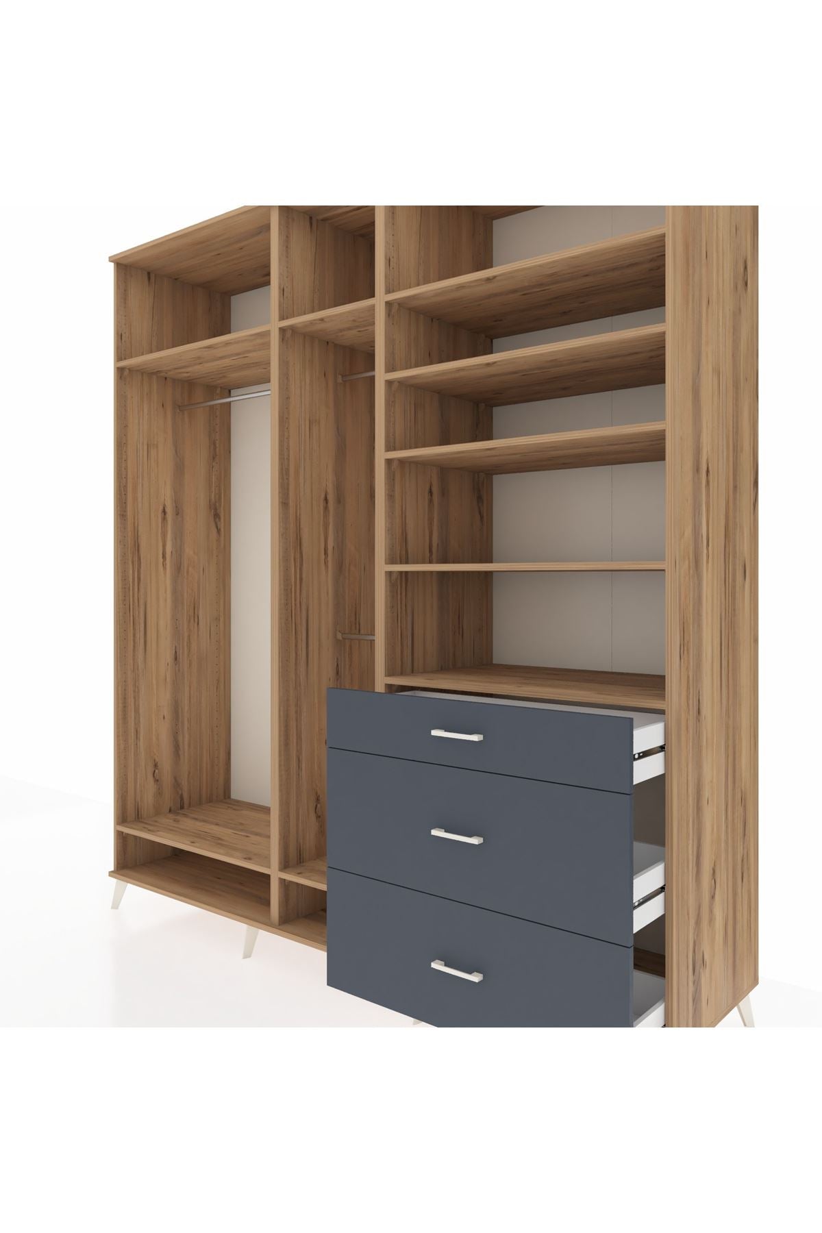 Kronos Dolap 9 Raflı 3 Çekmeceli 3 Askılı 220x59x243 Çam-Çam/Antrasit