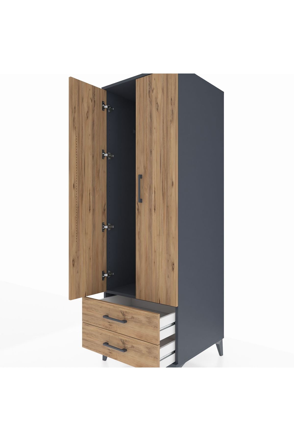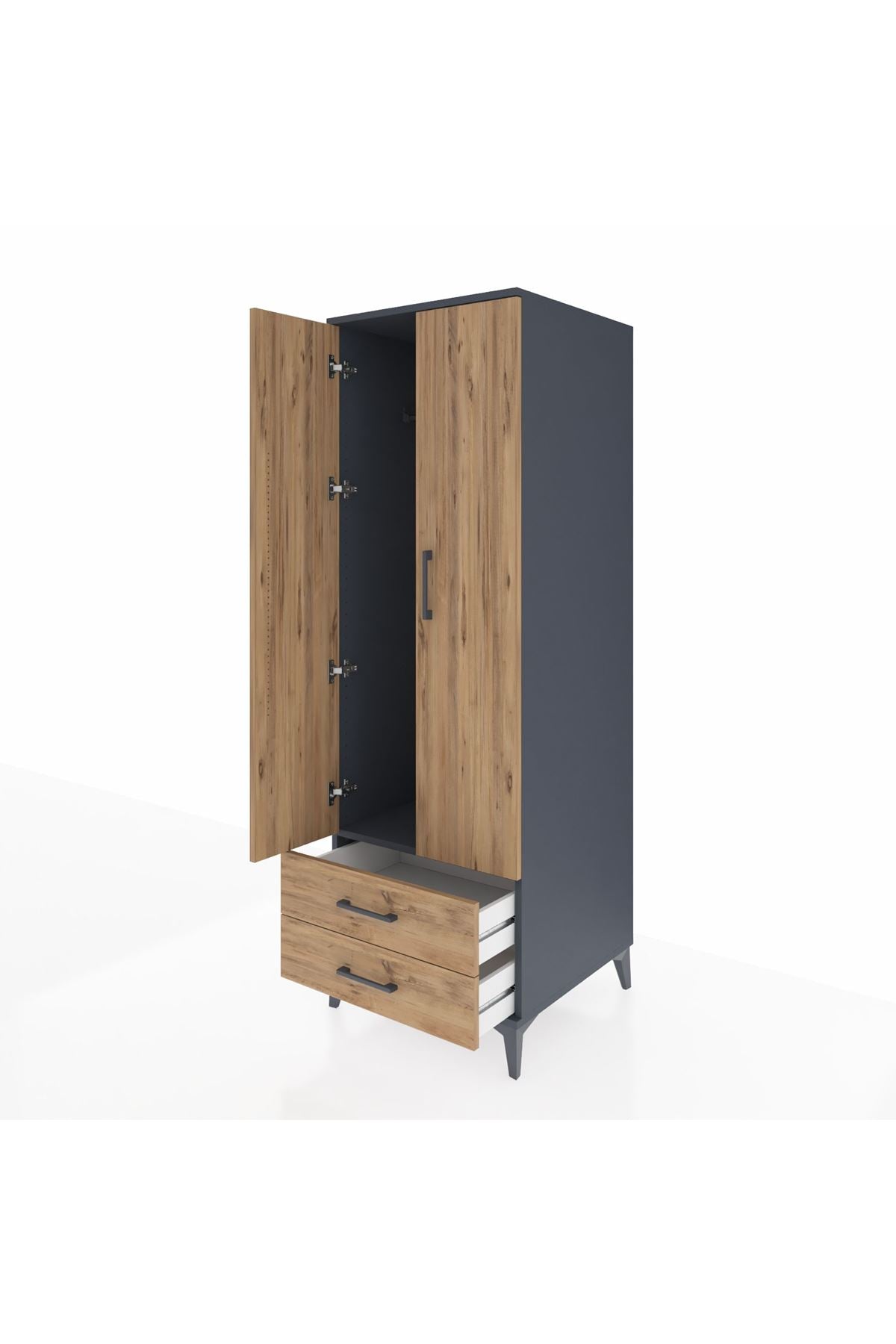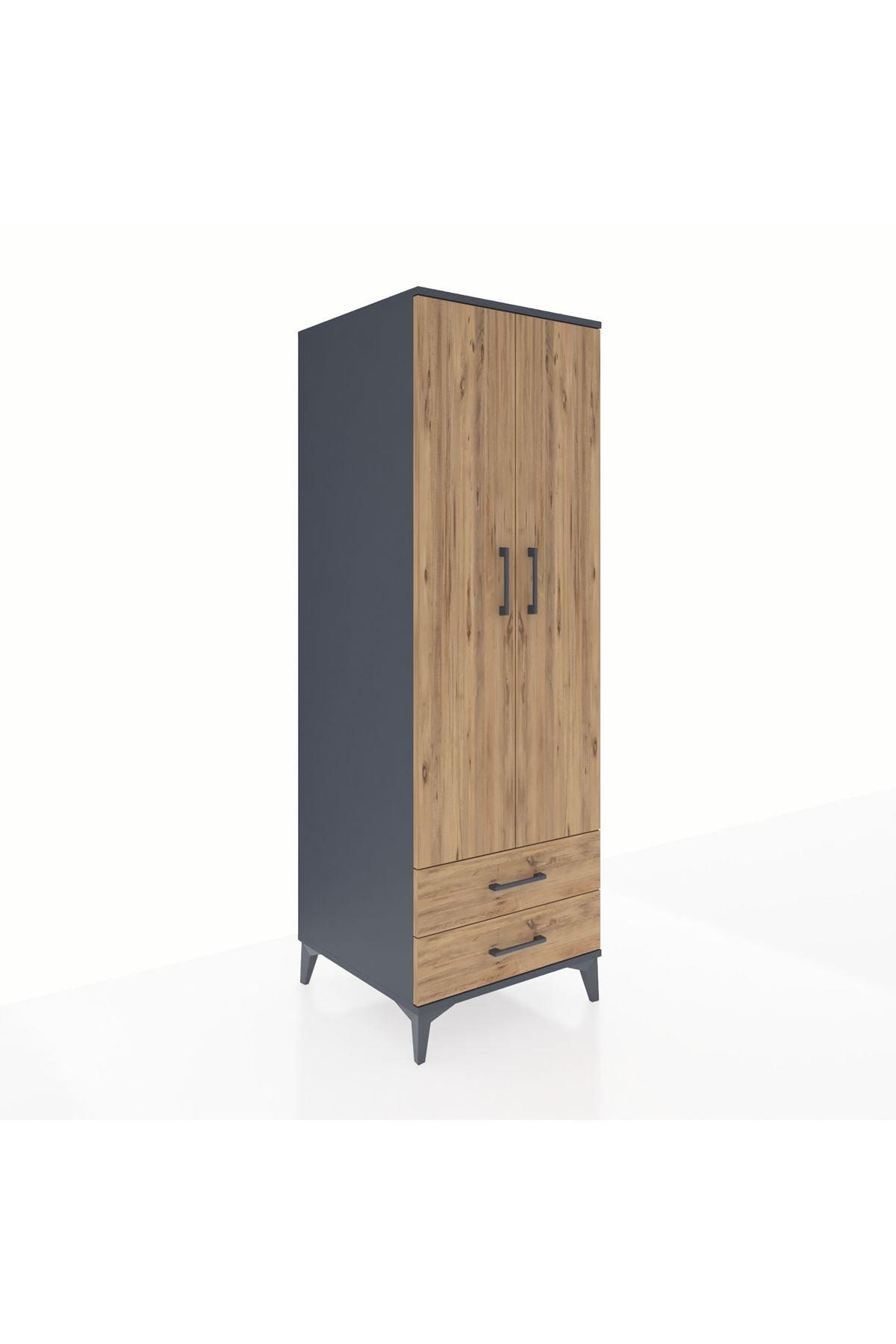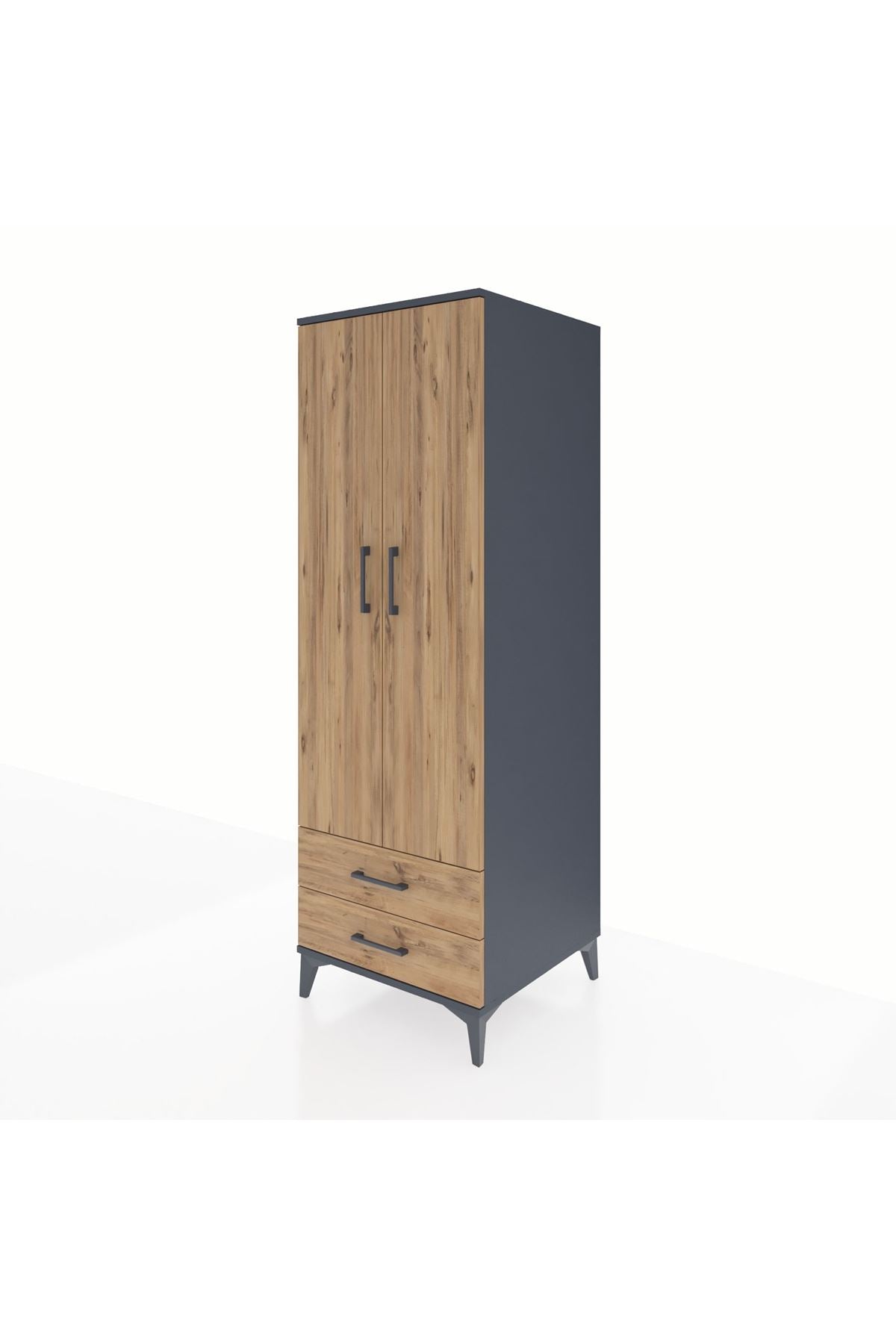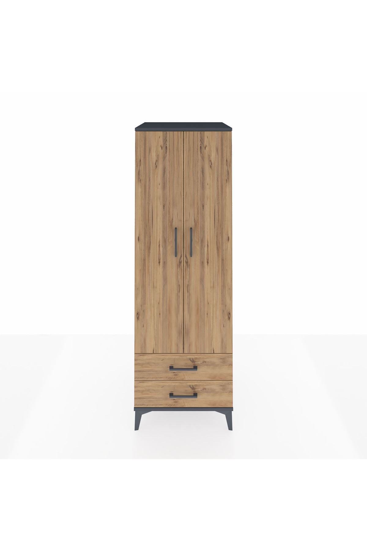 Kronos Dolap Tek Raflı 2 Çekmeceli Tek Askılı 60x59x182 Antrasit-Çam