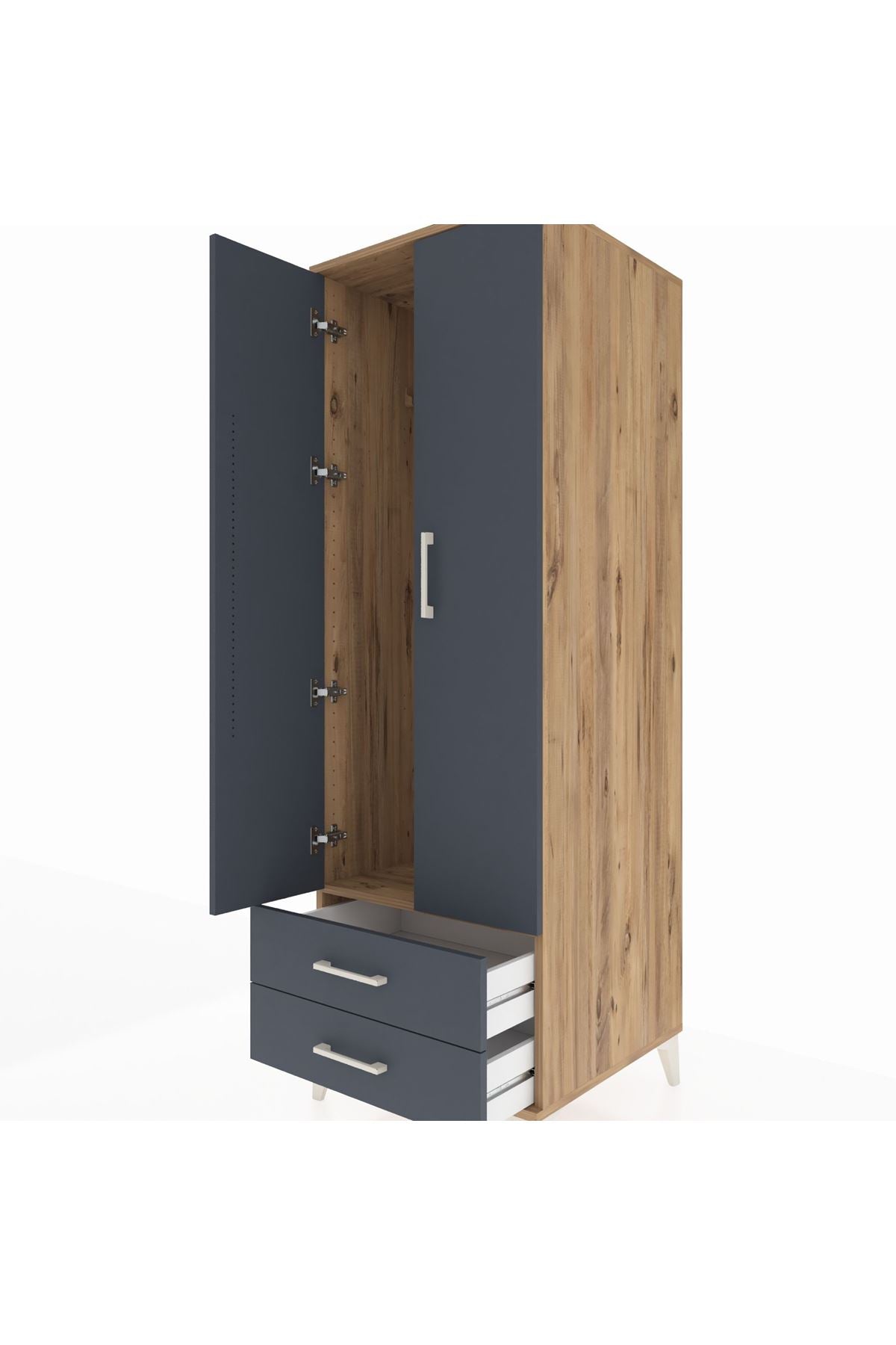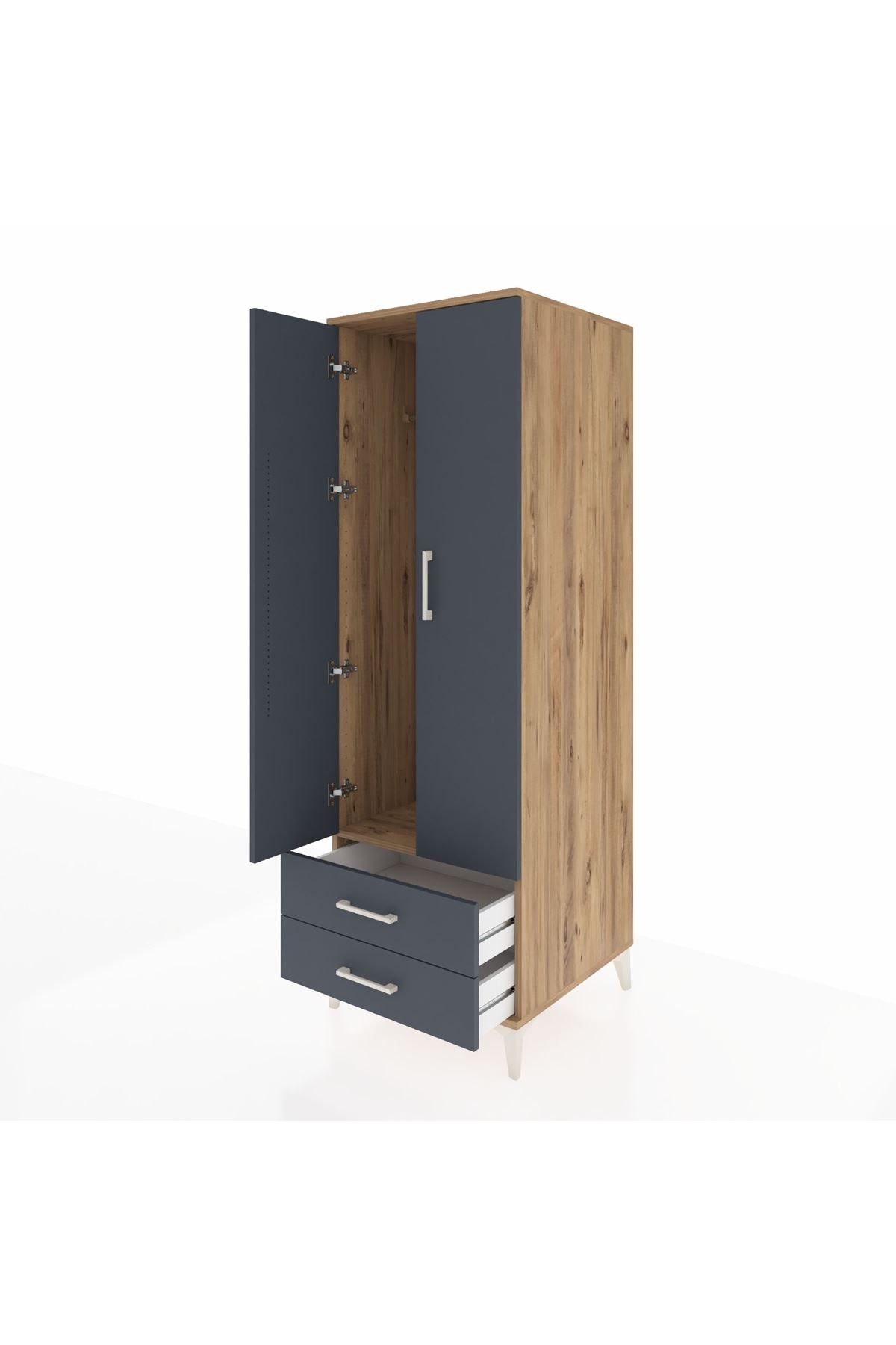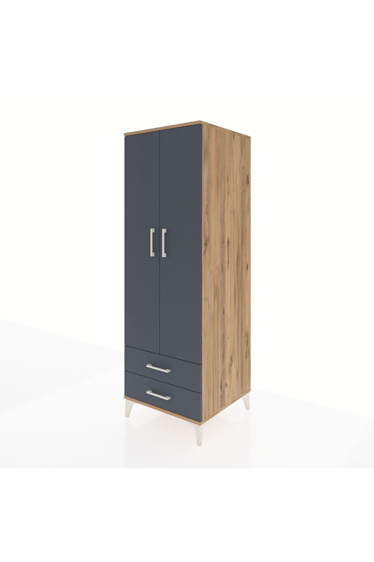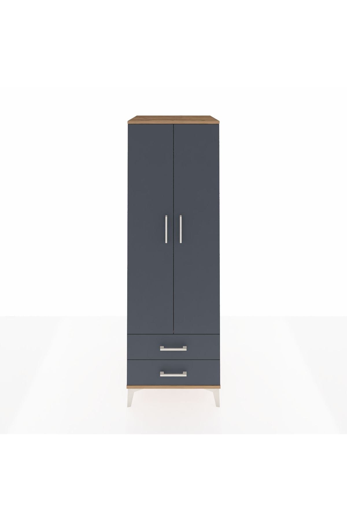 Kronos Dolap Tek Raflı 2 Çekmeceli Tek Askılı 60x59x182 Çam-Antrasit