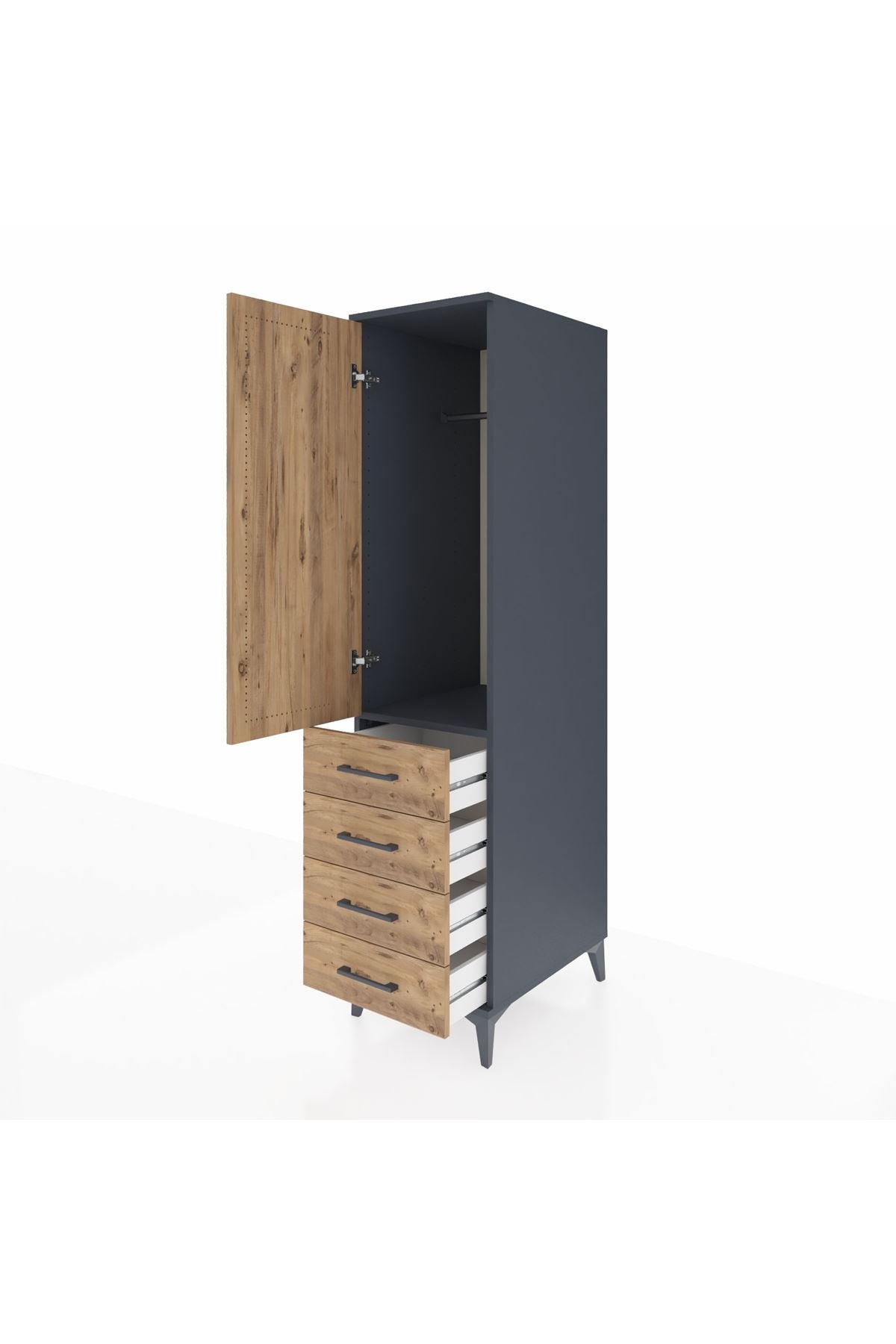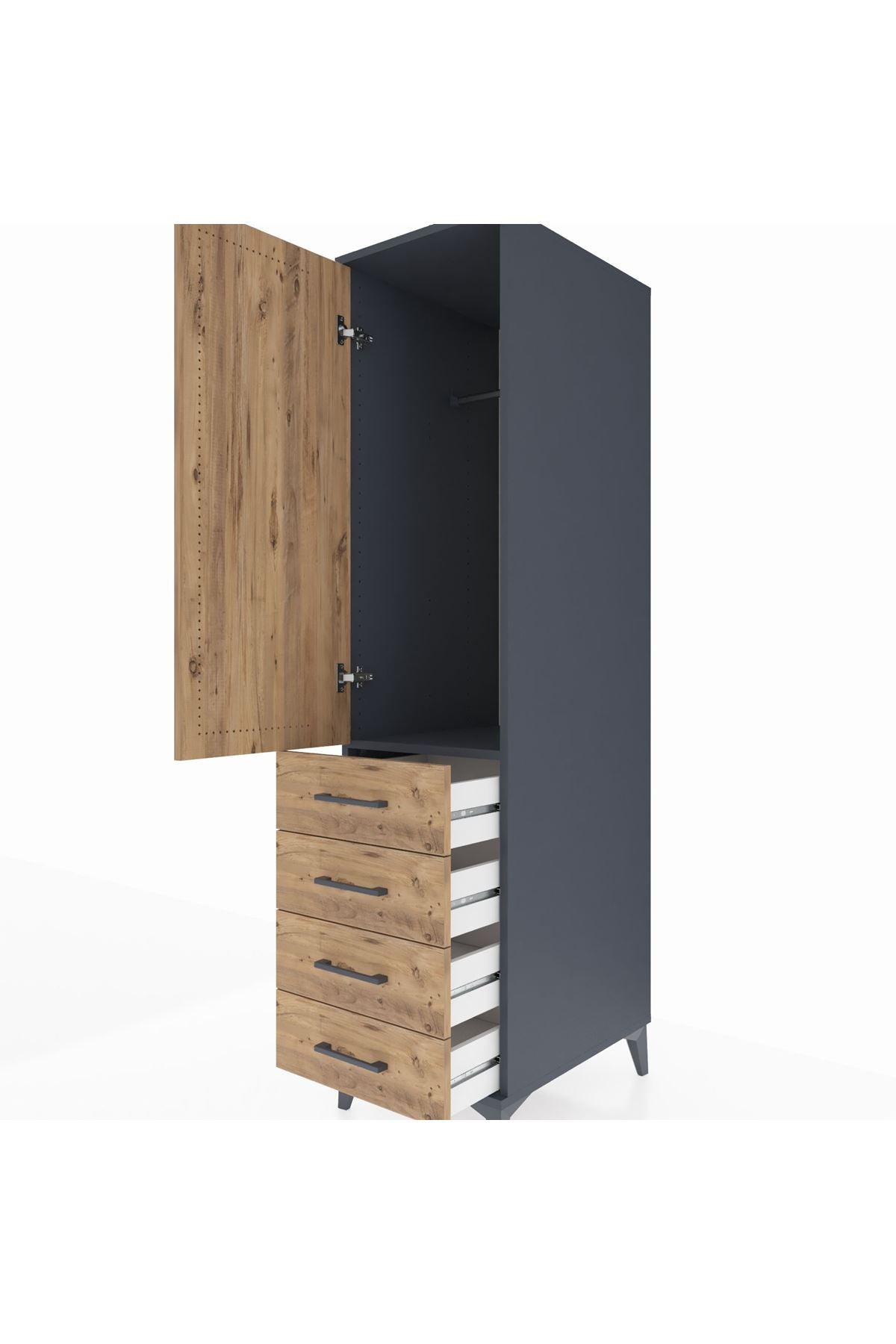 Kronos Dolap Tek Raflı 4 Çekmeceli Tek Askılı 44x59x182 Antrasit-Çam