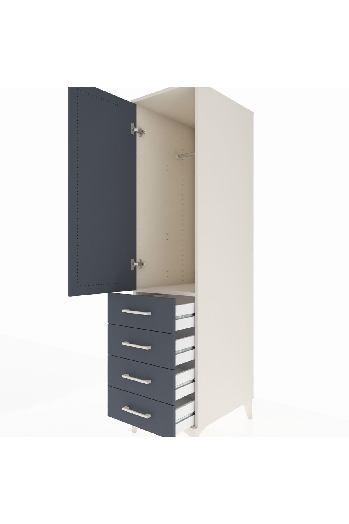Kronos Dolap Tek Raflı 4 Çekmeceli Tek Askılı 44x59x182 Aytaşı-Antrasit