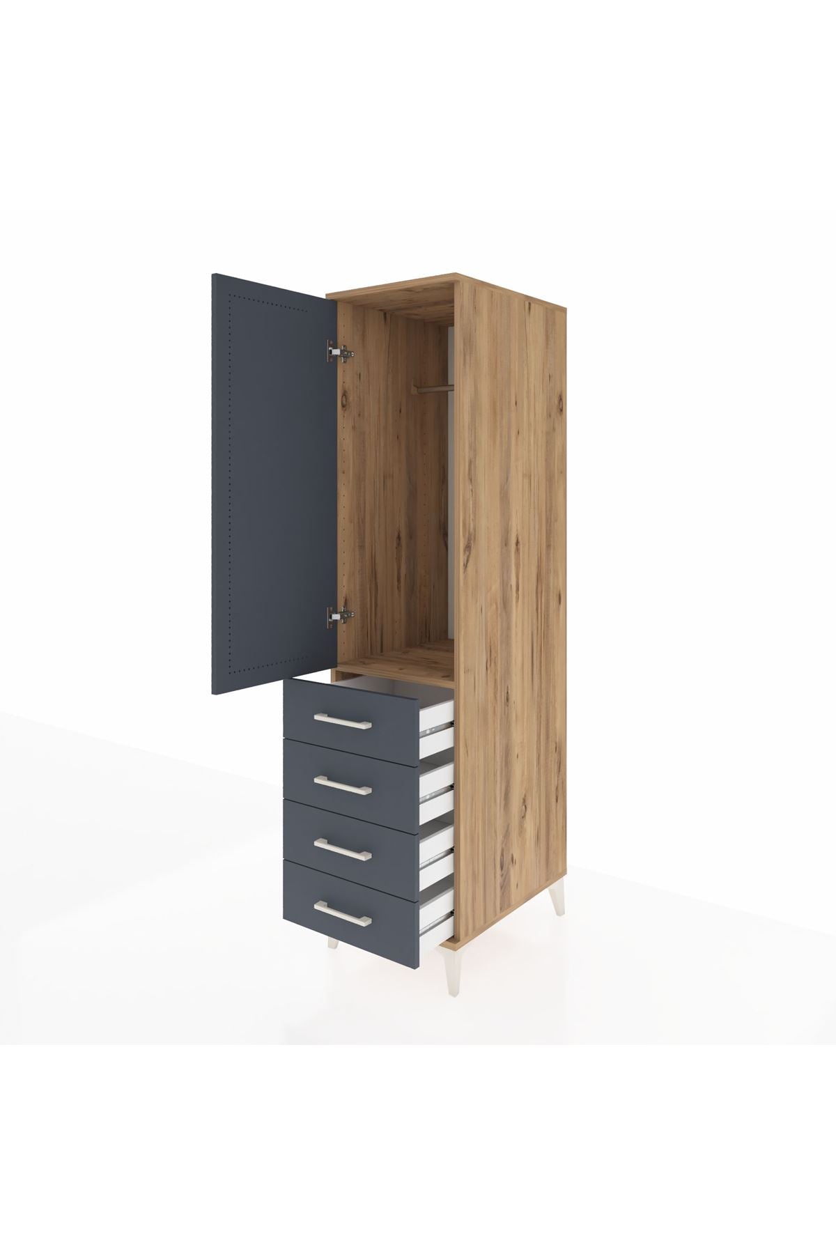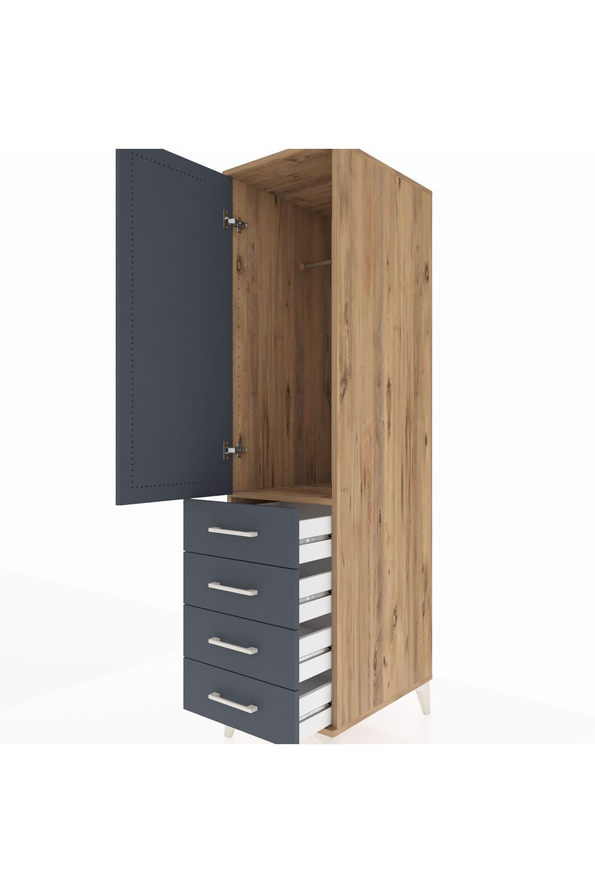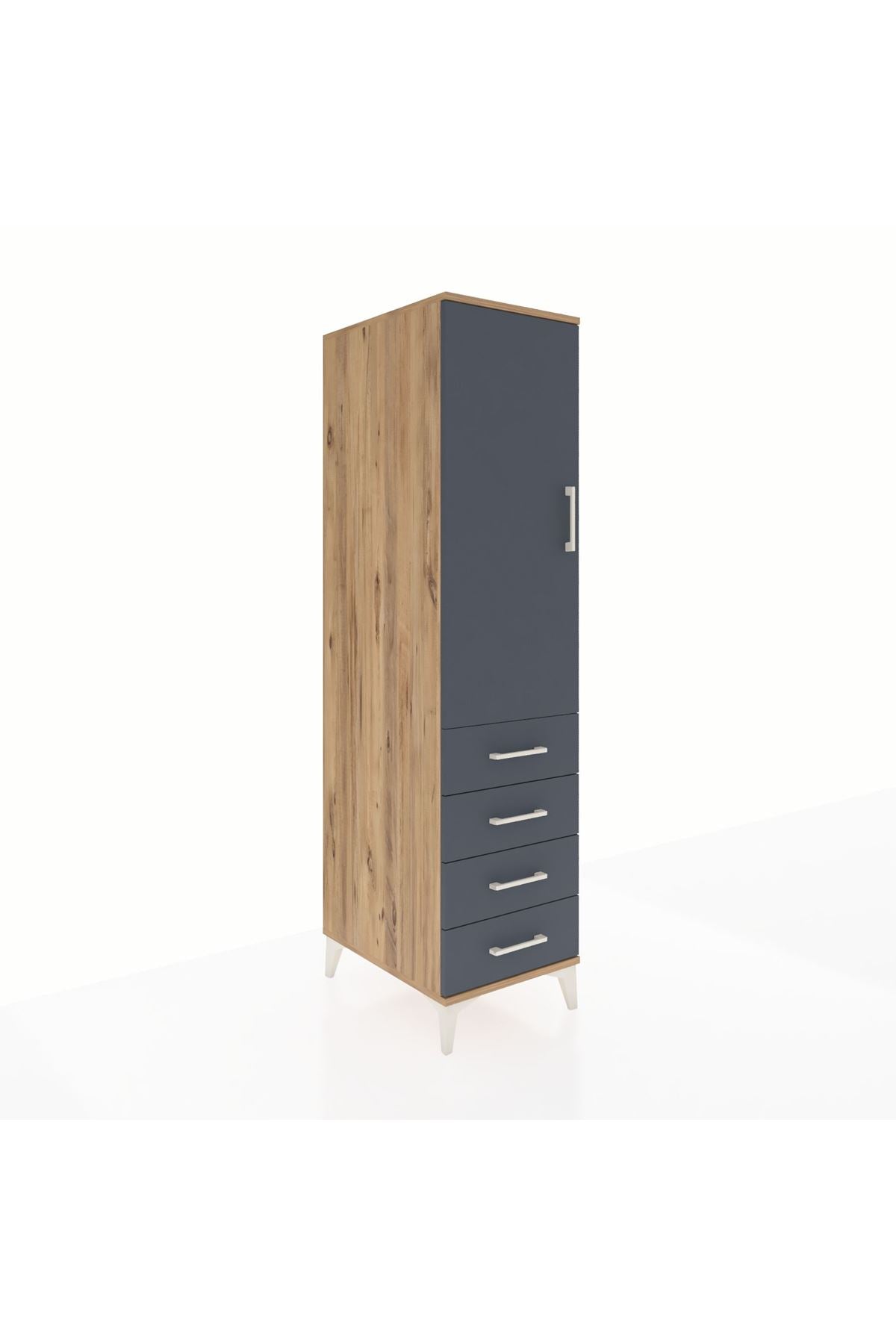 Kronos Dolap Tek Raflı 4 Çekmeceli Tek Askılı 44x59x182 Çam-Antrasit