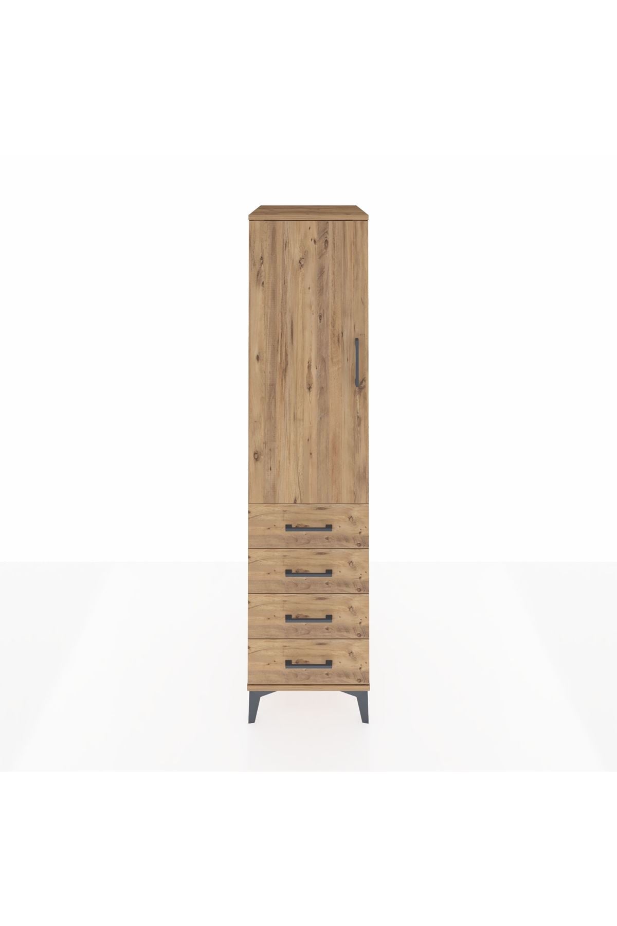Kronos Dolap Tek Raflı 4 Çekmeceli Tek Askılı 44x59x182 Çam-Çam