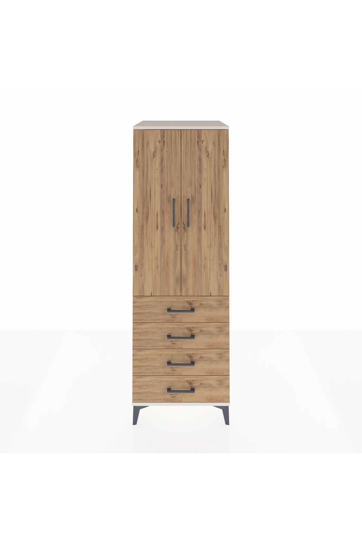 Kronos Dolap Tek Raflı 4 Çekmeceli Tek Askılı 60x59x182 Aytaşı-Çam