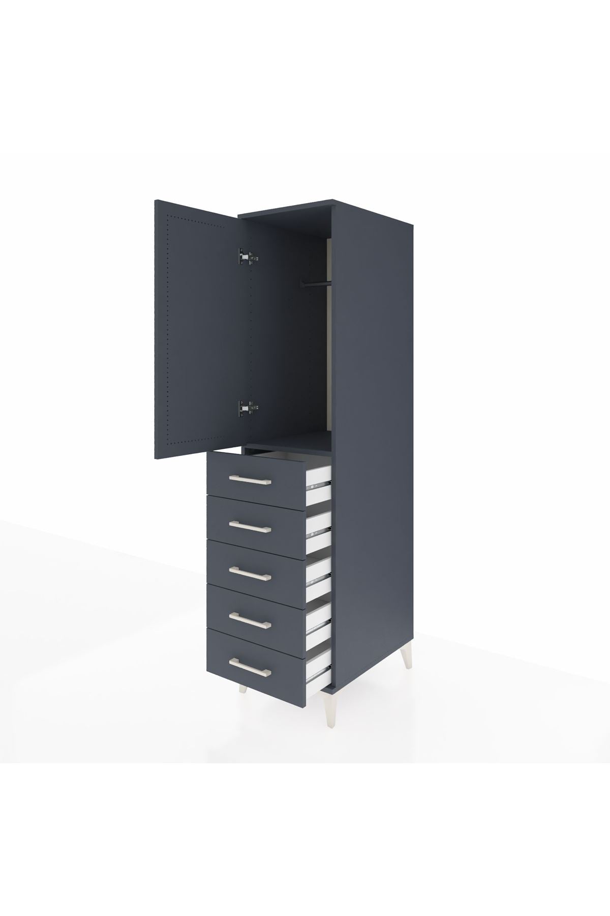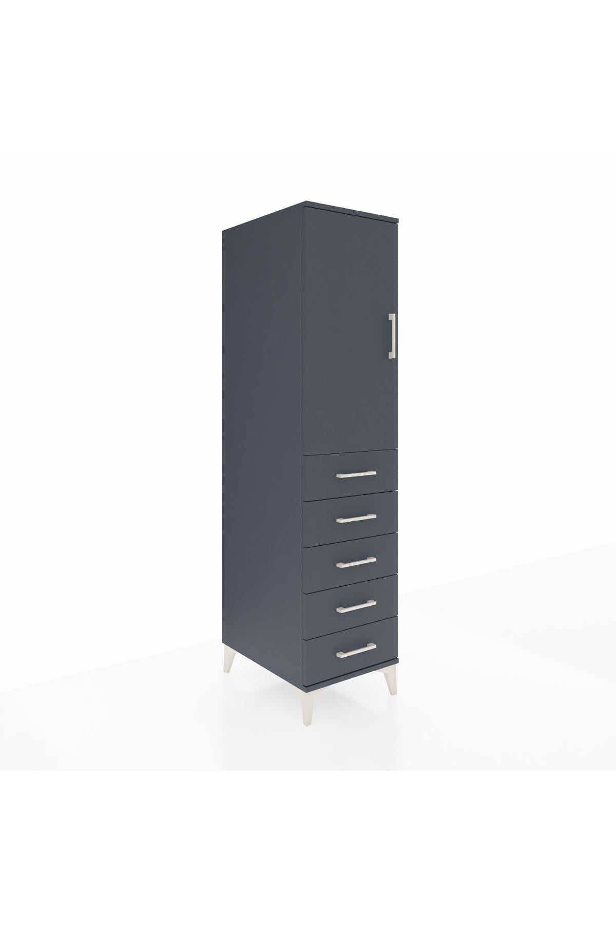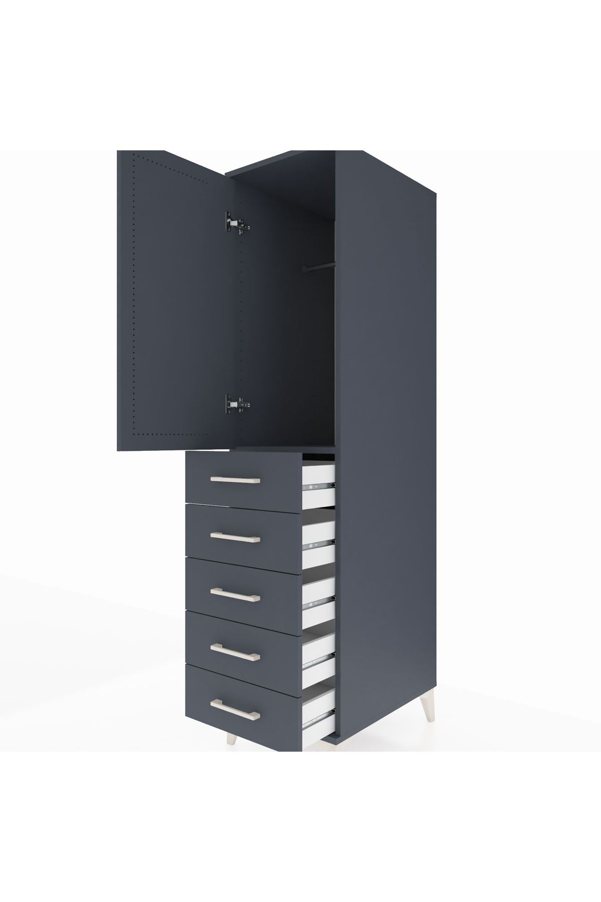 Kronos Dolap Tek Raflı 5 Çekmeceli Tek Askılı 44x59x182 Antrasit-Antrasit
