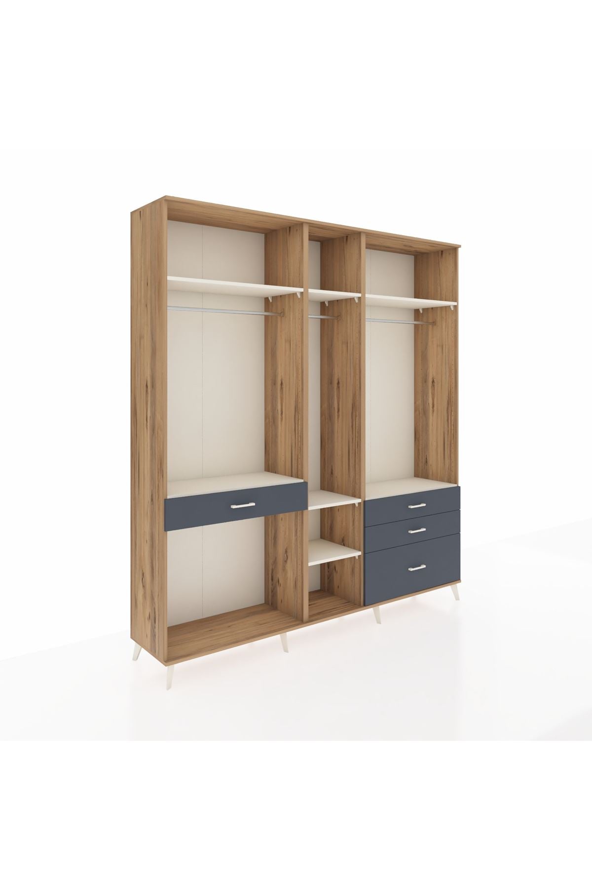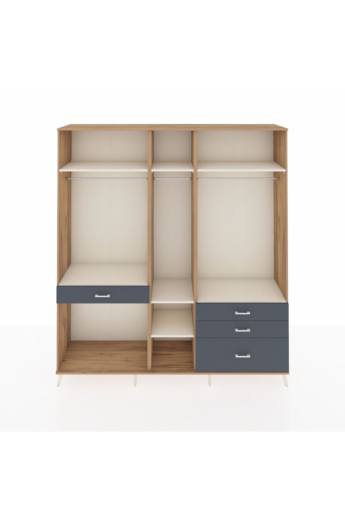 Hyperion Dolap 7 Raflı 4 Çekmeceli 3 Askılı 220x44x243 Çam-Aytaşı/Antrasit