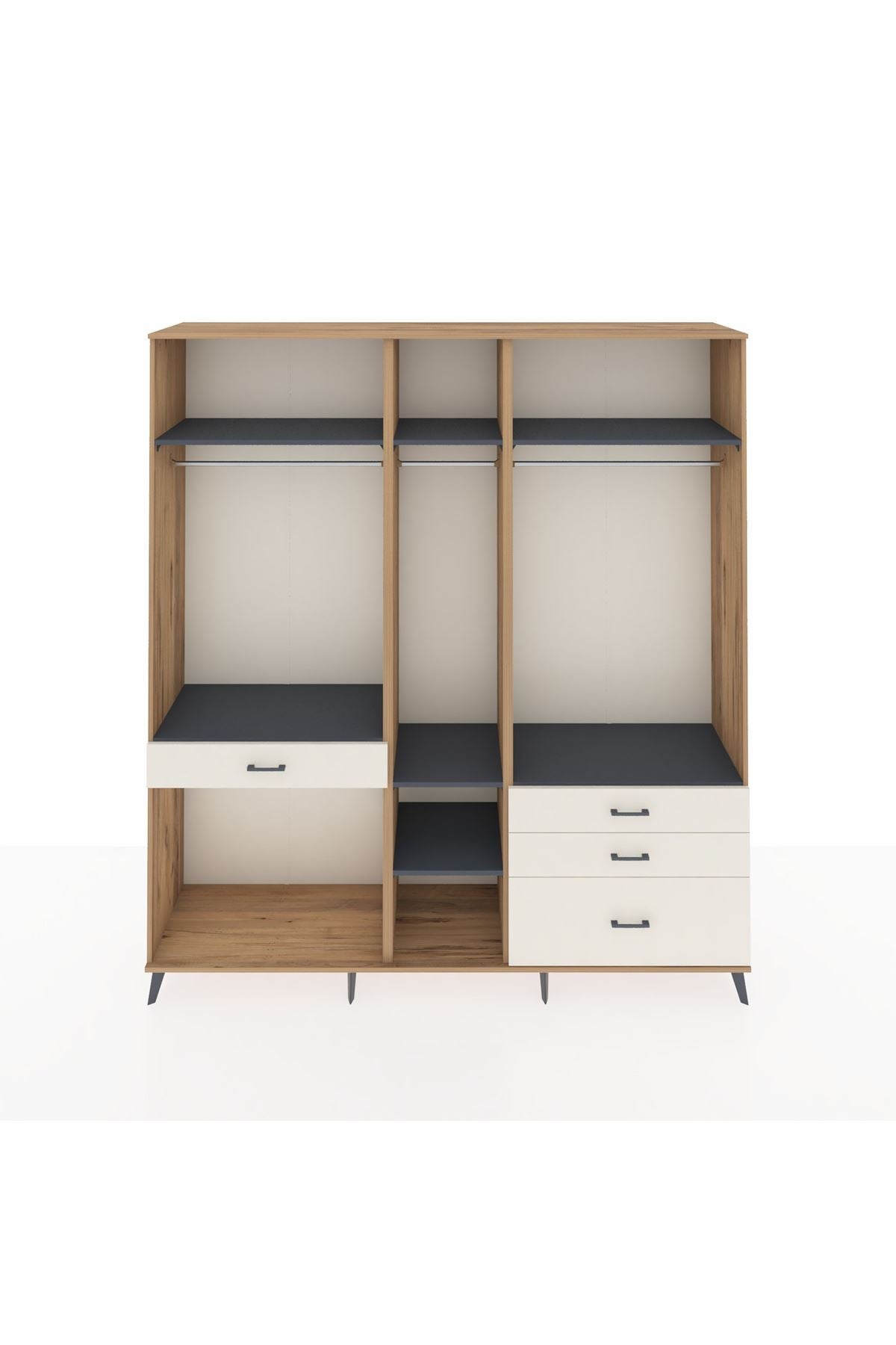 Hyperion Dolap 7 Raflı 4 Çekmeceli 3 Askılı 220x44x243 Çam-Antrasit/Aytaşı